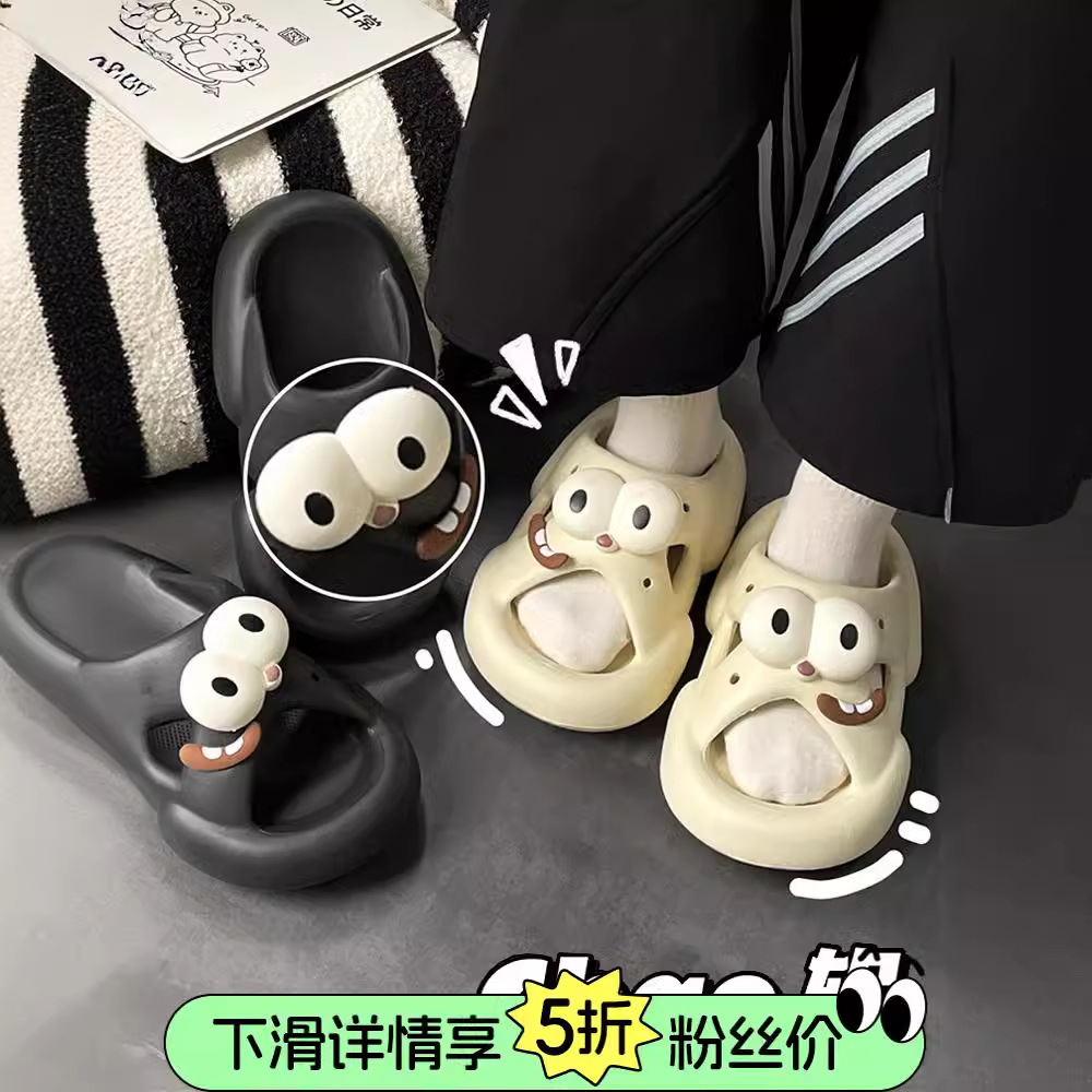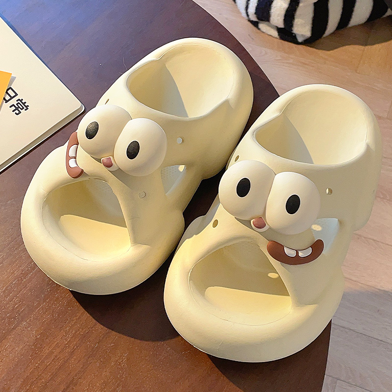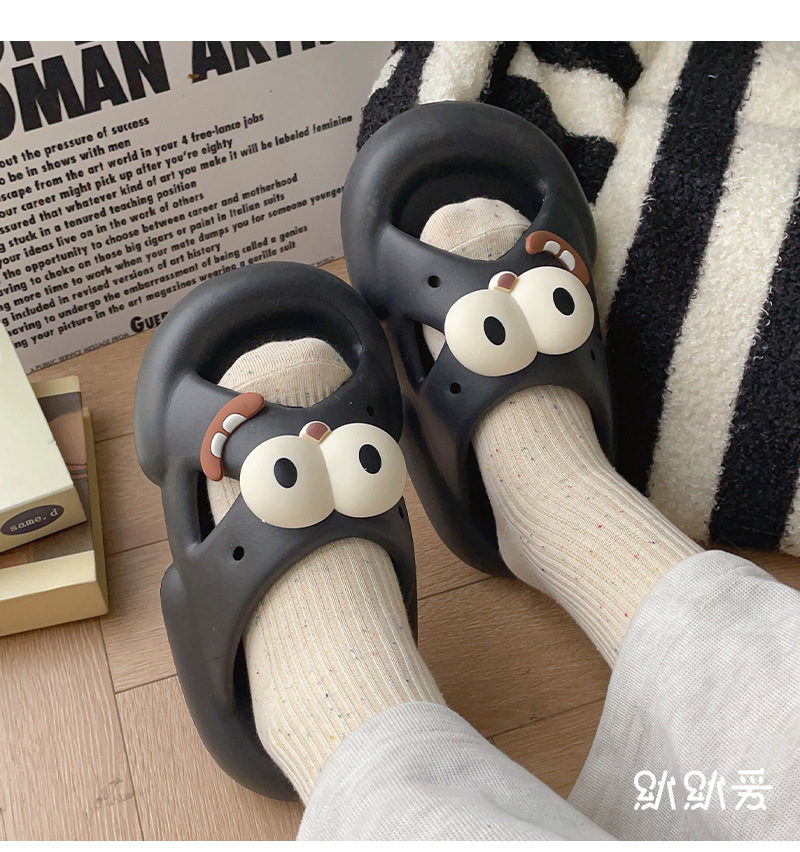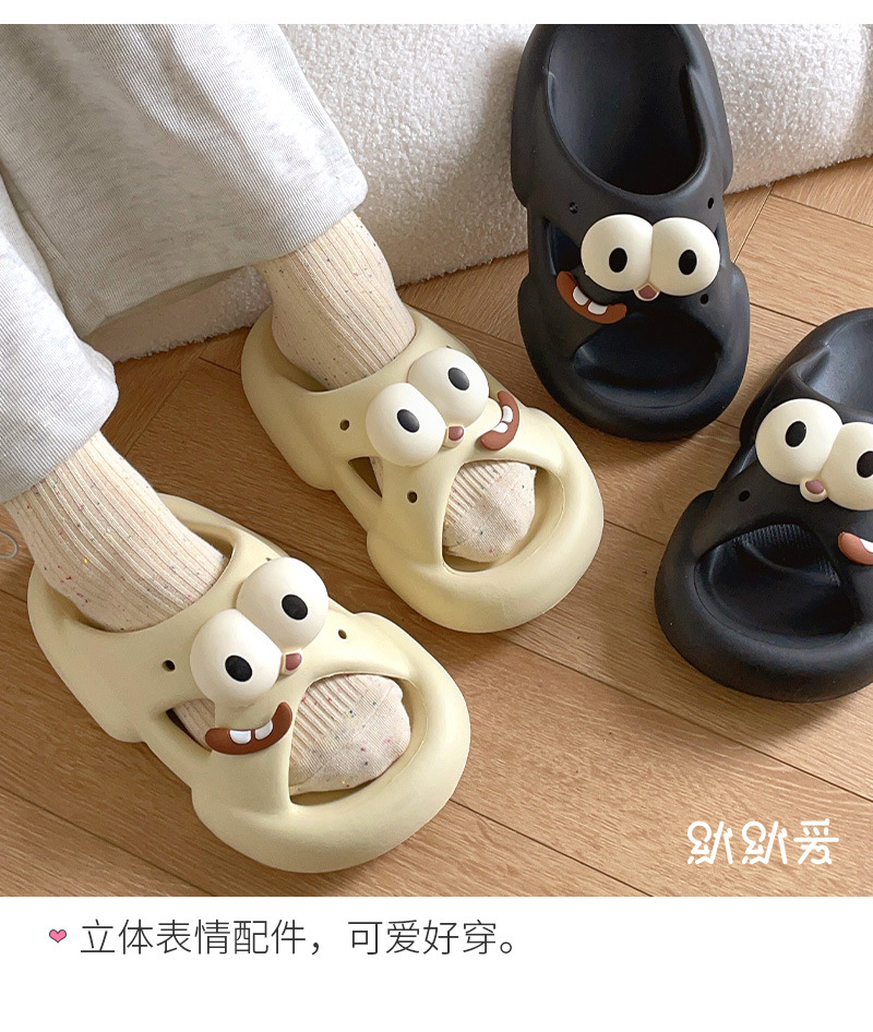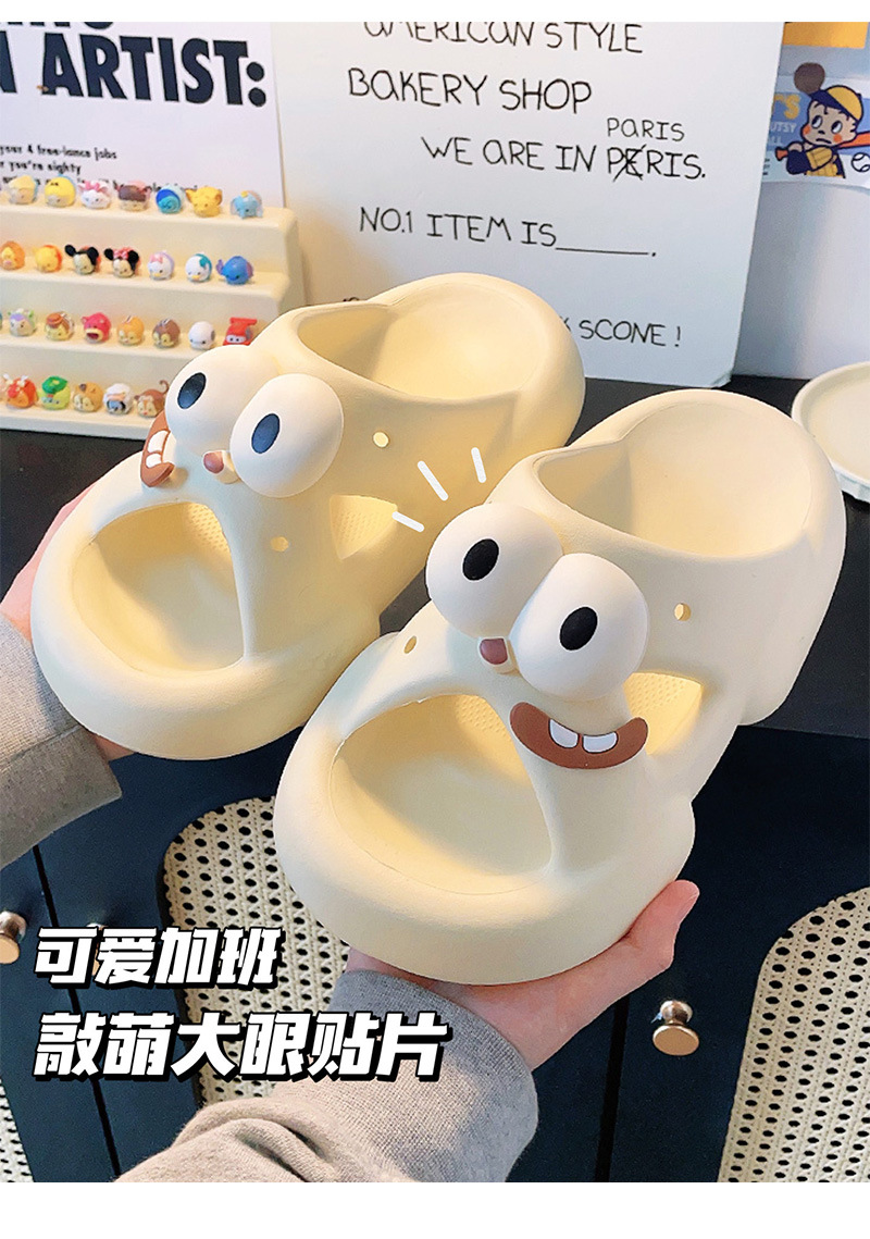 Забавные милые тапочки с большими глазами, Женские Летние слипоны с толстой подошвой, нескользящий дезодорант, домашняя одежда EVA