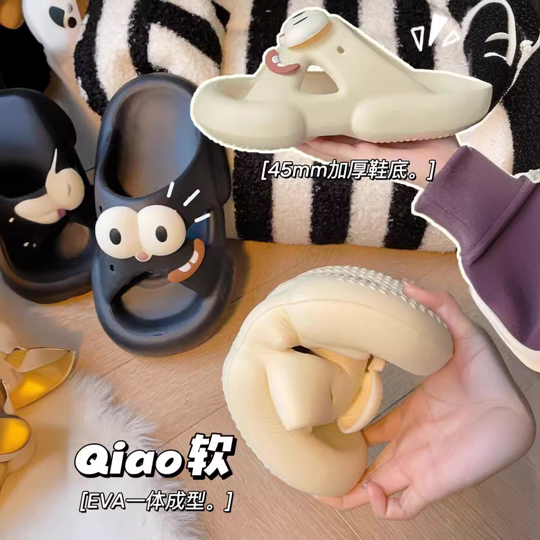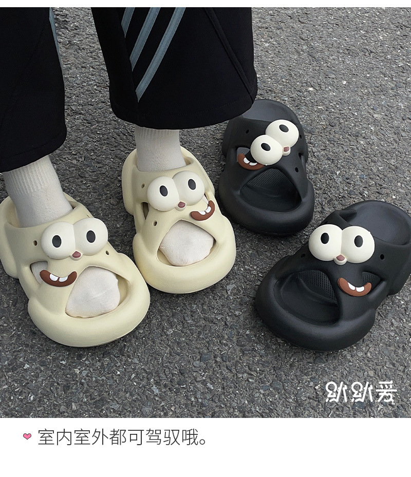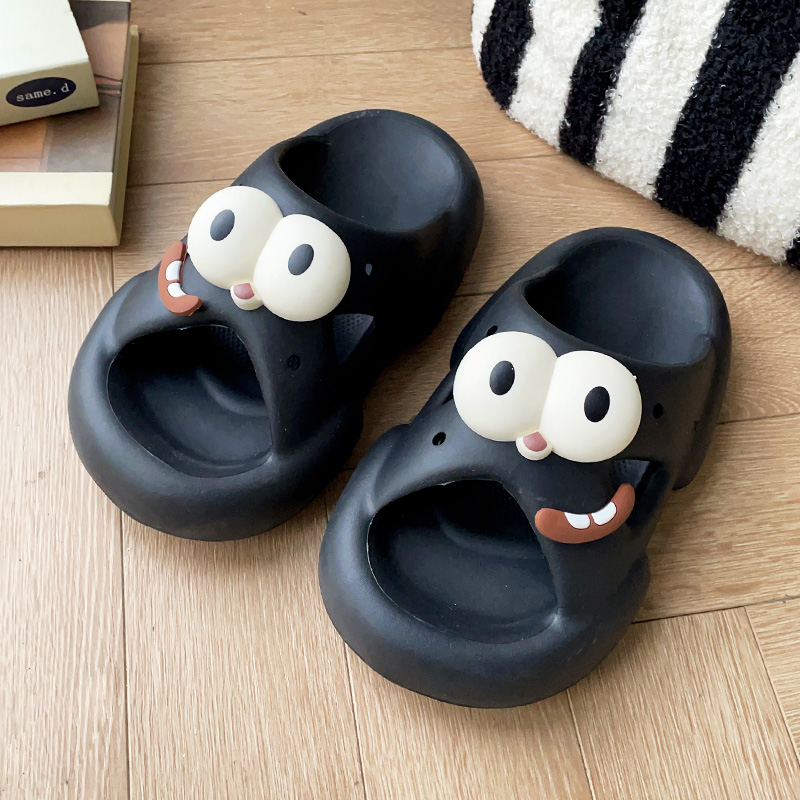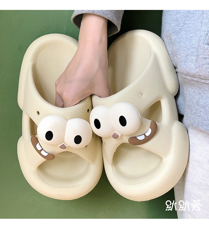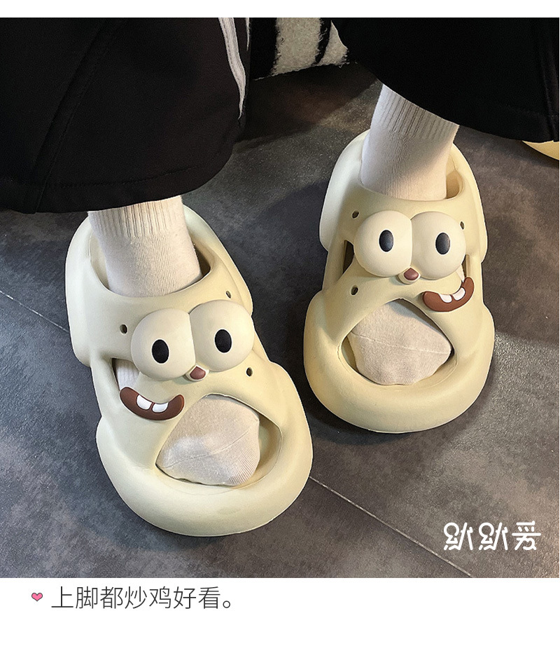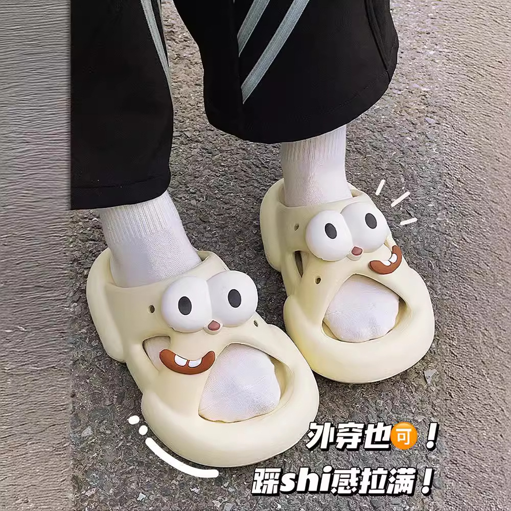 Забавные милые тапочки с большими глазами, Женские Летние слипоны с толстой подошвой, нескользящий дезодорант, домашняя одежда EVA