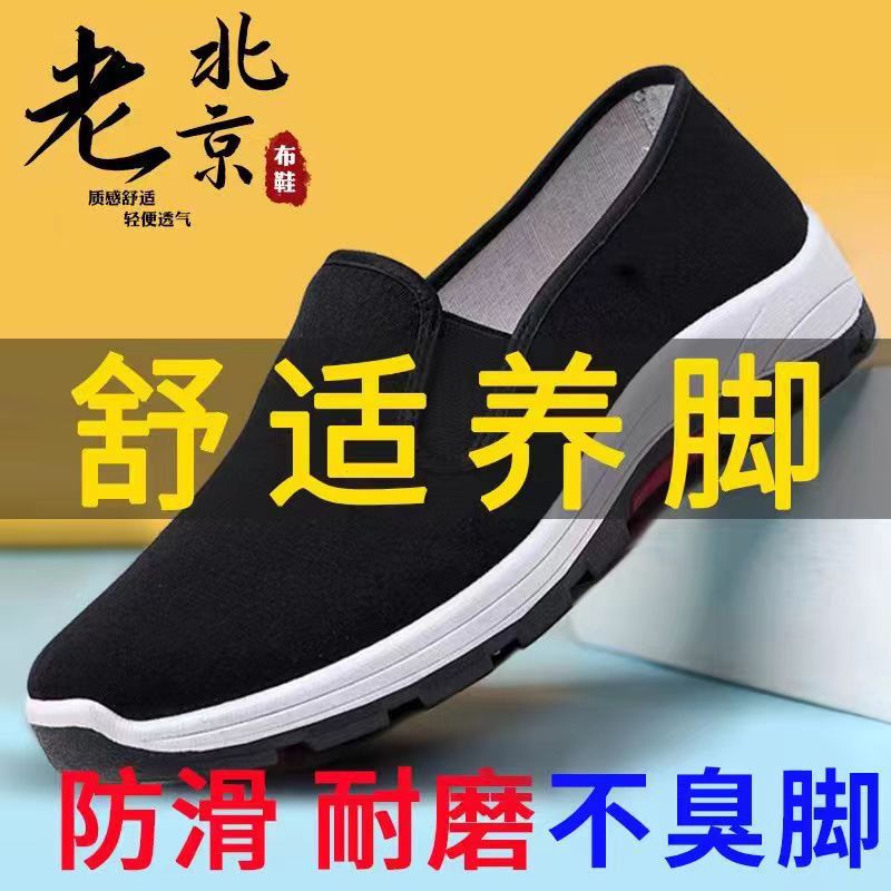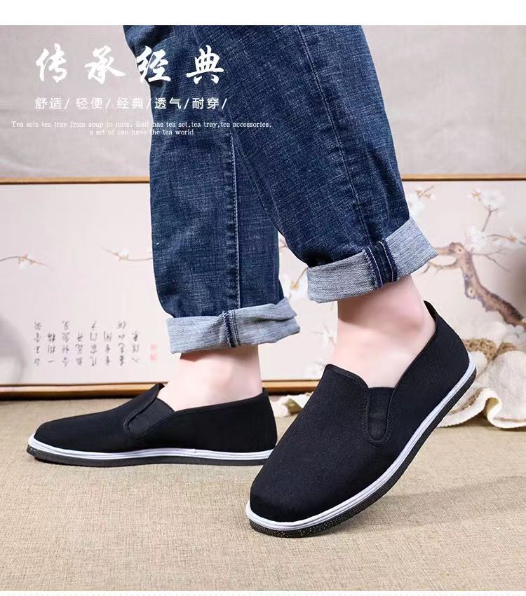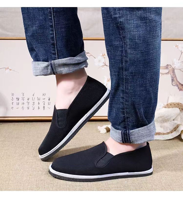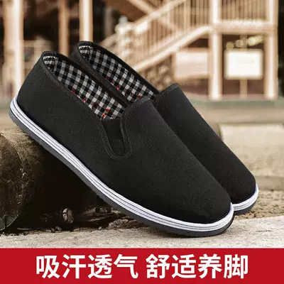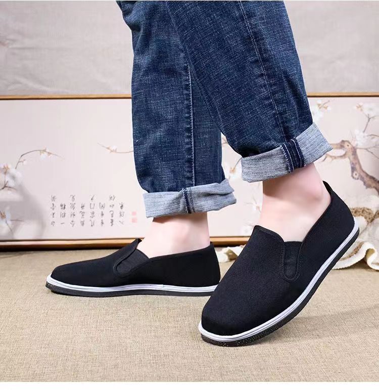 Тканевая обувь Old Beijing, Мужская весенне-осенняя Однослойная обувь, нескользящая, износостойкая, дышащая, повседневная многослойная подошва, защита труда, черная Тканевая обувь, мужская