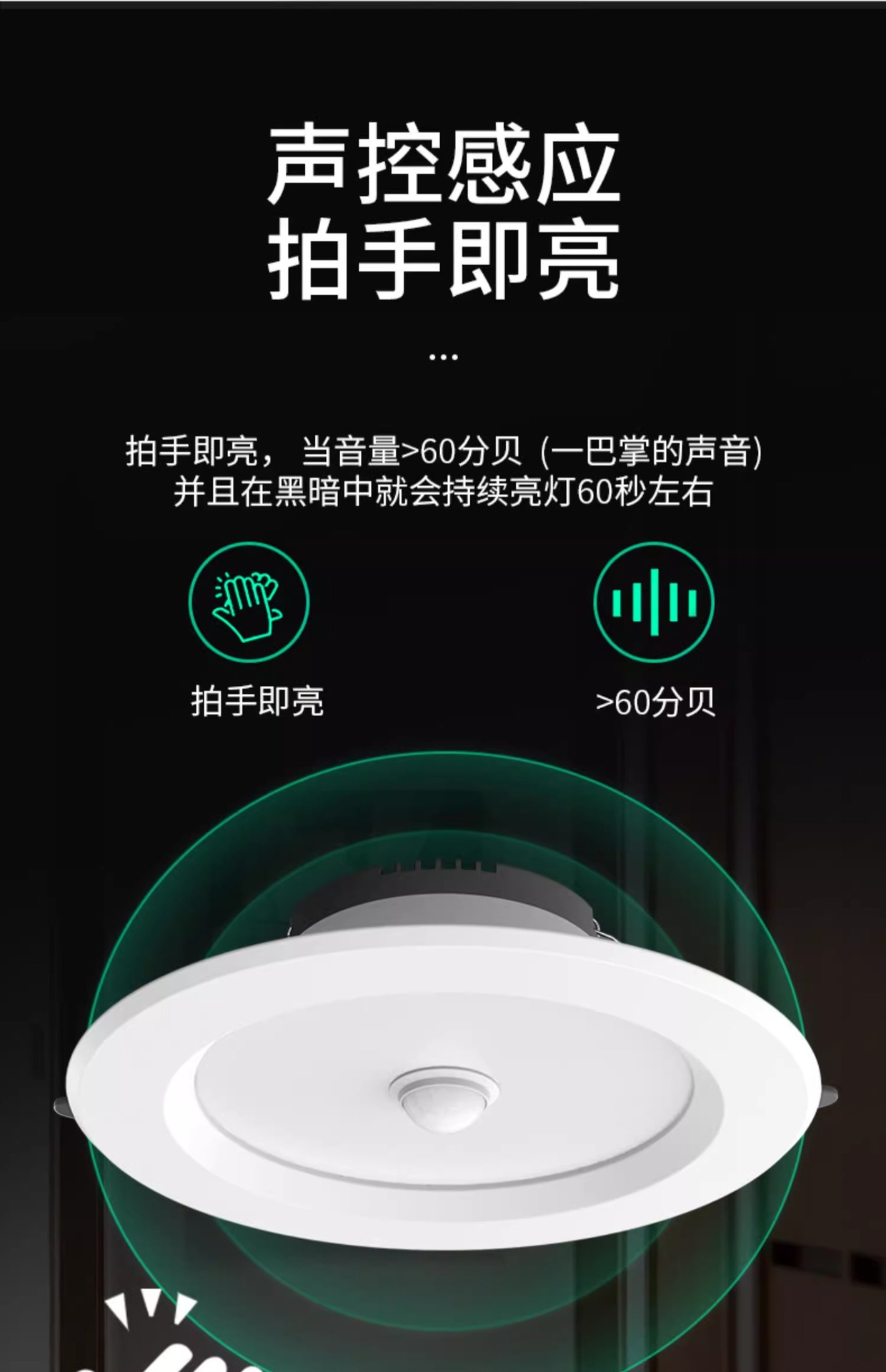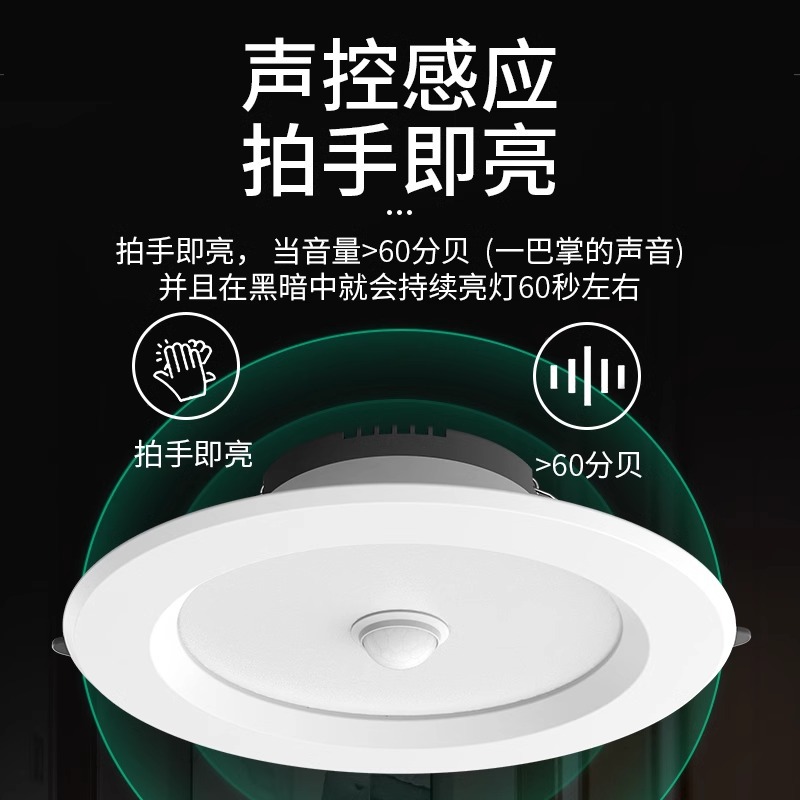 Светодиодный Интеллектуальный индукционный светильник с голосовым управлением, встроенный потолочный светильник, бытовой потолочный светильник, прихожая, проход, коридор, прожектор