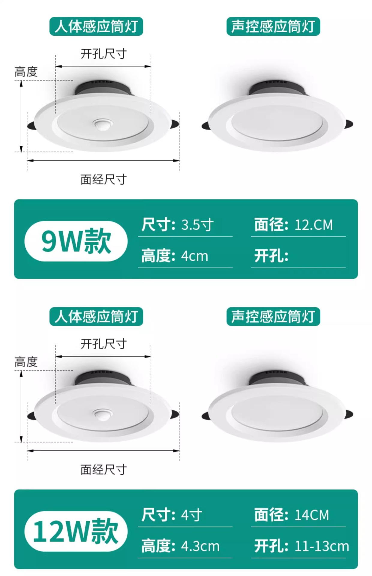 2,5-дюймовый 5-ваттный белый светильник [с датчиком голосового управления + датчик освещенности], отверстие 7-9 см; 2,5-дюймовый 5-ваттный светильник с белым светом [датчик движения + управление освещением], отверстие 7-9 см; 2,5-дюймовый белый свет мощностью 7 Вт [датчик голосового управления + контроль освещения] 7–9 см; 2,5-дюймовый белый светильник мощностью 7 Вт [датчик движения + световой контроль], отверстие 7-9 см; 3,5-дюймовый белый светильник мощностью 9 Вт [датчик голосового управления + управление освещением] отверстие 9–11 см; 3,5-дюймовый белый светильник мощностью 9 Вт [датчик движения + управление освещением] отверстие 9-11 см; 4-дюймовый светильник 12 Вт с белым светом [голосовое управление + датчик освещенности] отверстие 11-13,5; 4-дюймовый светильник 12 Вт с белым светом [датчик движения + управление освещением] отверстие 11-13,5; 4-дюймовый светильник с белым светом, 15 Вт [голосовое управление + датчик освещенности], отверстие 11-13,5; 4-дюймовый светильник с белым светом мощностью 15 Вт [датчик движения + управление освещением], отверстие 11-13,5; 6-дюймовый светильник 18 Вт с белым светом [голосовое управление + датчик освещенности] отверстие 14-17 см; 6-дюймовый светильник 18 Вт с белым светом [датчик движения + управление освещением], отверстие 14-17 см