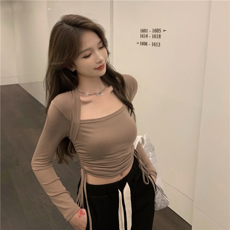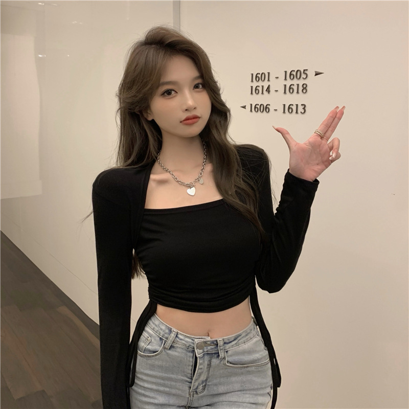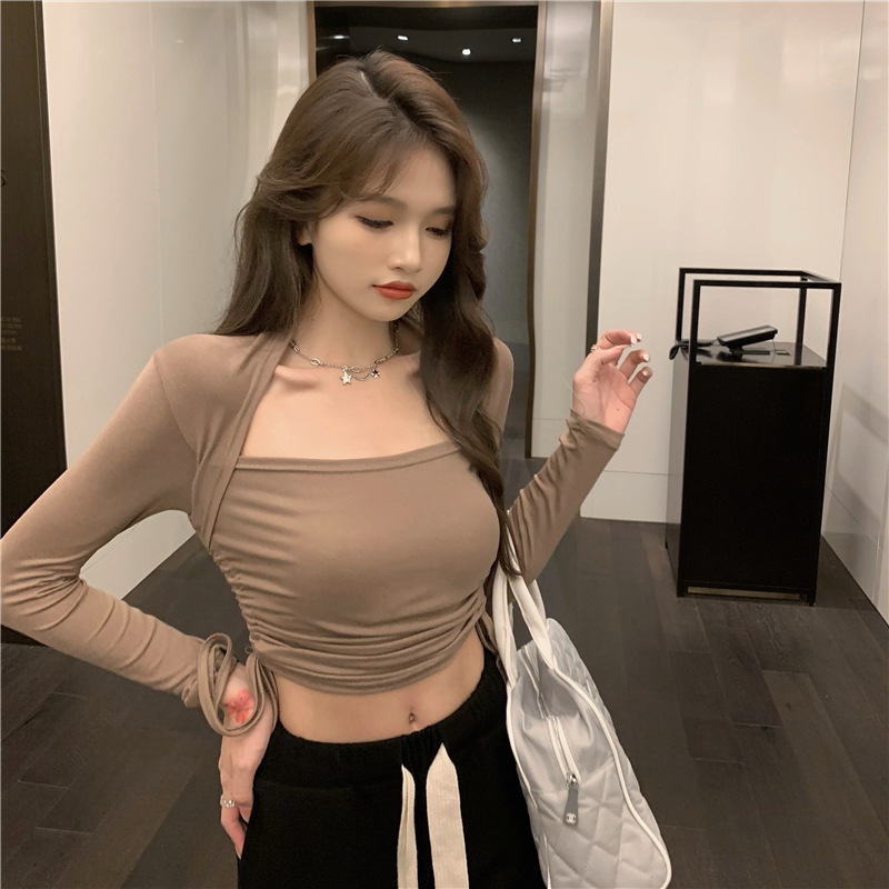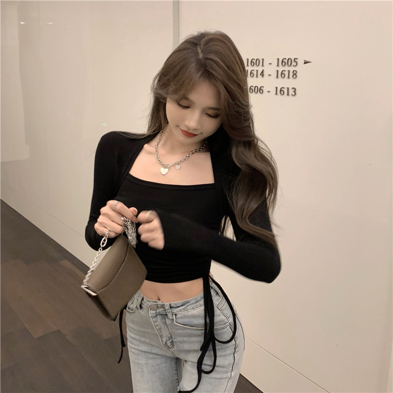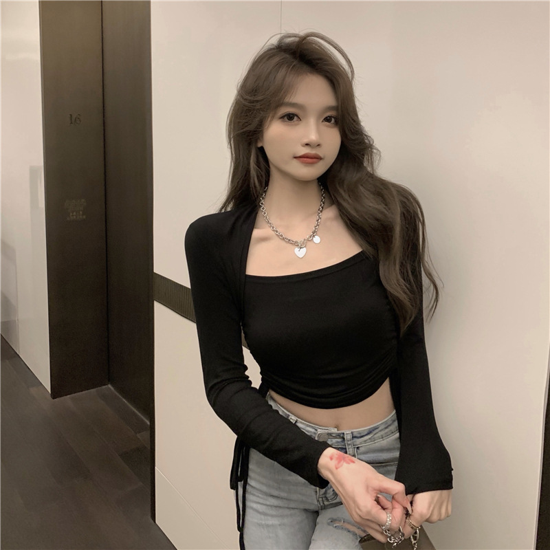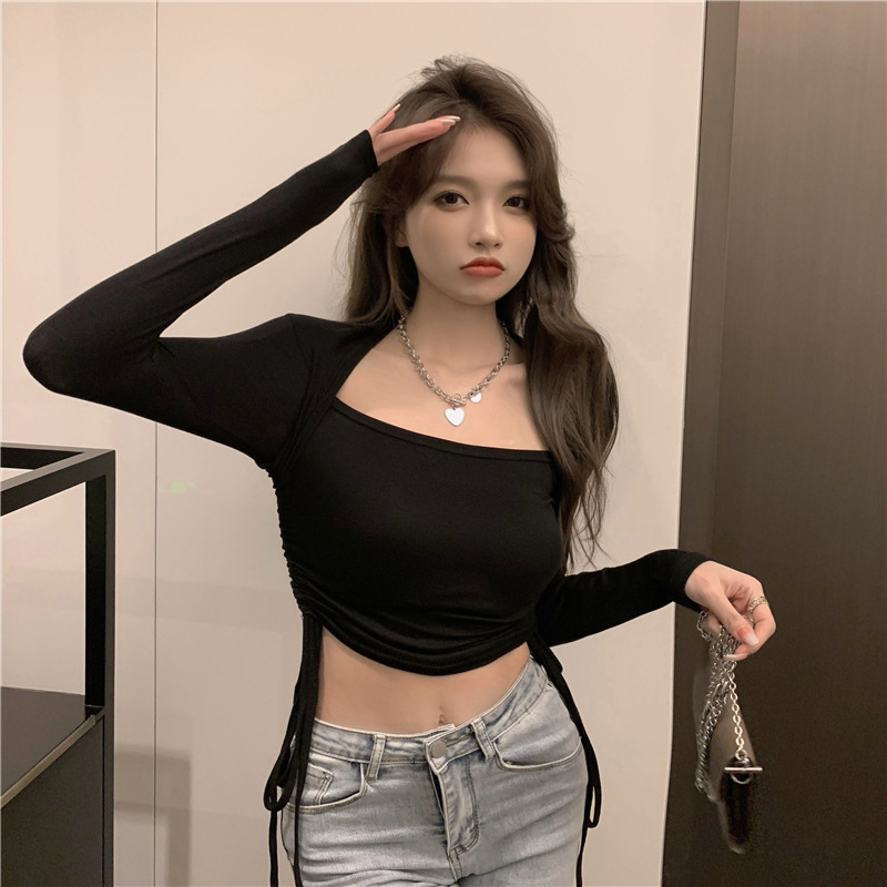 Футболка женская ранняя осень дизайн ниша чистое желание сексуальная короткая облегающая рубашка шикарный топ с длинными рукавами оптом