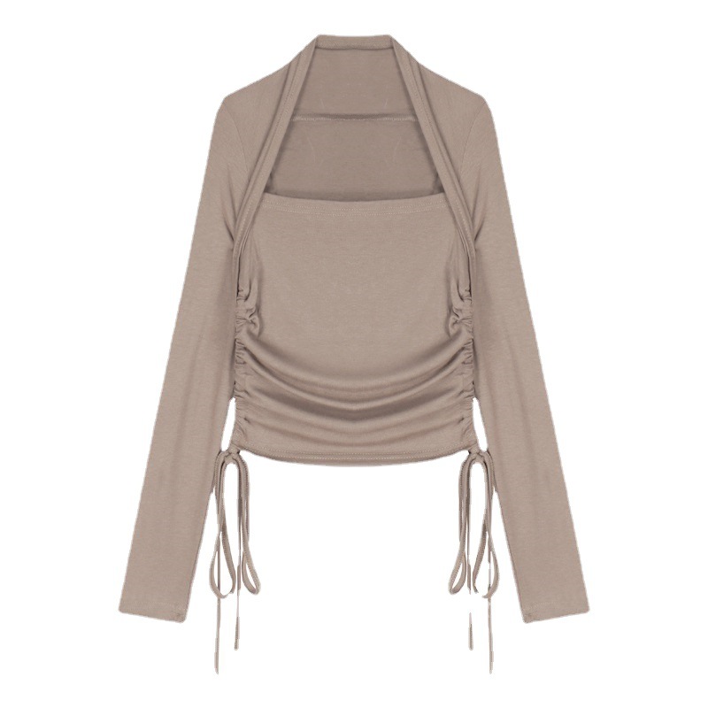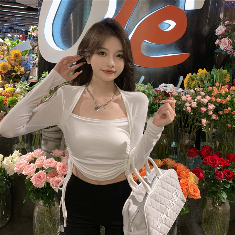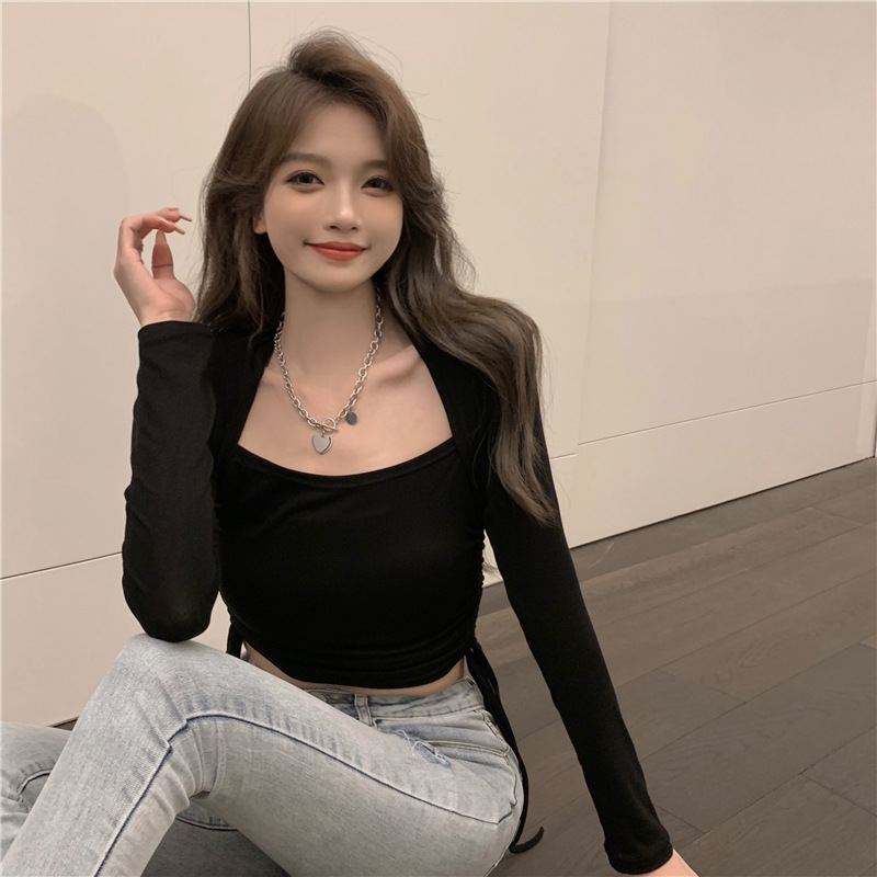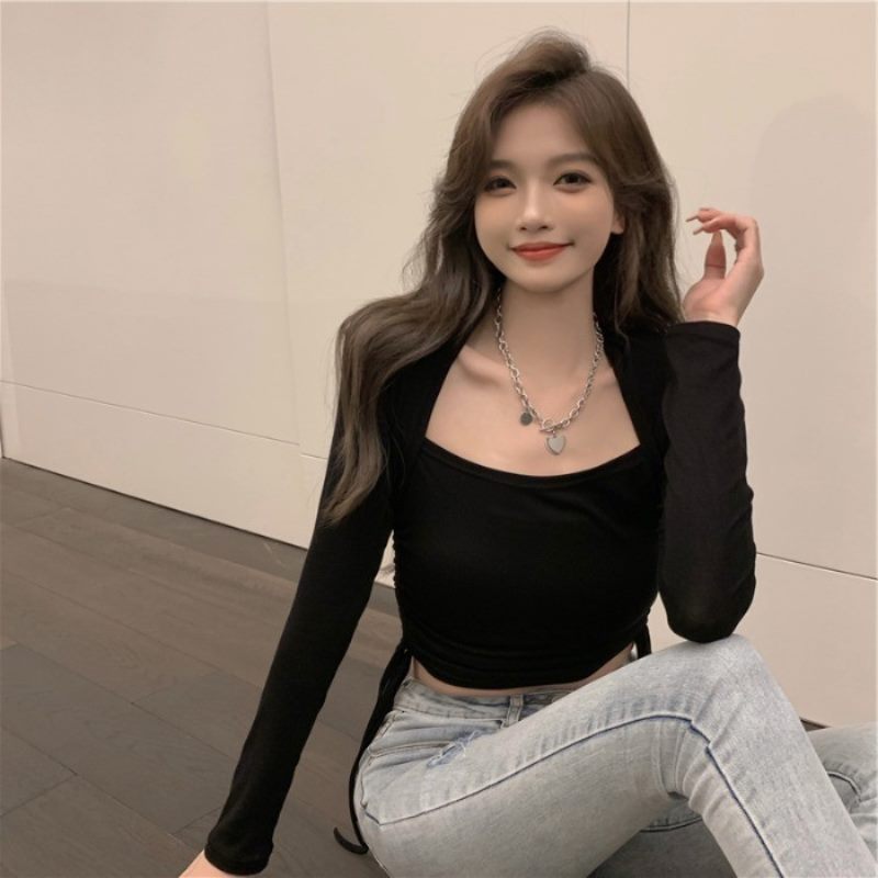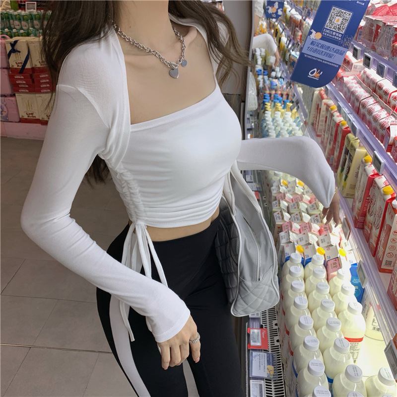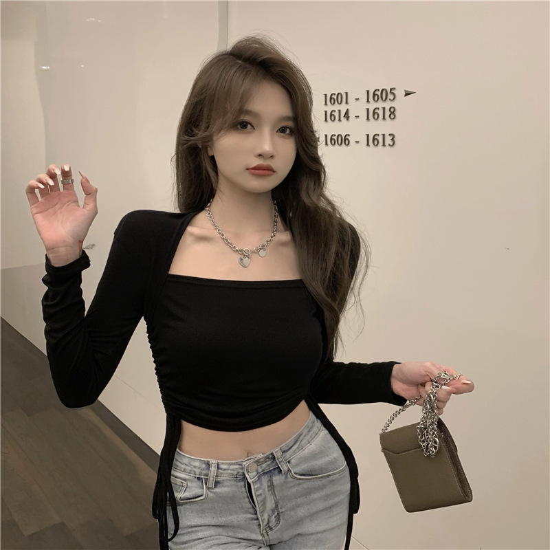 Футболка женская ранняя осень дизайн ниша чистое желание сексуальная короткая облегающая рубашка шикарный топ с длинными рукавами оптом
