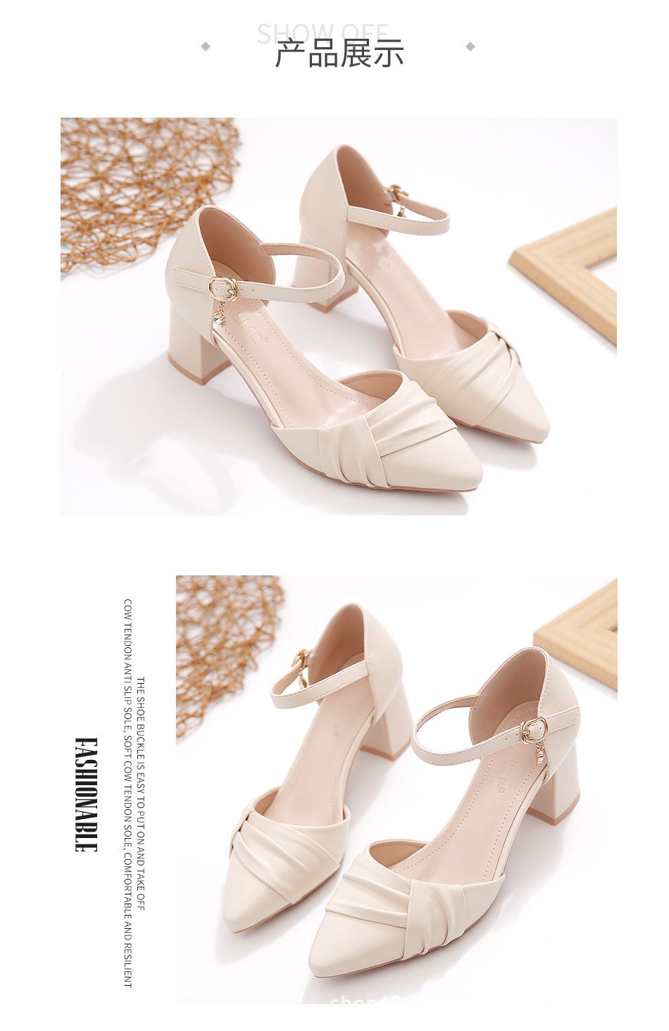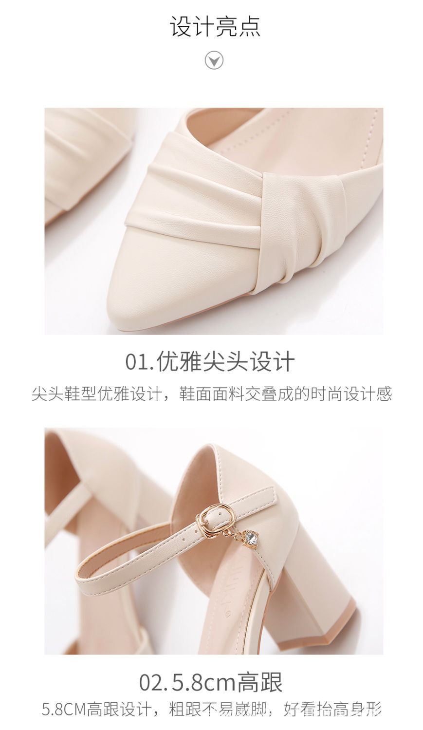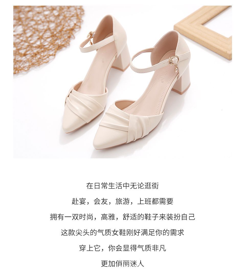 Женские босоножки с закрытым носком, лето 2024, новинка, одноремешок, туфли на высоком каблуке с острым носком, элегантные однослойные туфли на среднем каблуке с мягкой подошвой
