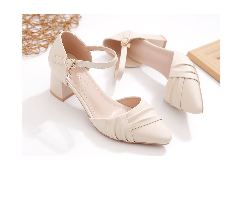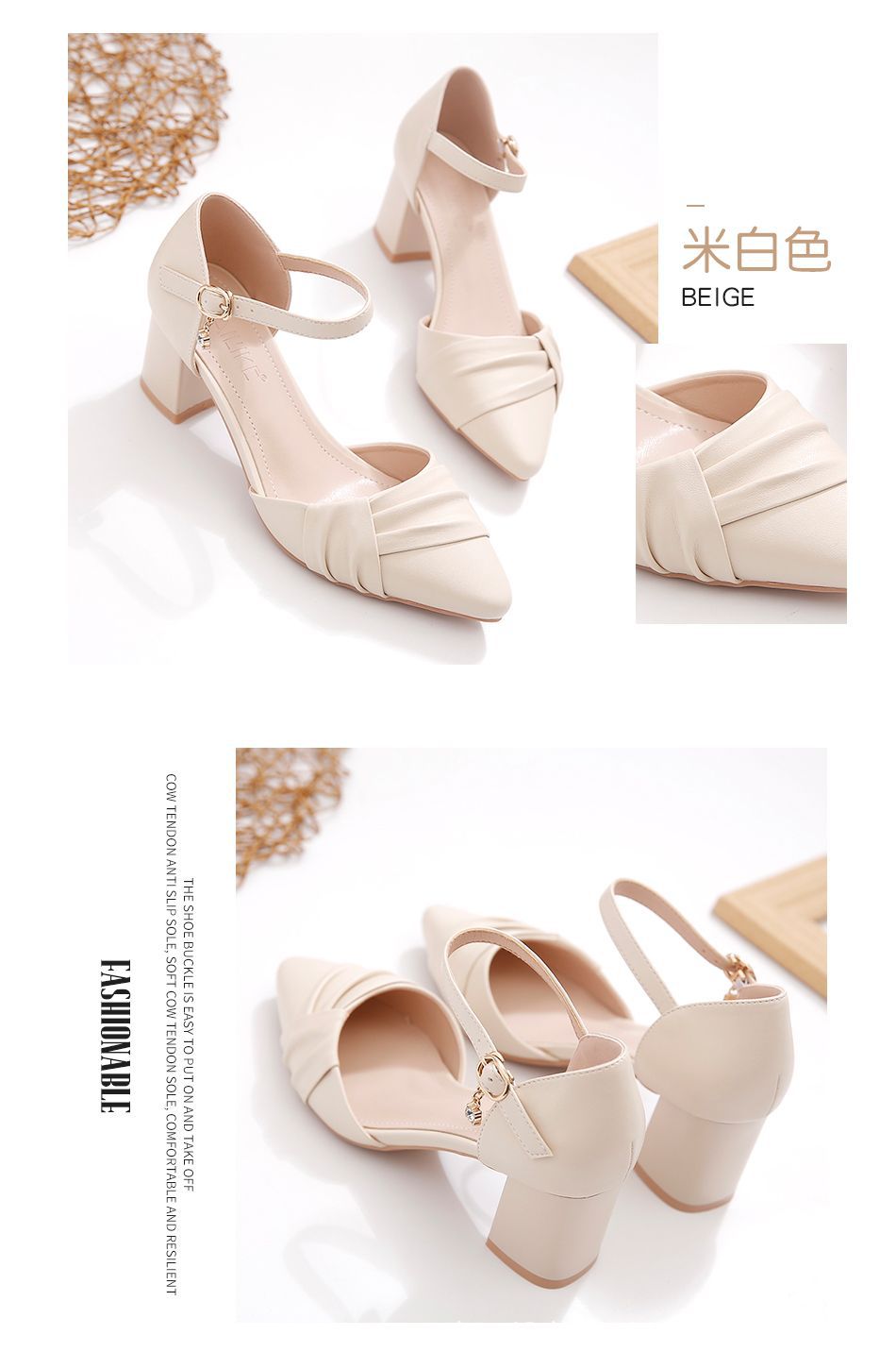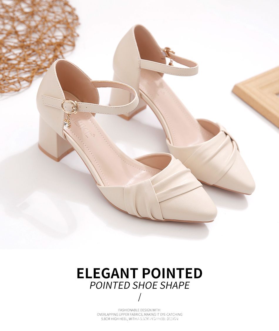 Женские босоножки с закрытым носком, лето 2024, новинка, одноремешок, туфли на высоком каблуке с острым носком, элегантные однослойные туфли на среднем каблуке с мягкой подошвой