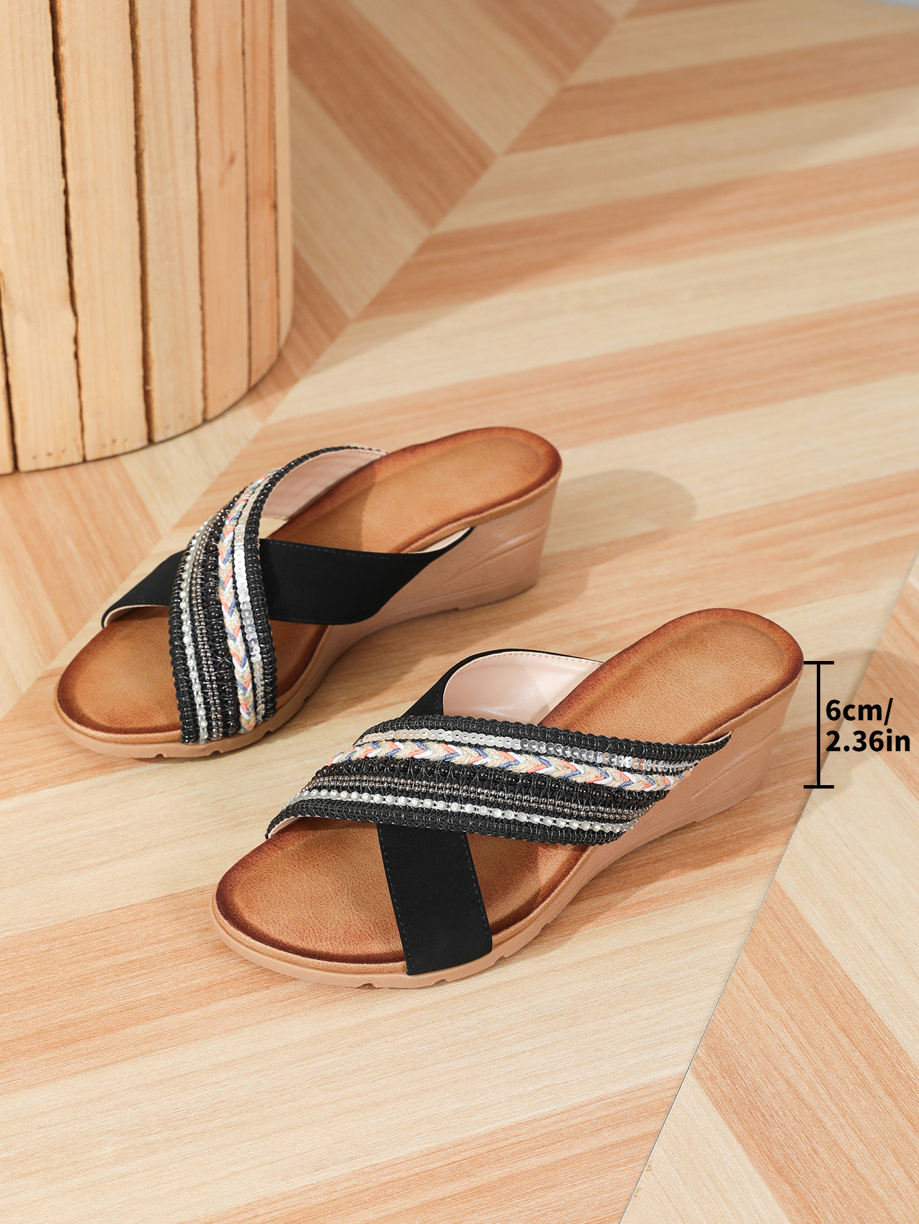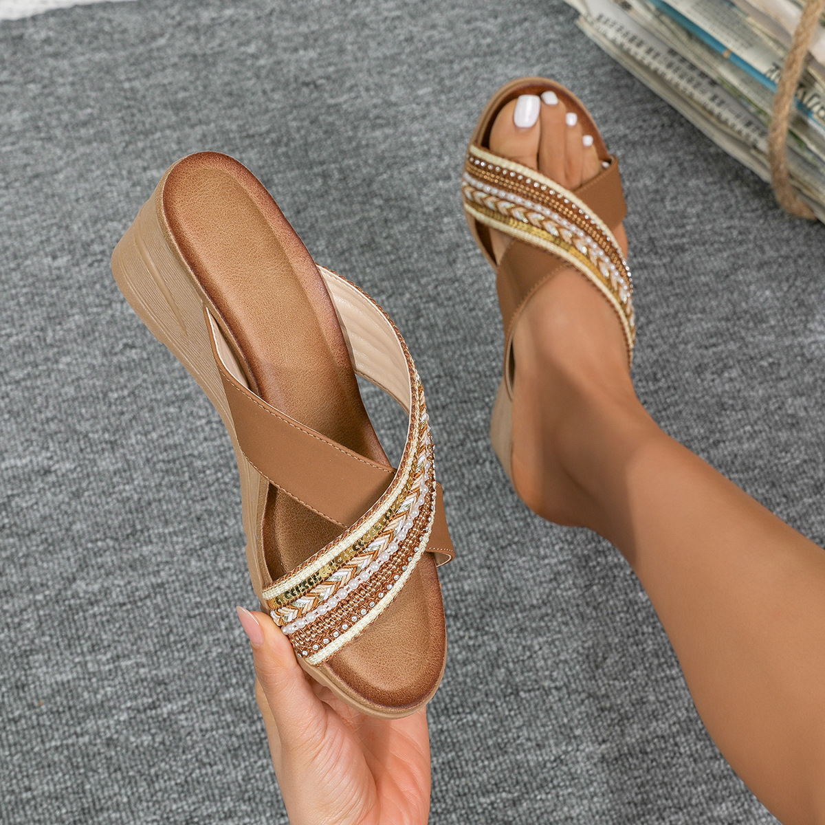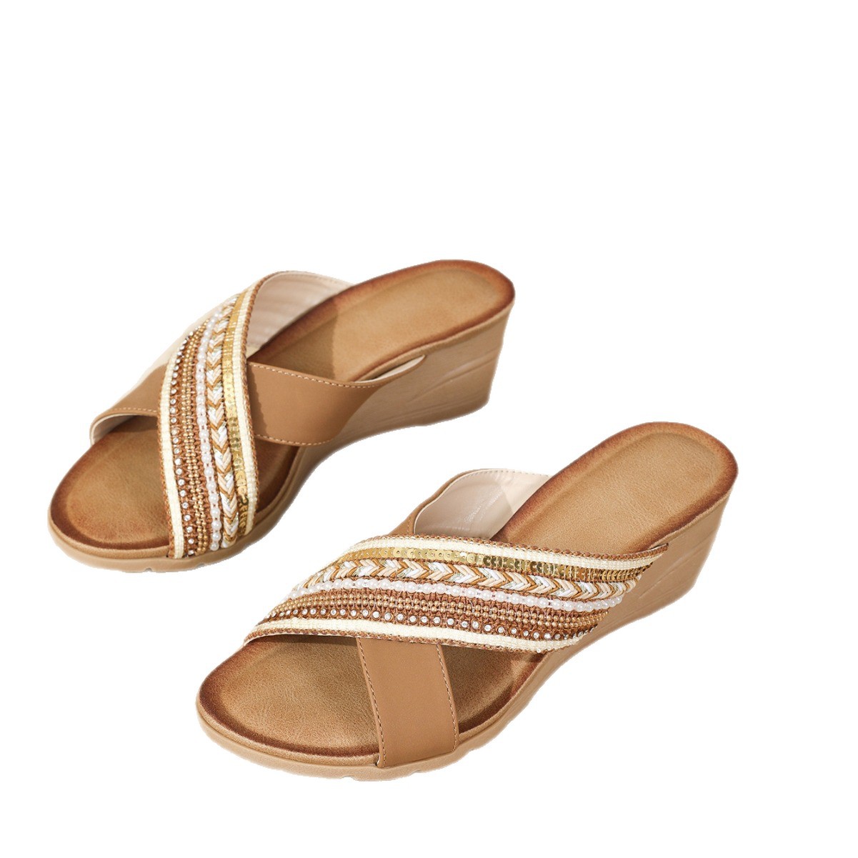 Женская обувь в богемном этническом стиле, модные тапочки со стразами, повседневная женская обувь на платформе на танкетке, внешняя торговля, Amazon Supply