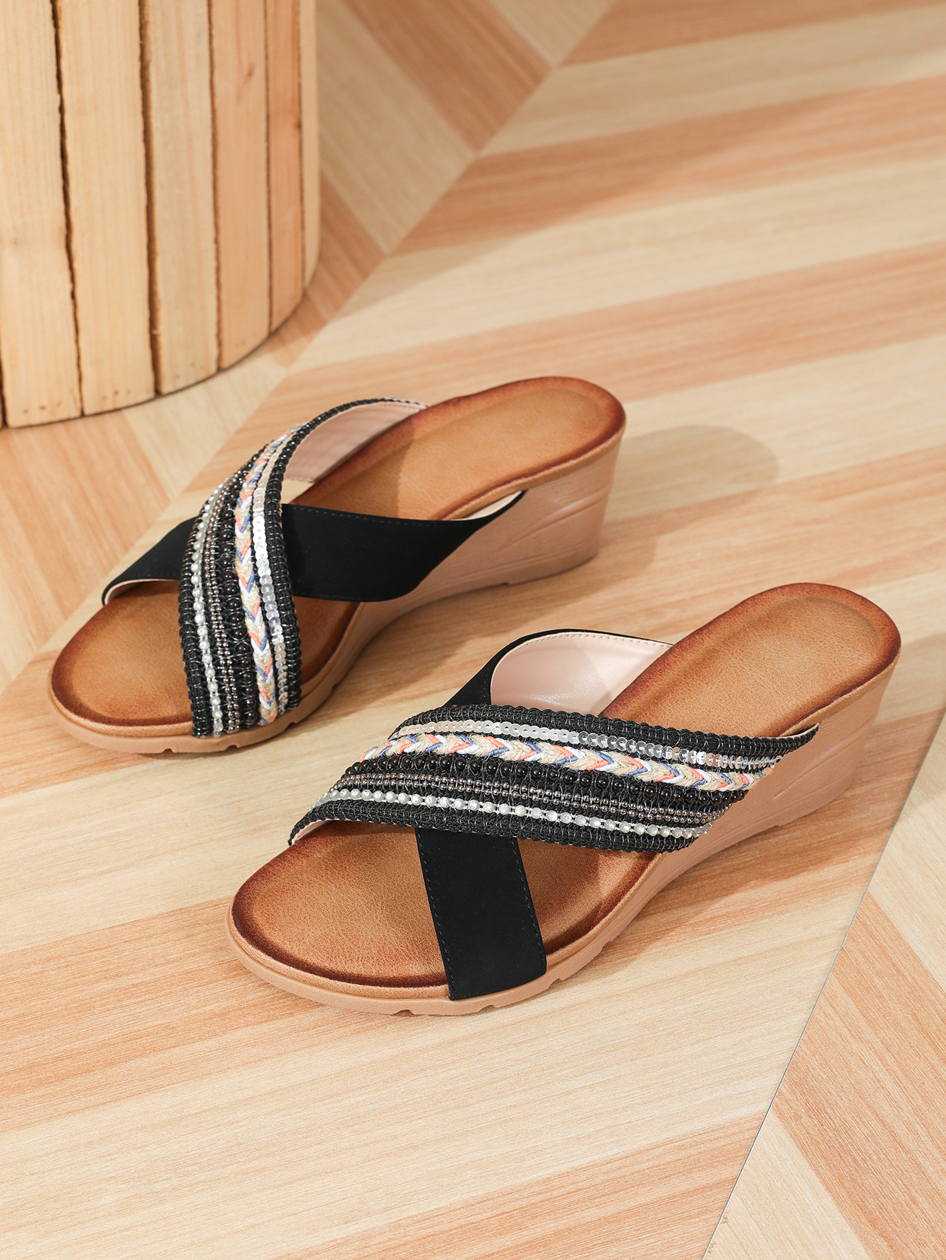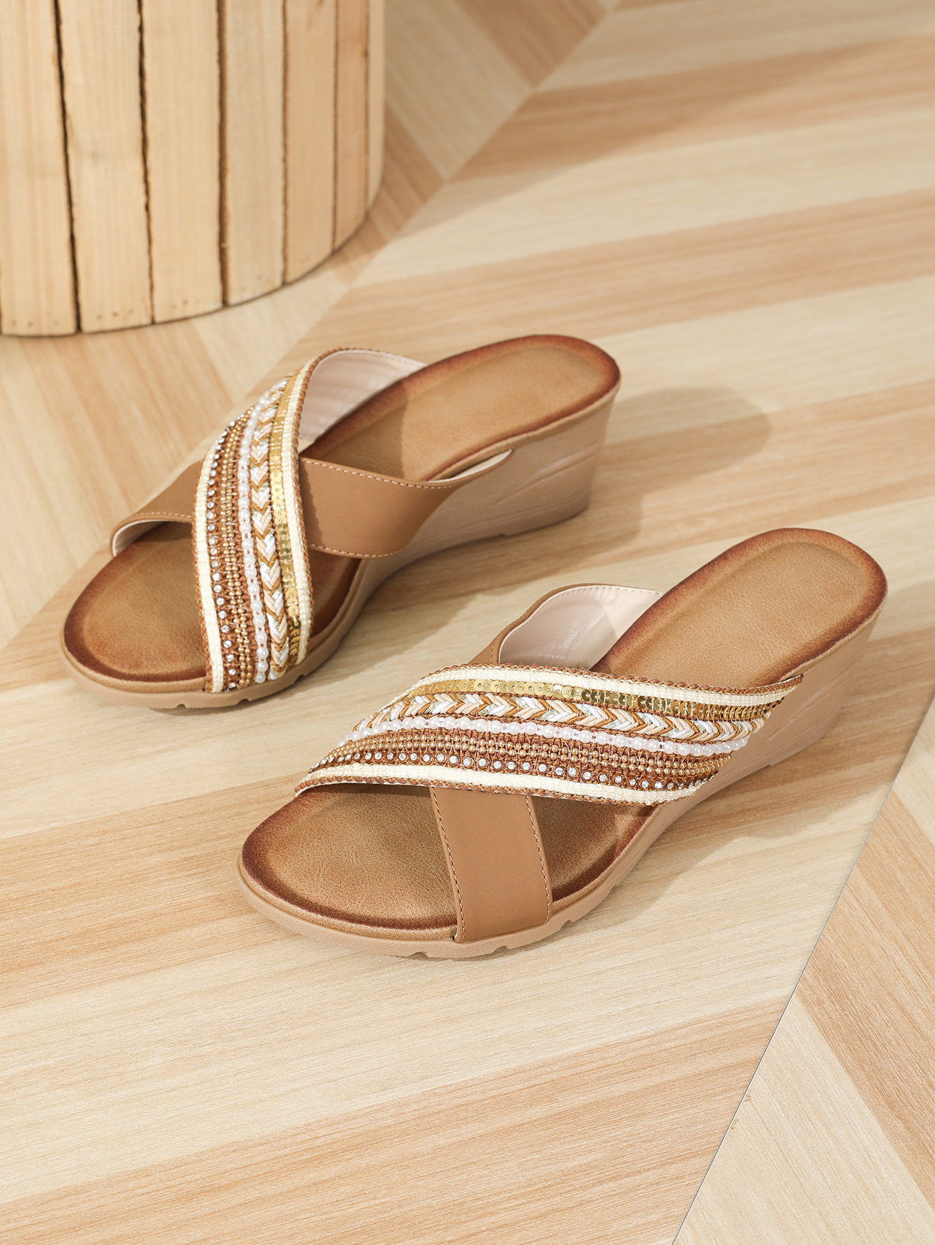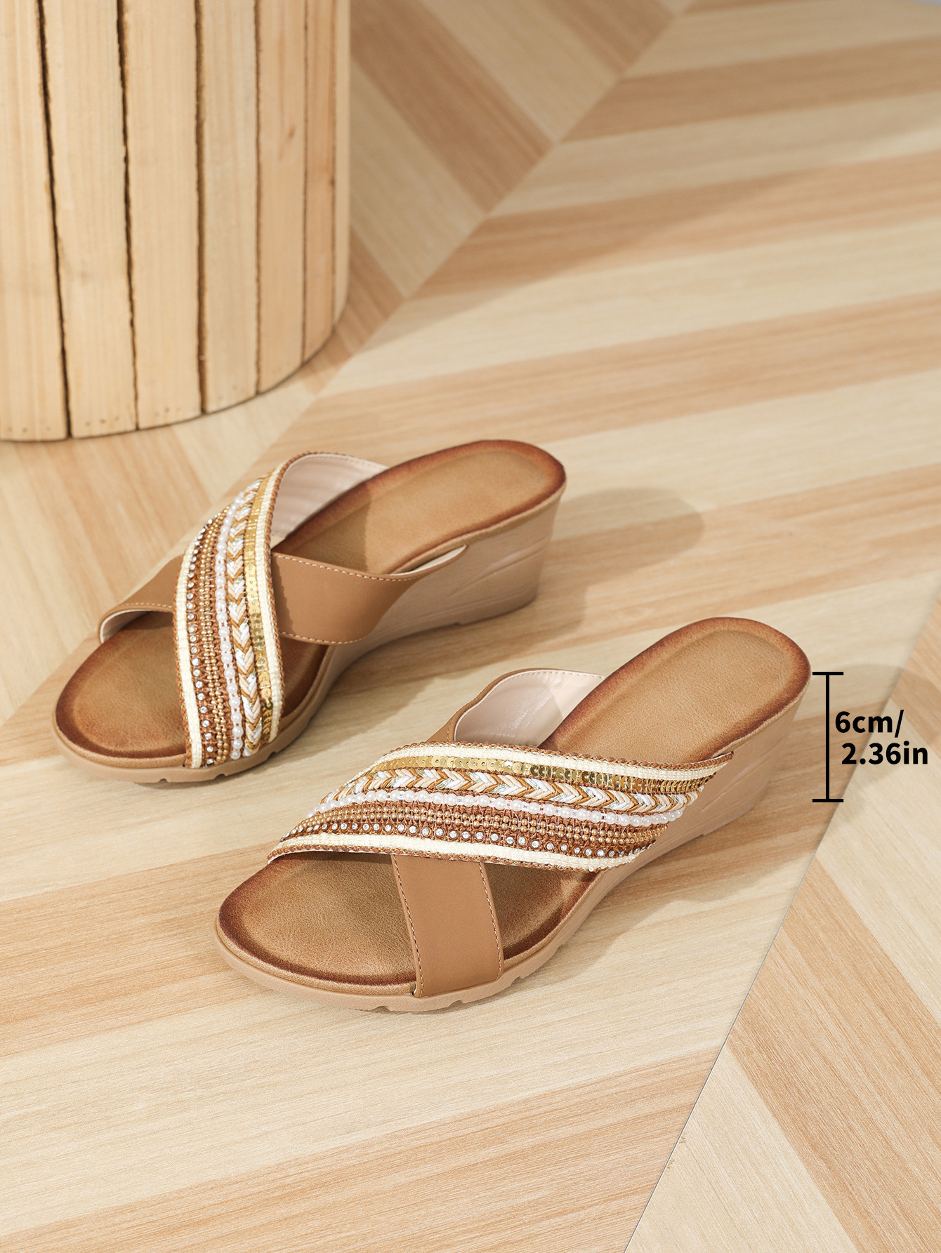 Женская обувь в богемном этническом стиле, модные тапочки со стразами, повседневная женская обувь на платформе на танкетке, внешняя торговля, Amazon Supply