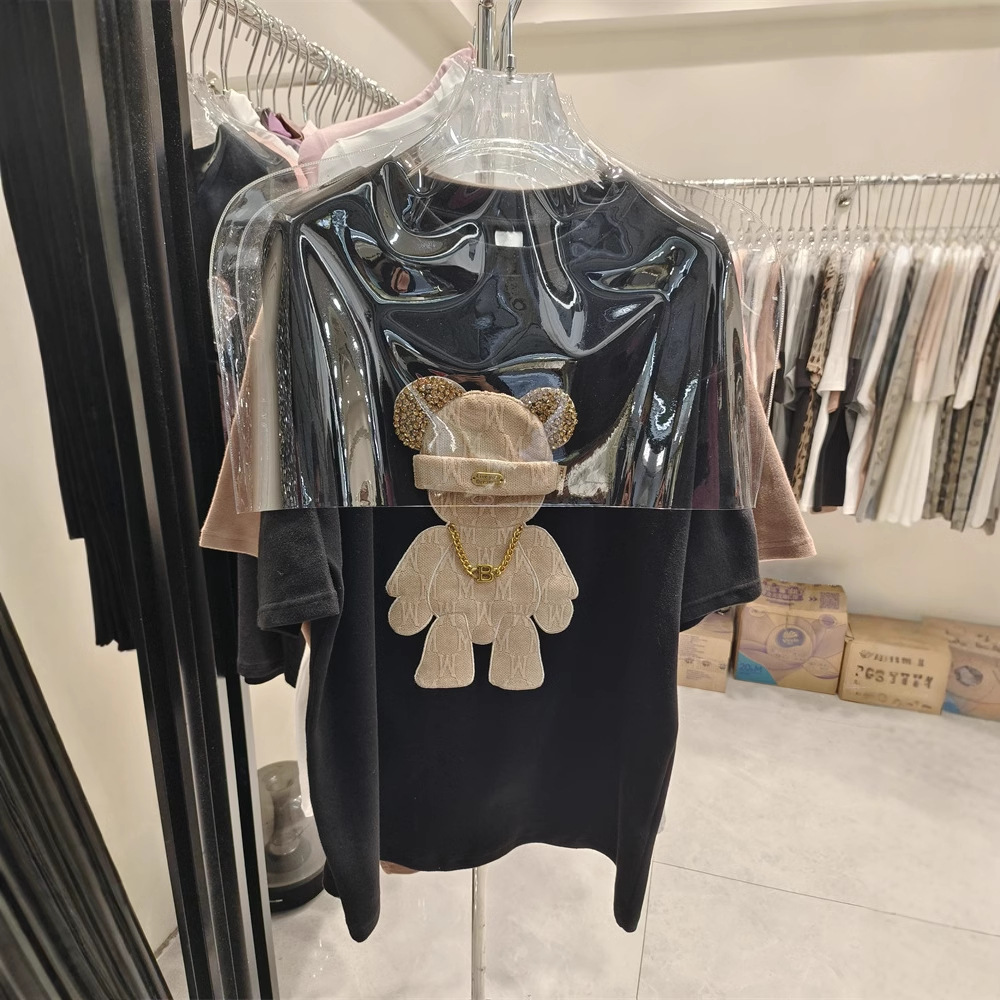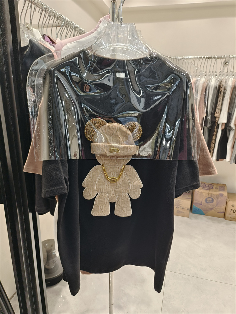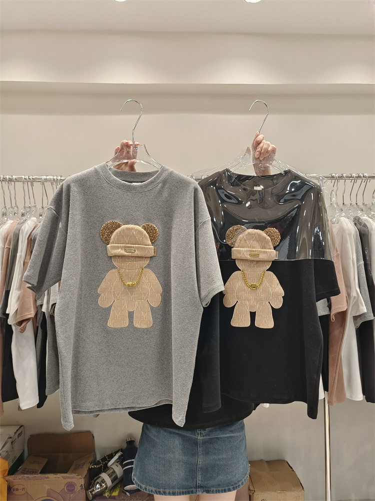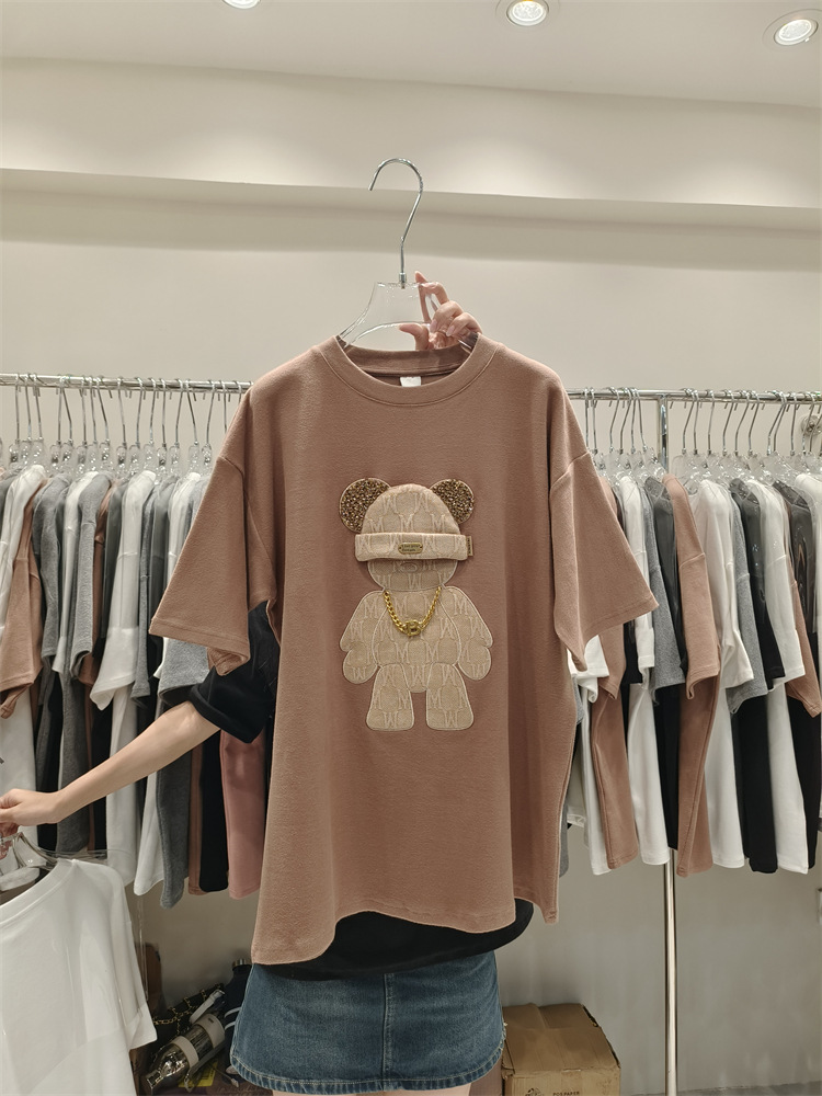 Зимняя утолщенная футболка с начесом и половиной рукавов, весна-лето 2023, новый европейский свободный топ средней длины с короткими рукавами большого размера для женщин