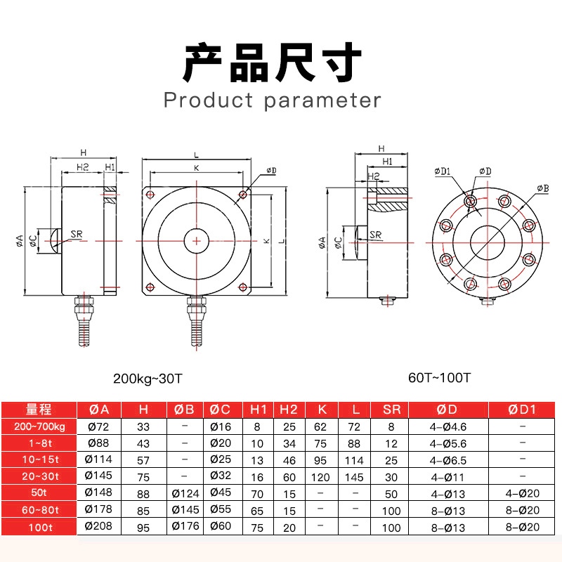 A-200kg; A-300kg; A-500kg; Модель A-700kg; A-1t; A-2t; A-3t; A-5t; A-8t; Модель A-10t; A-20t; Модель A-30t; Модель A-50t; Модель B-60t; Модель B-80t; B-100t