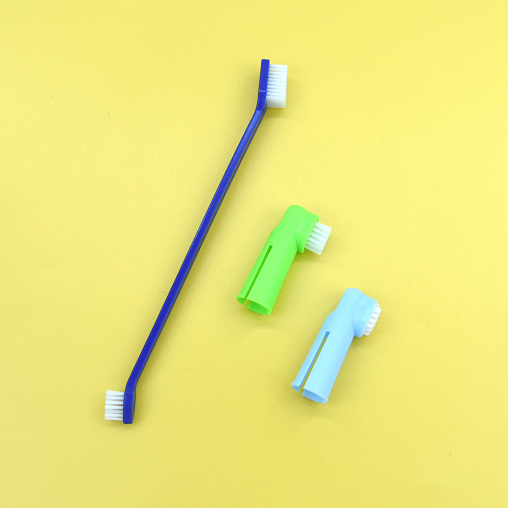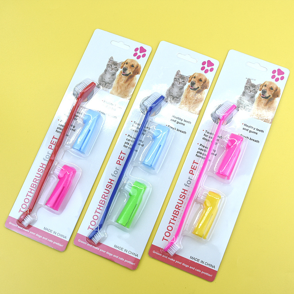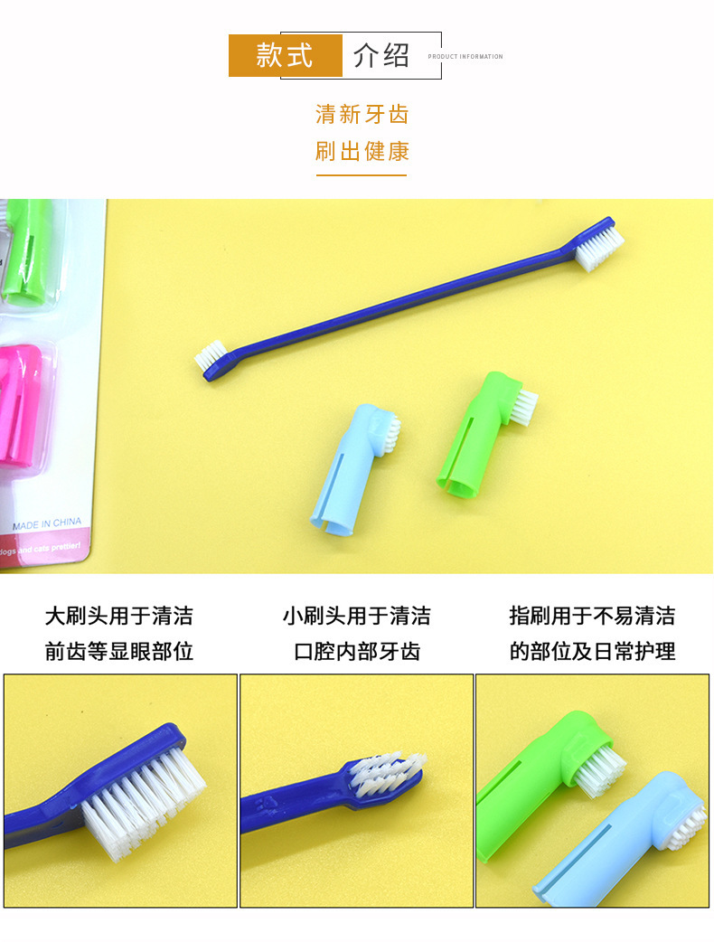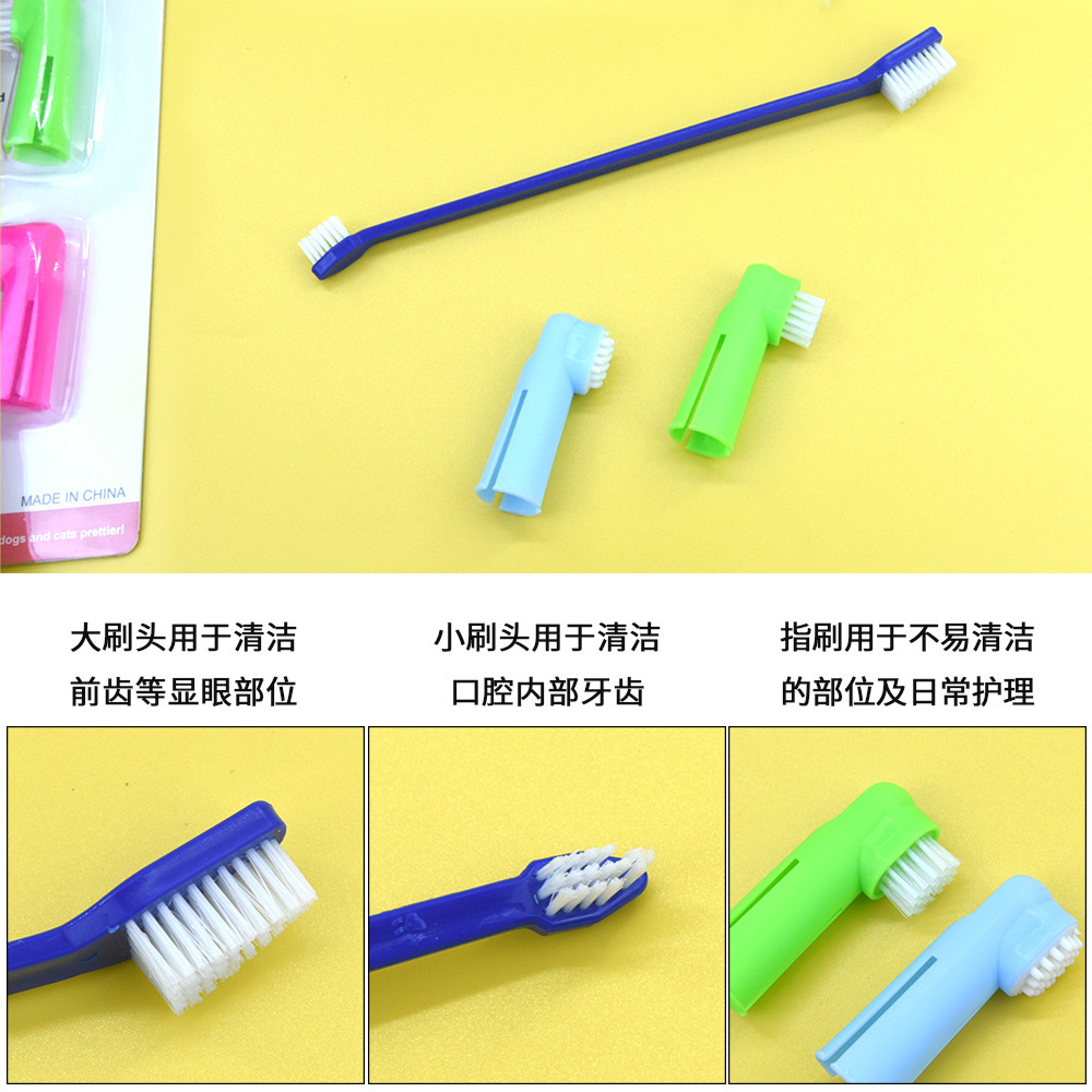 В наличии оптовая зубная щетка для домашних животных трехкомпонентная двуглавая зубная щетка для домашних животных щетка для собак кошачий палец набор зубных щеток