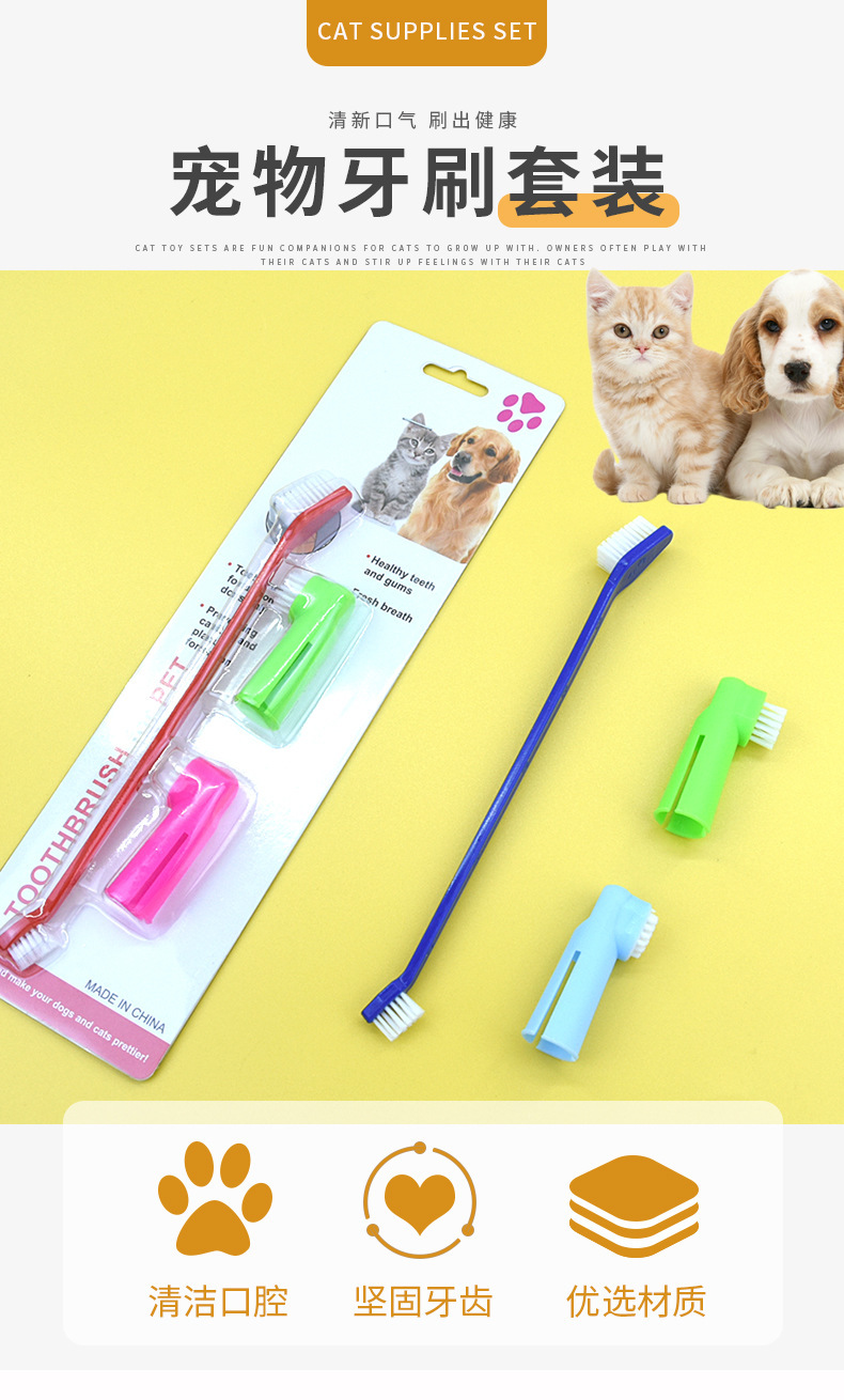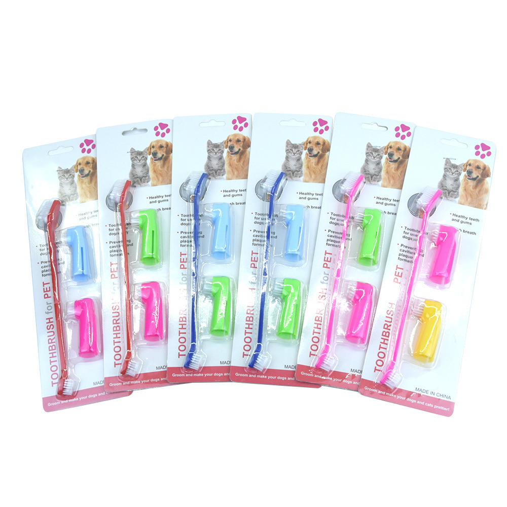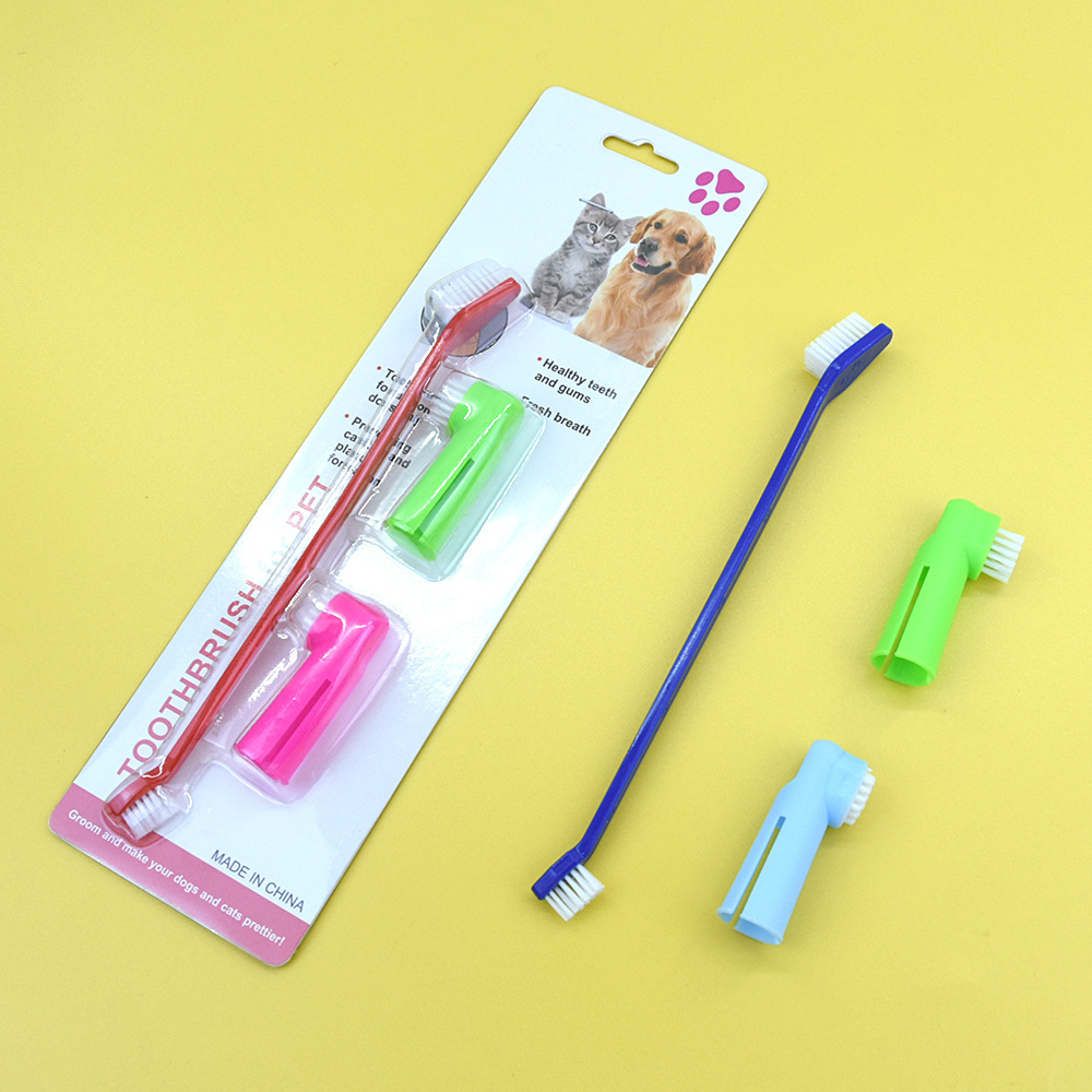 В наличии оптовая зубная щетка для домашних животных трехкомпонентная двуглавая зубная щетка для домашних животных щетка для собак кошачий палец набор зубных щеток