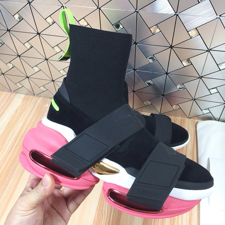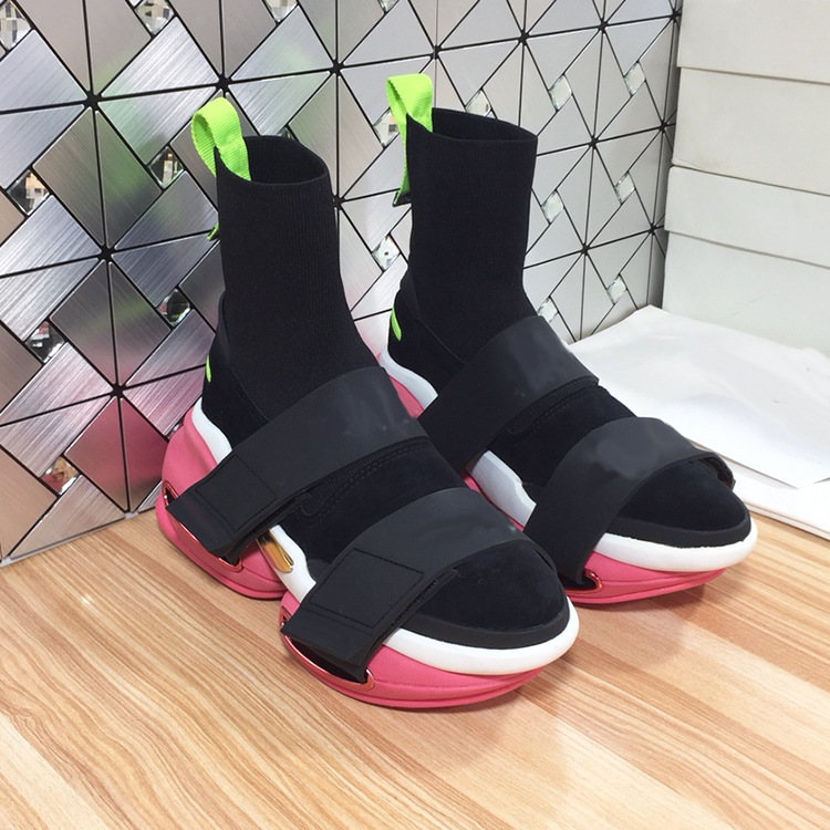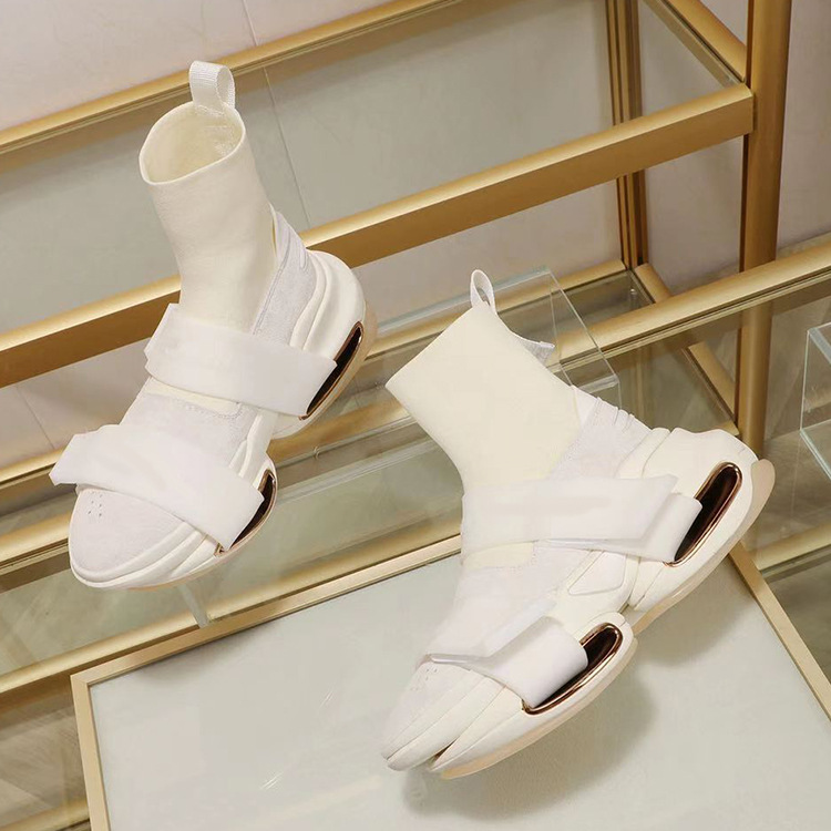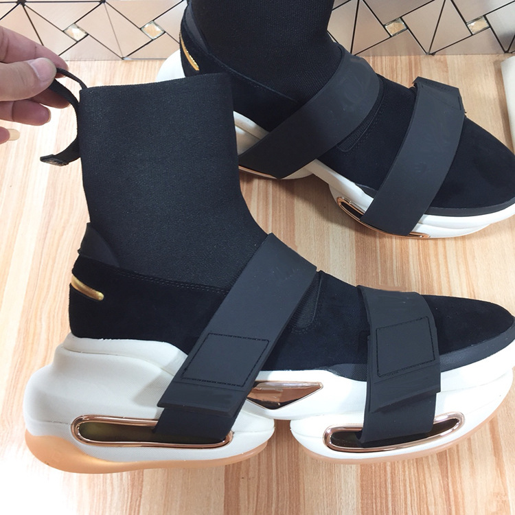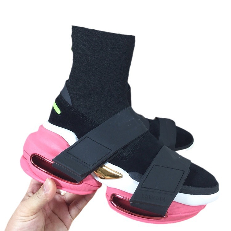 Модные толстые подошвы, повышенные повседневные кроссовки, липучки, летающие из шерсти, вязаные эластичные сапоги, тонкие пары, папы, туфли