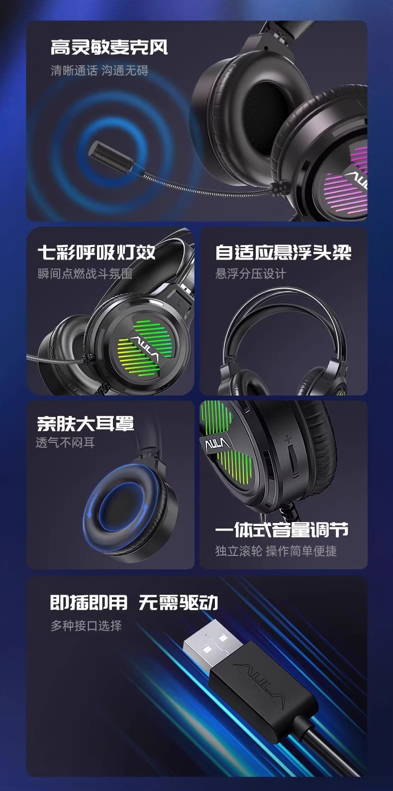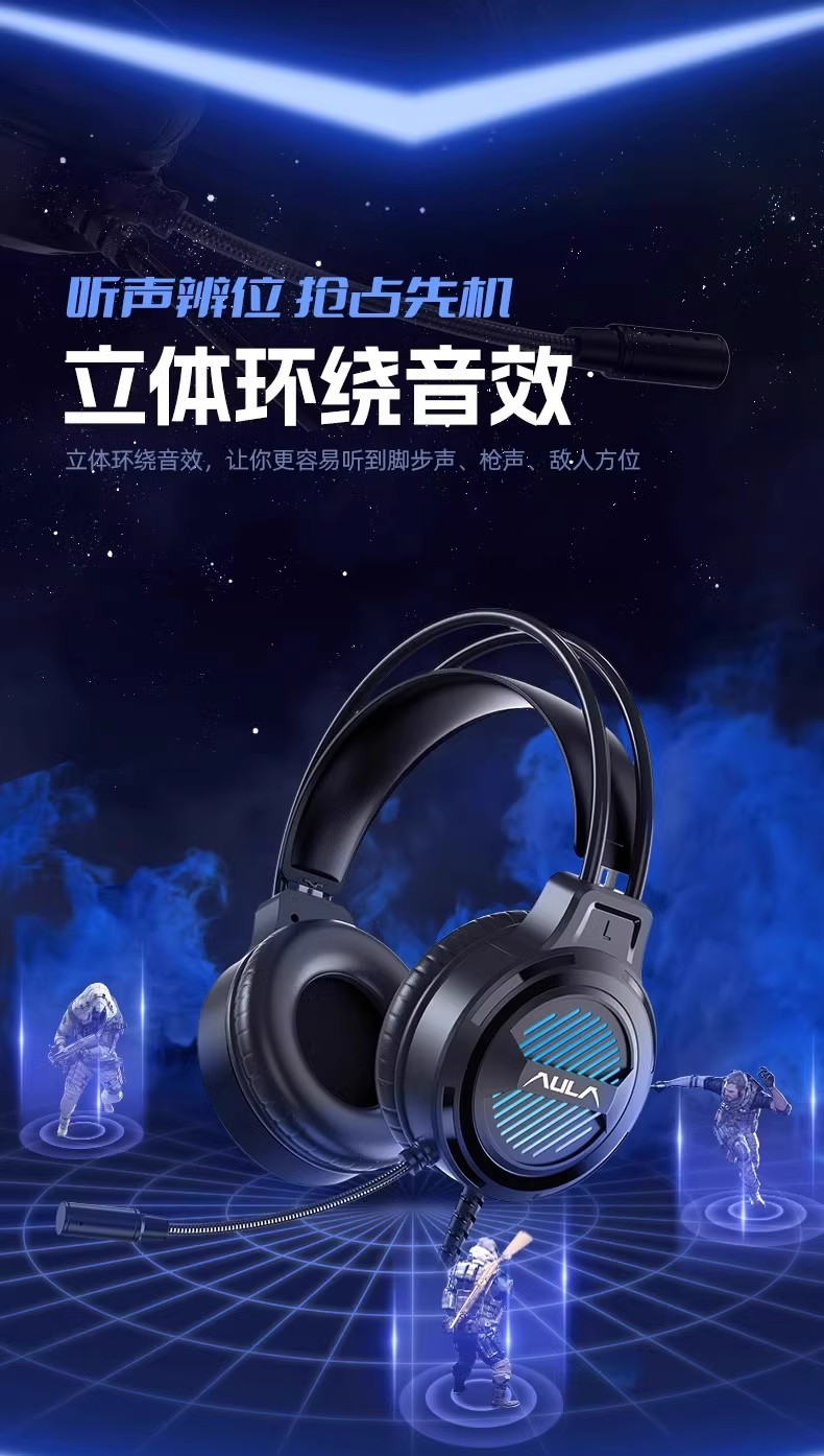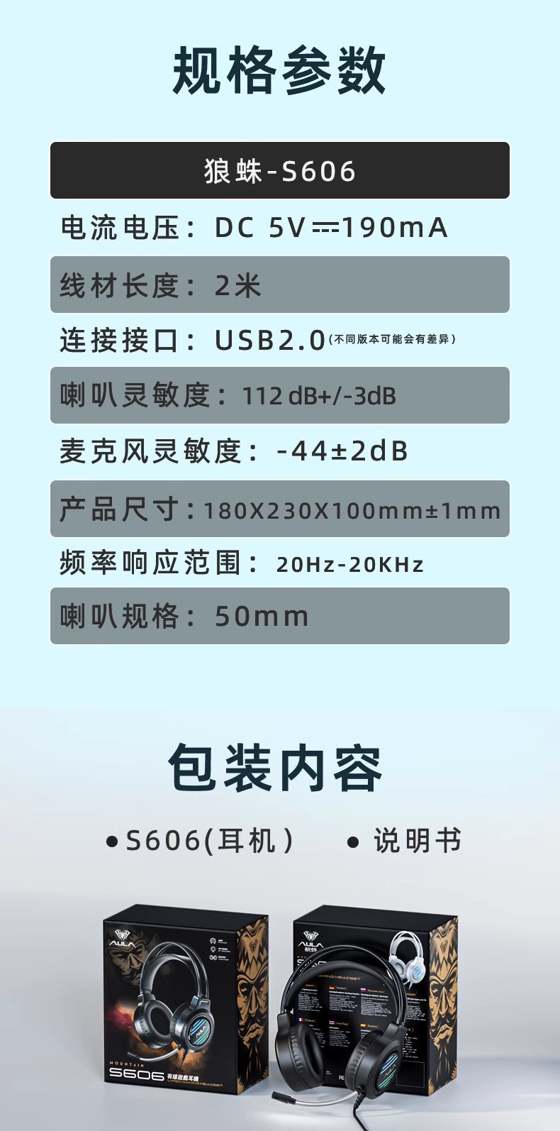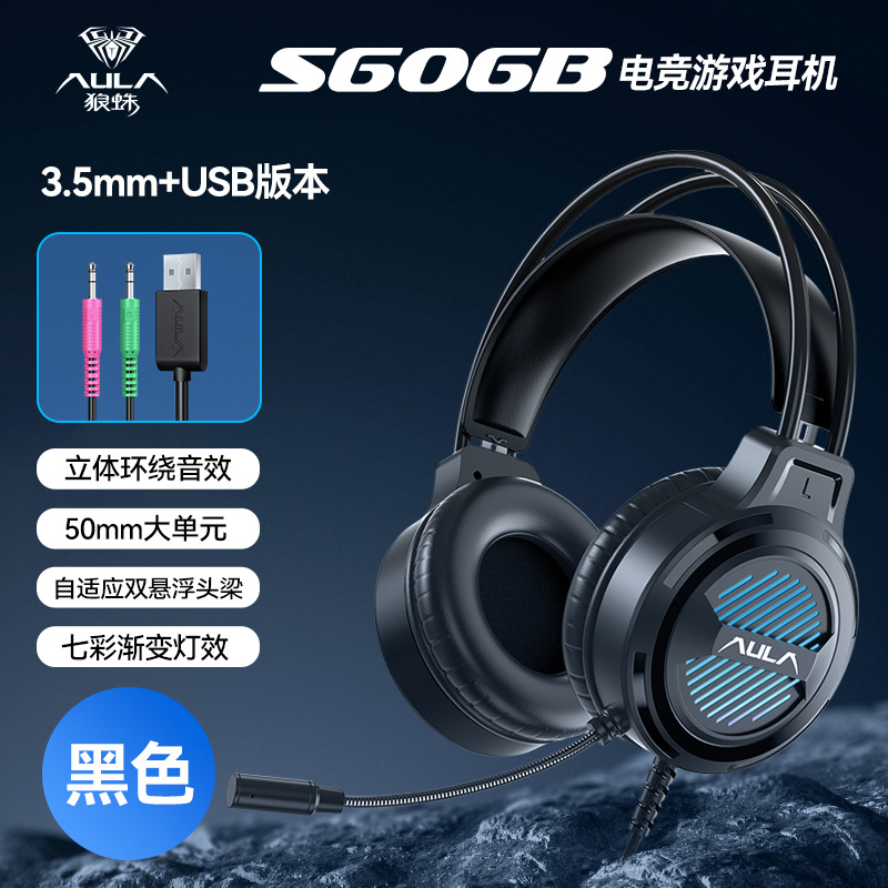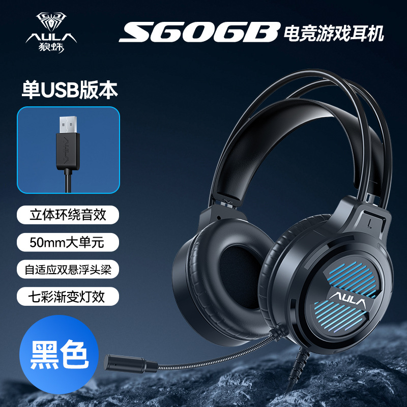 Игровая гарнитура Wolf Spider S606B, накладные наушники, 7.1-канальный звук, шумоподавление, проводная, для ноутбука