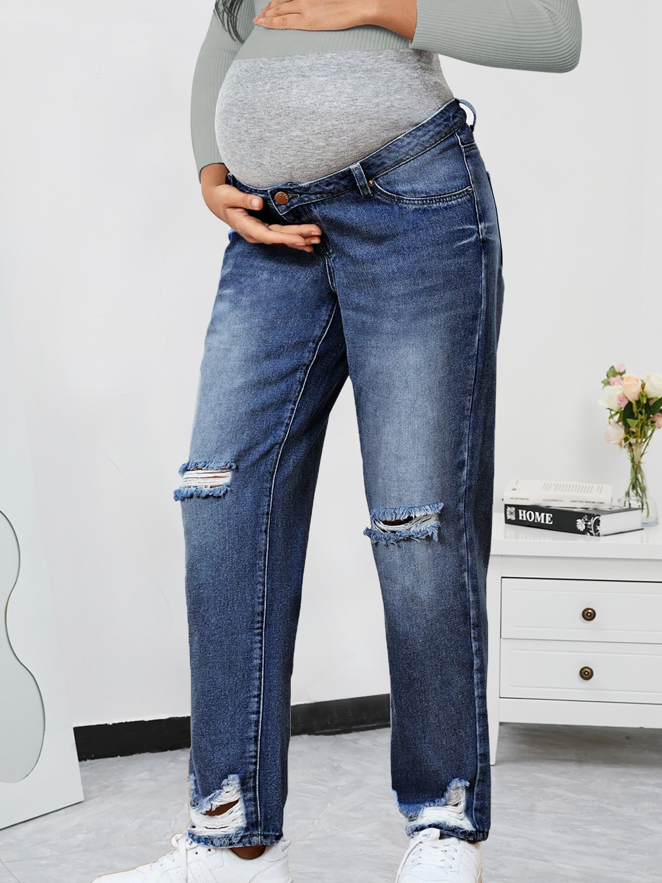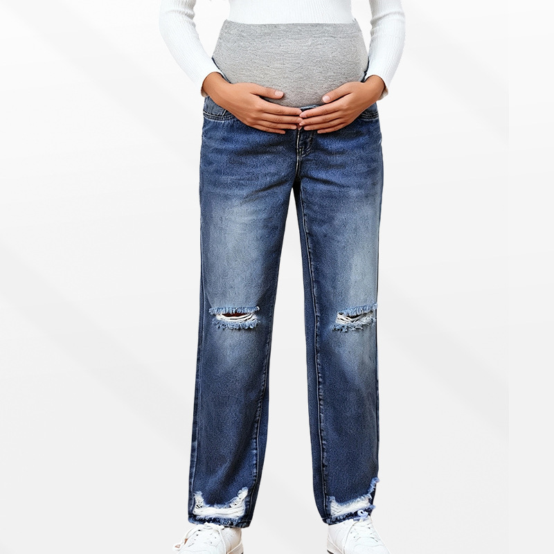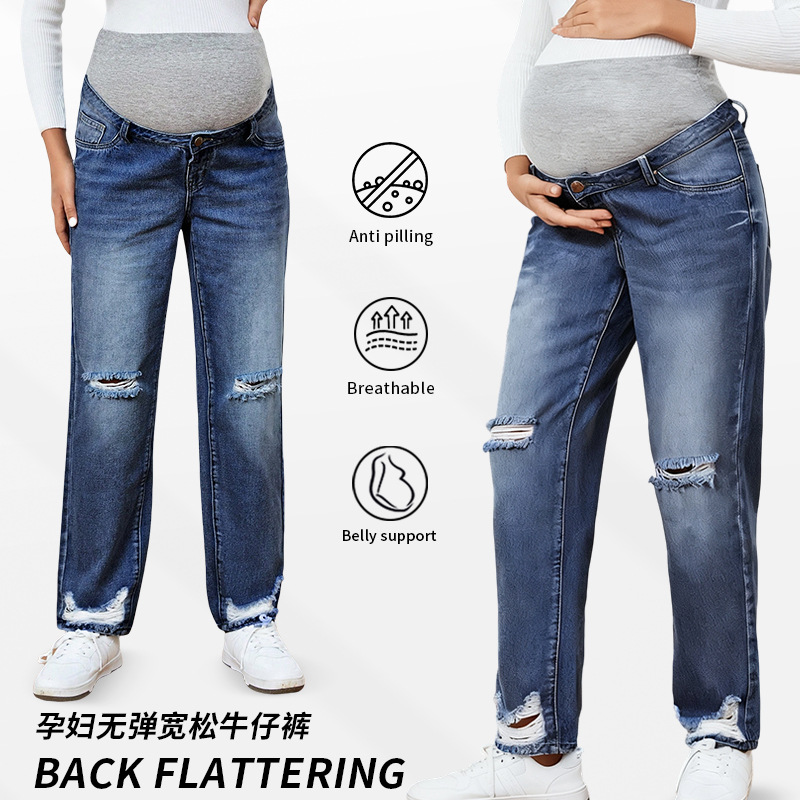 Джинсы для беременных с высокой талией, прямые брюки, свободные, неэластичные, осенне-зимний стиль, повседневная одежда для беременных, Amazon pregnancy