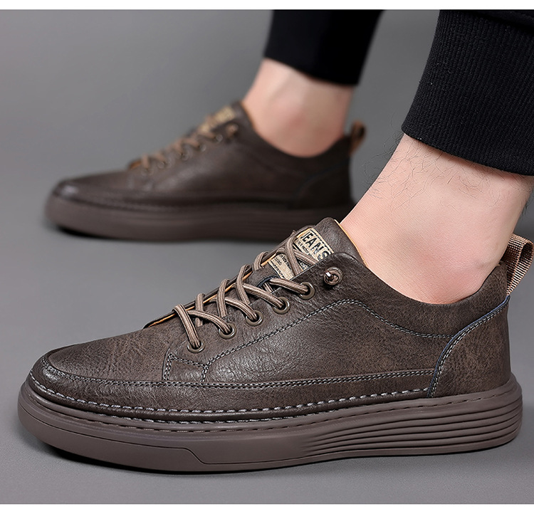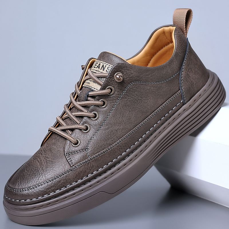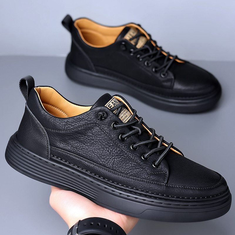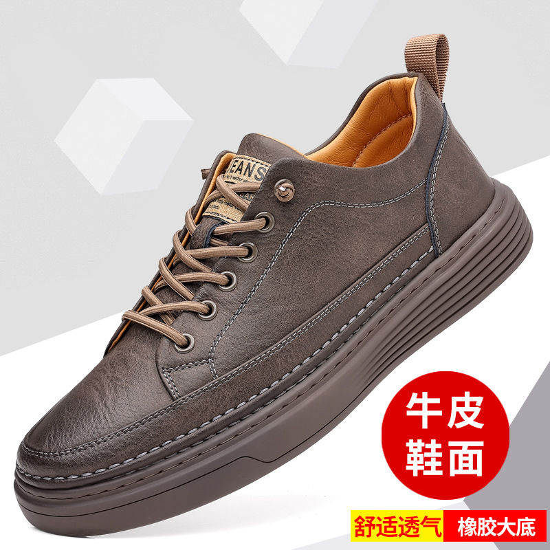 Мужские кожаные кроссовки в корейском стиле на весну-осень 2024, универсальные низкие слипоны для студентов, повседневная обувь