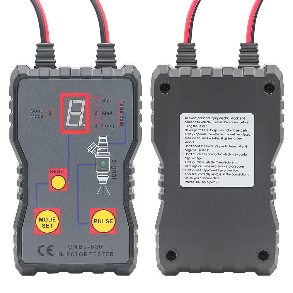 This instrument can help you diagnose injector problems, and can test the fuel injectors one by one to help confirm the stuck, leaking or combustion finished condition. It has four kinds of pulse signal output mode, users can choose any one according to their needs. Using 12V automobile battery as the power supply, the continuous working mode can identify the quality of the fuel injector when the engine is off, and the mode locking function ensures the consistency when testing the fuel injector. This instrument can be used with any fuel pressure tester