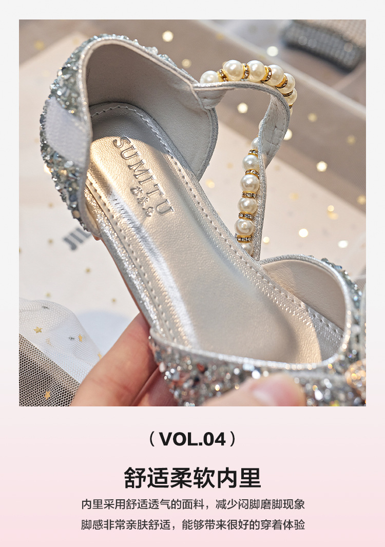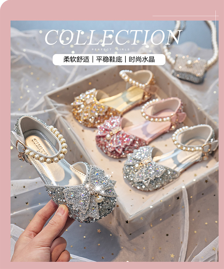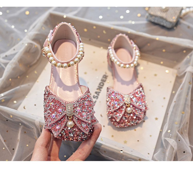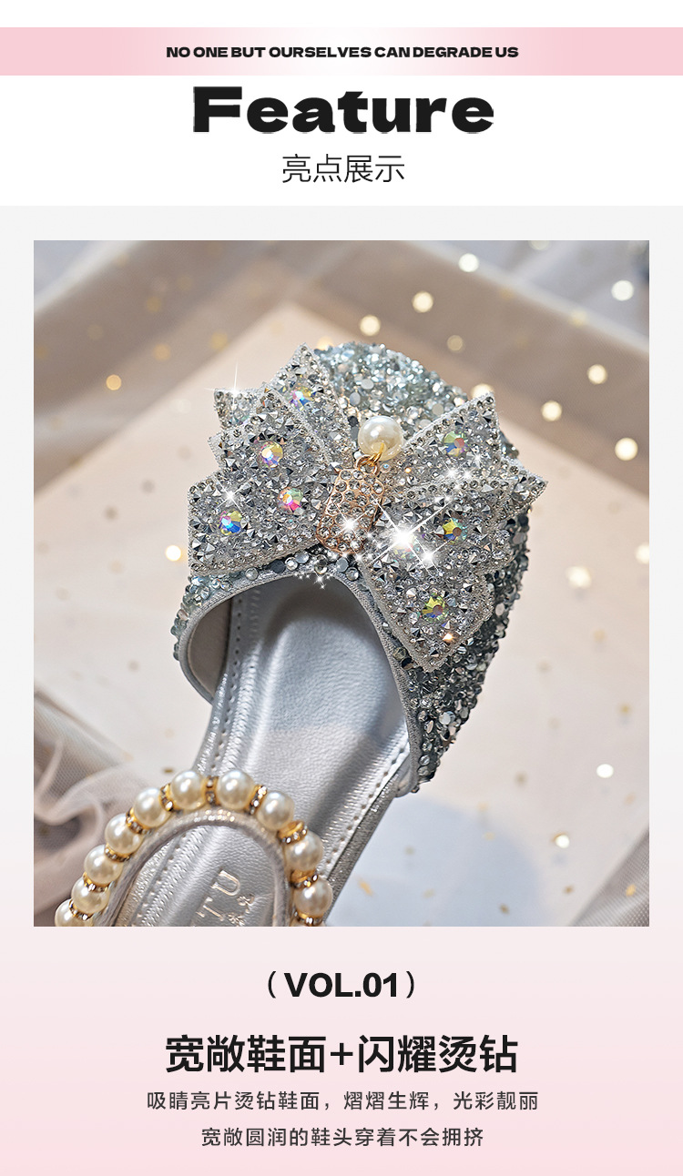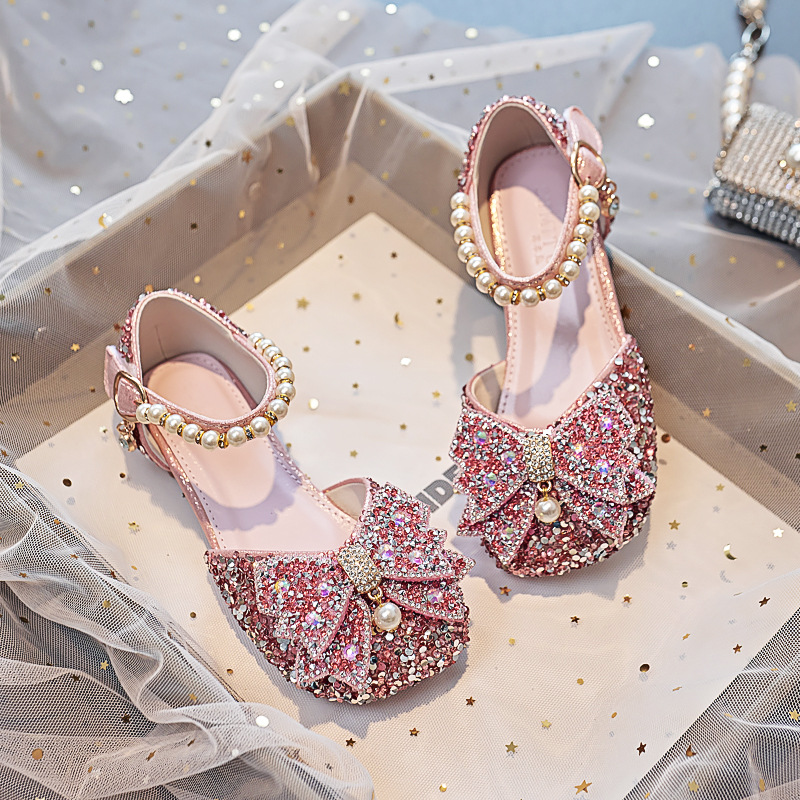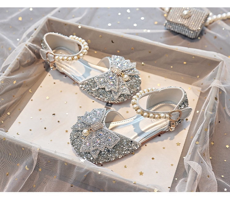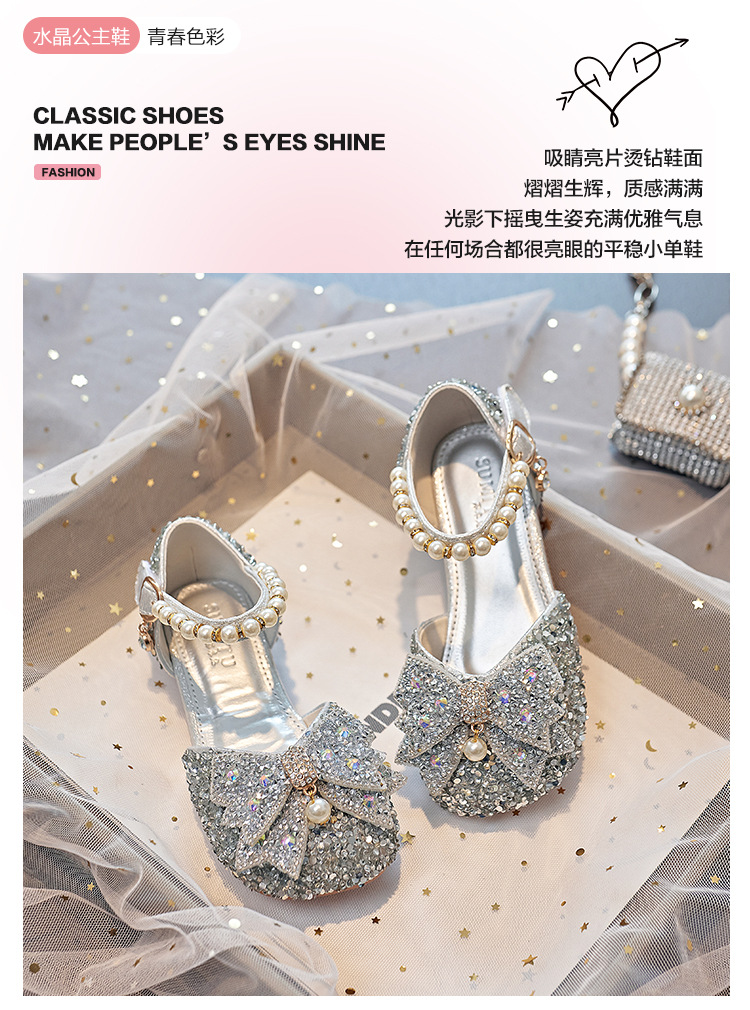 Детская обувь принцессы с кристаллами на плоской подошве, новая обувь для выступления ученицы начальной школы, одиночная обувь, модель, подиумная обувь для девочек
