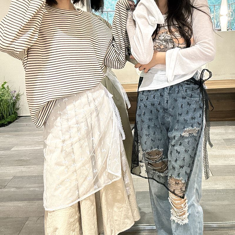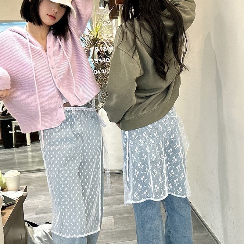 Японская кружевная юбка в горошек Весна новая цельная марлевая юбка Белый Дизайн Кружевной Фартук пердеть занавес крышка юбка