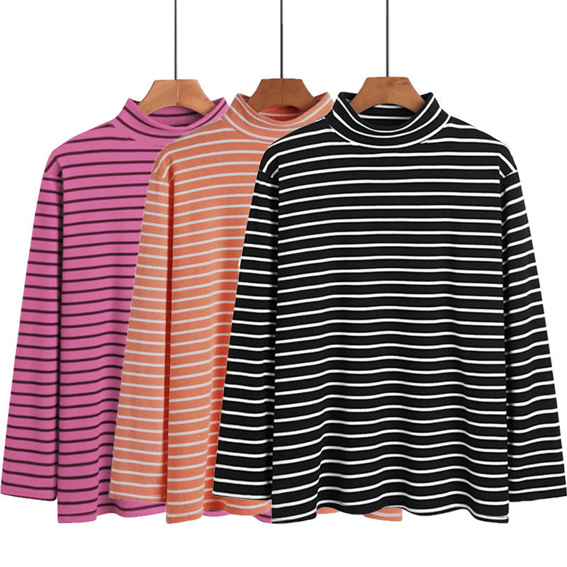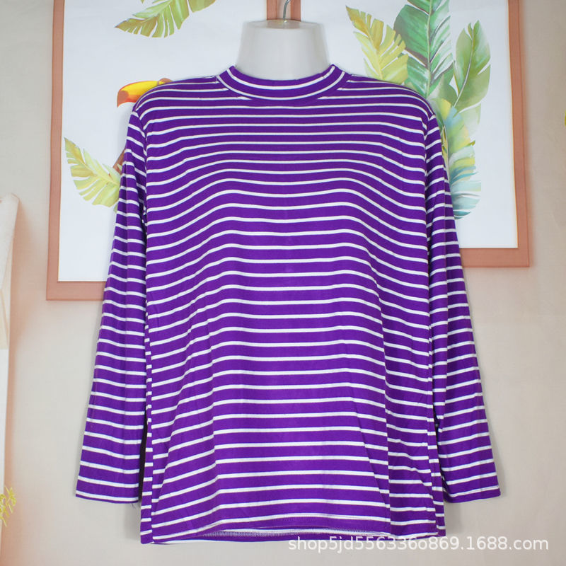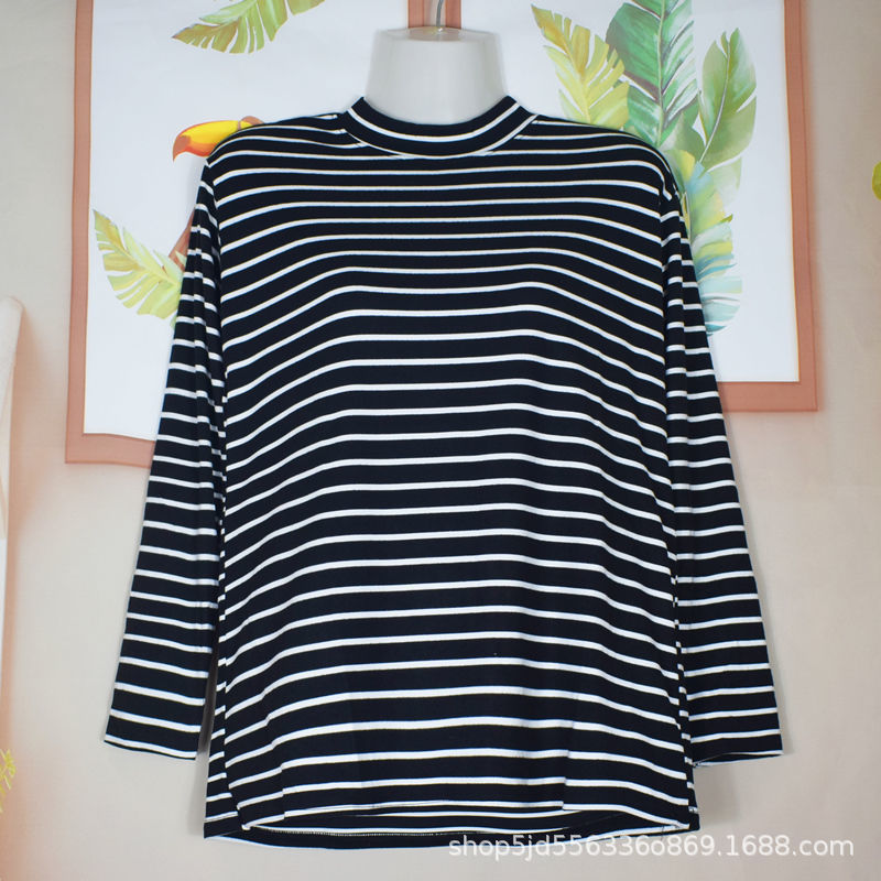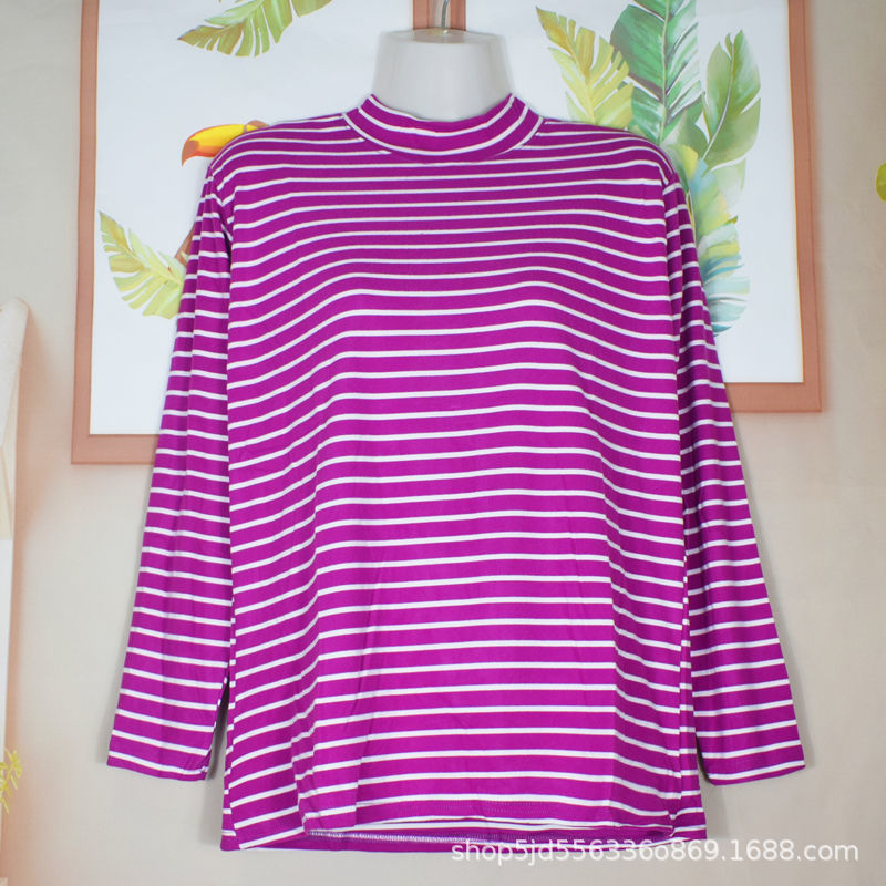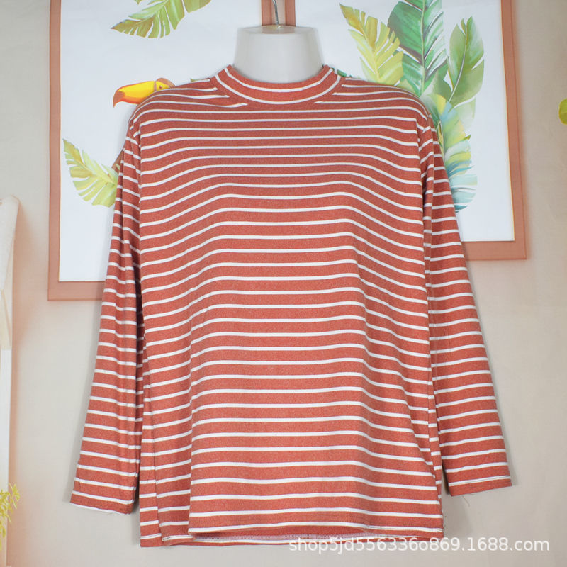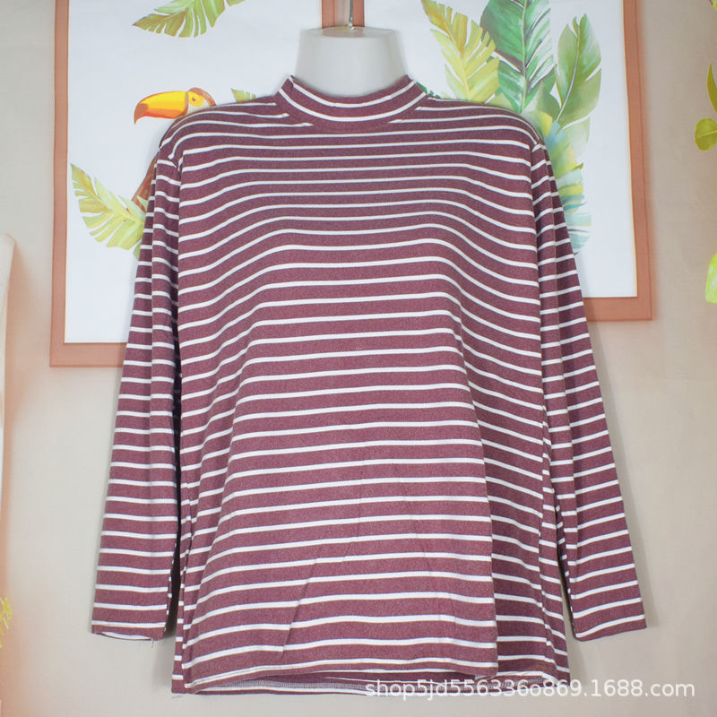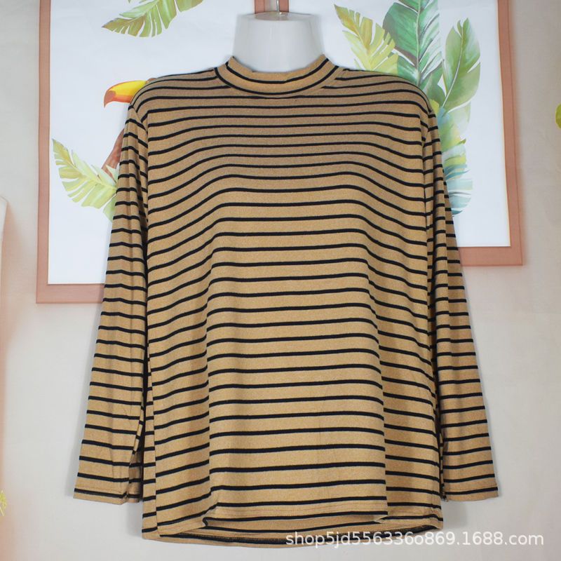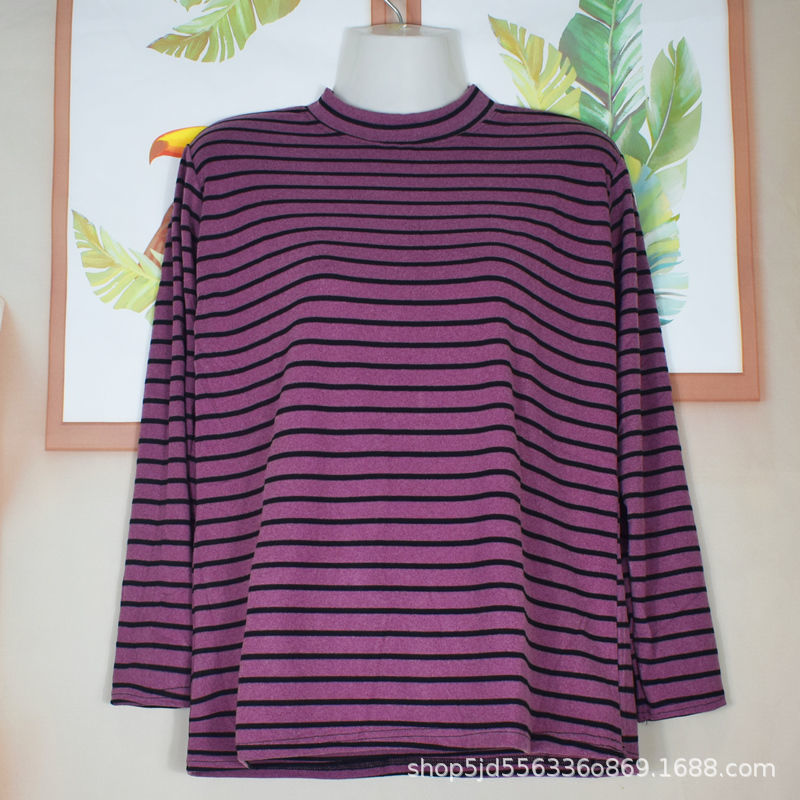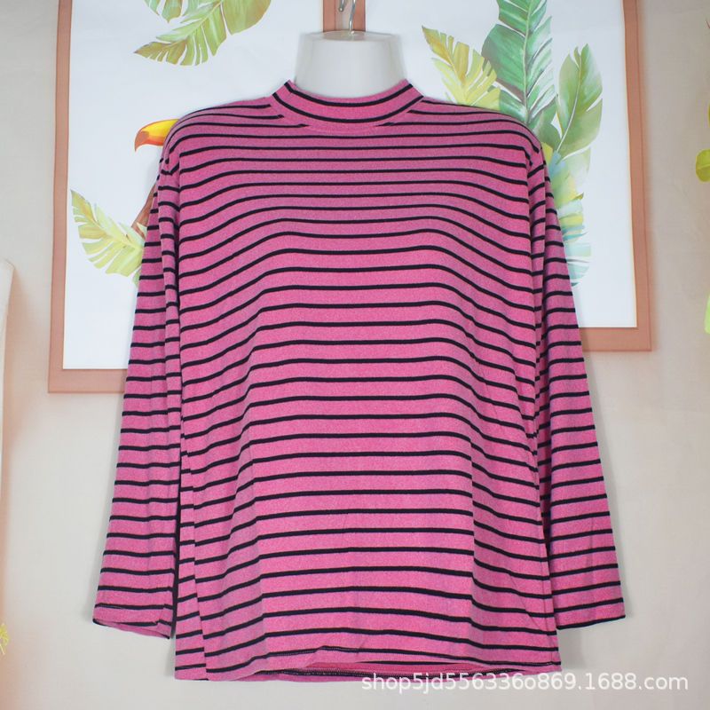 Женская одежда среднего и пожилого возраста, немецкая бархатная полосатая футболка с полуводолазкой и длинными рукавами, весенне-осенняя одежда больших размеров для мам, верхняя нижняя рубашка, партия
