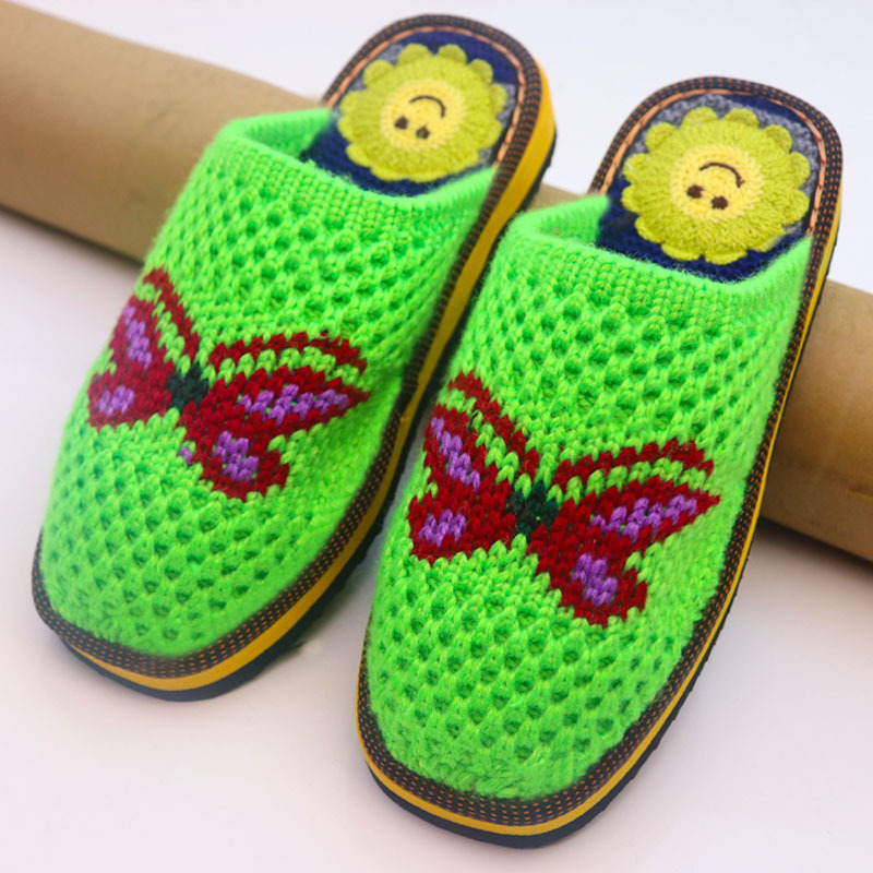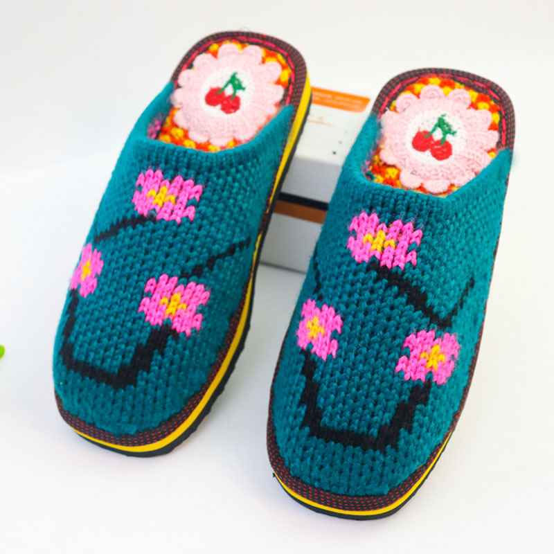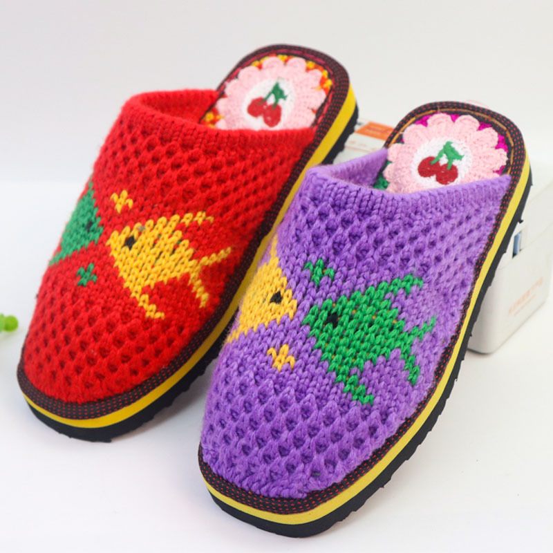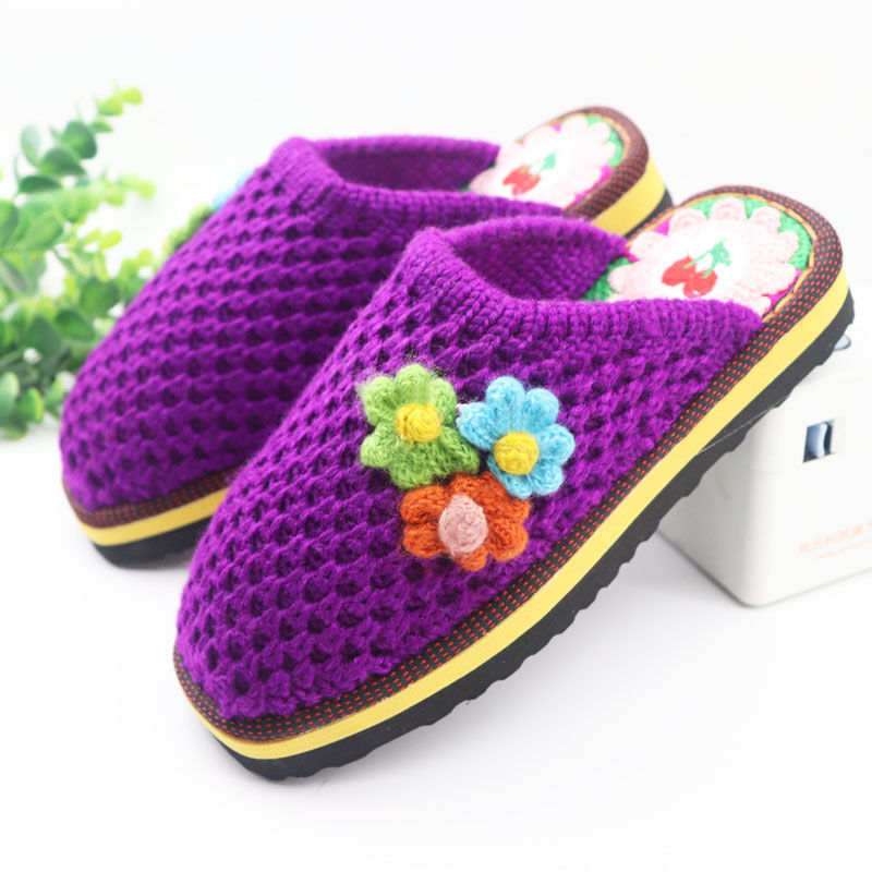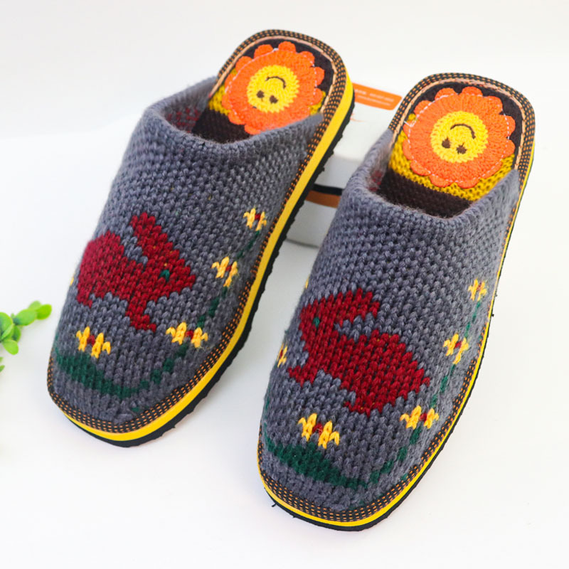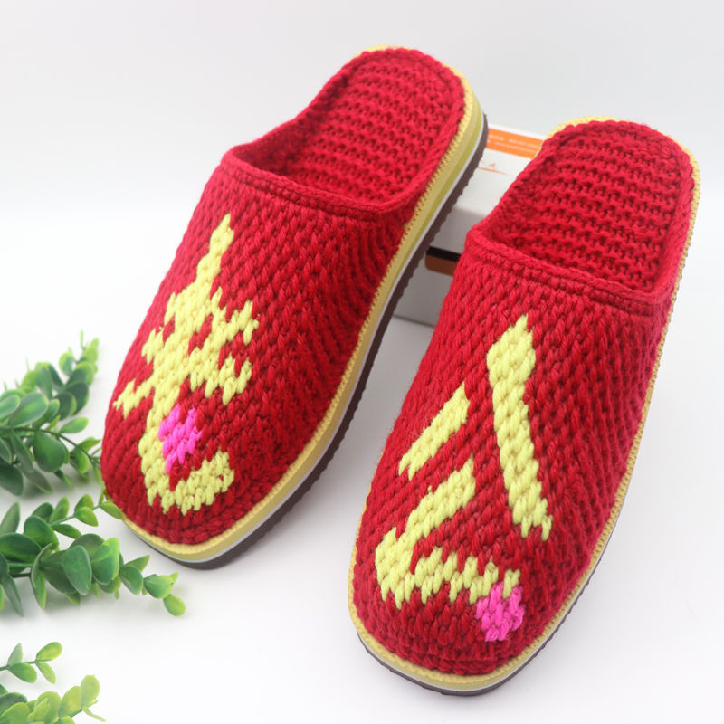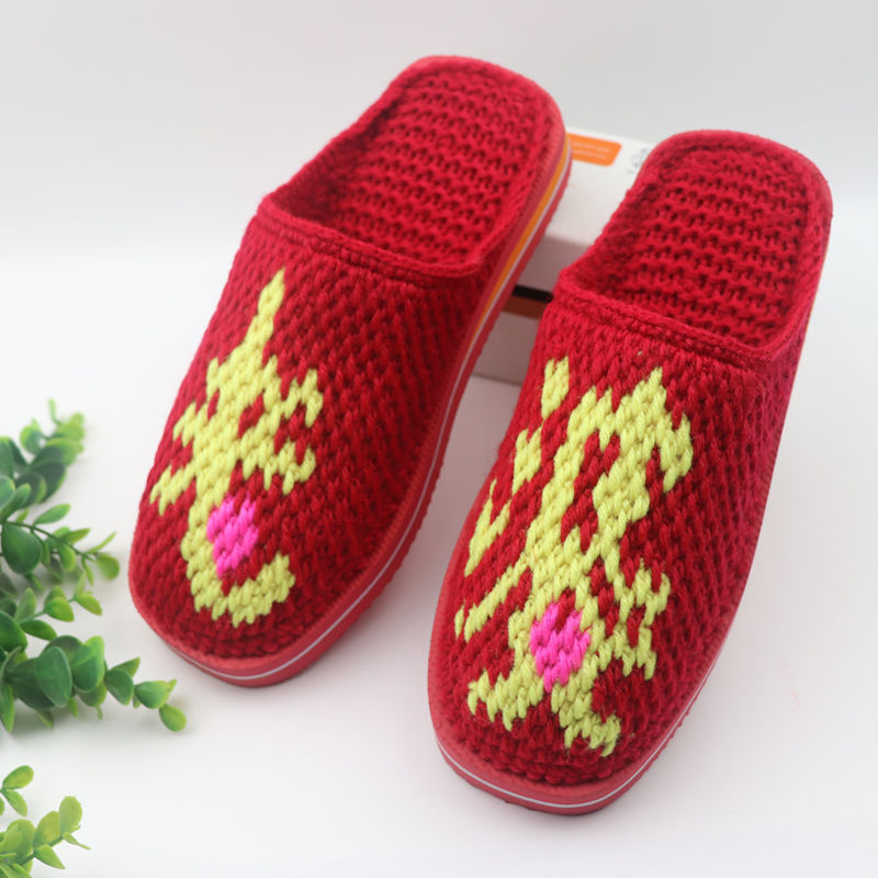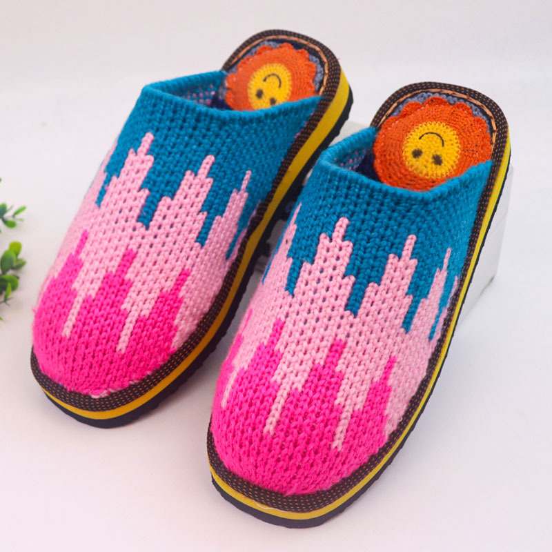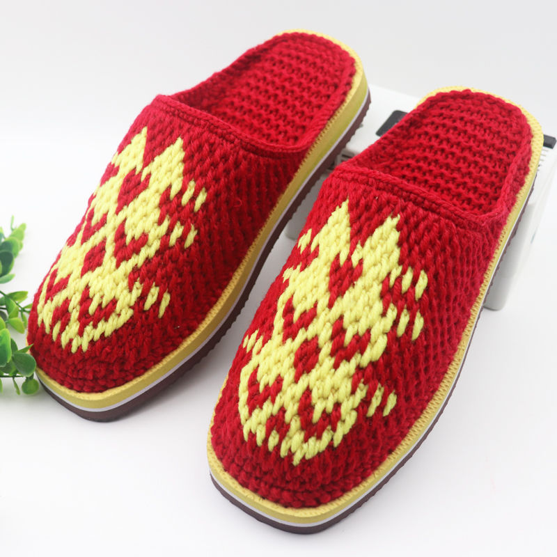 Шерстяная ручная крючок готовая обувь тонкая нить толстая нить тапочки чистая ручная вязаная вязаная шерстяная тапочки домашняя свадебная обувь 1