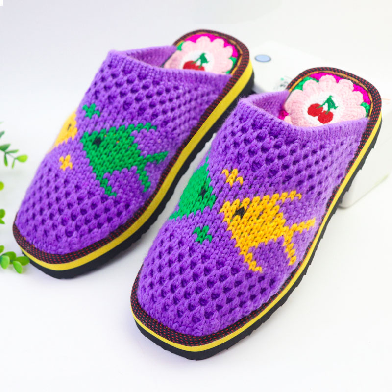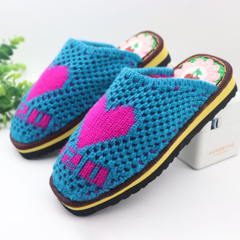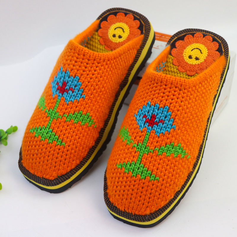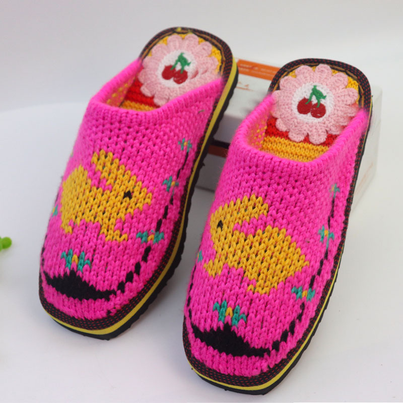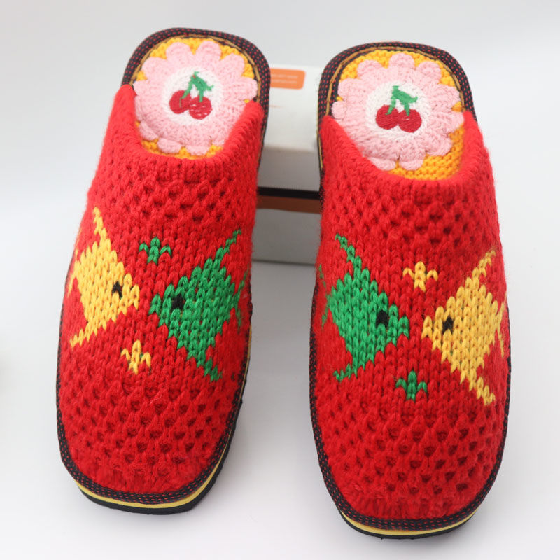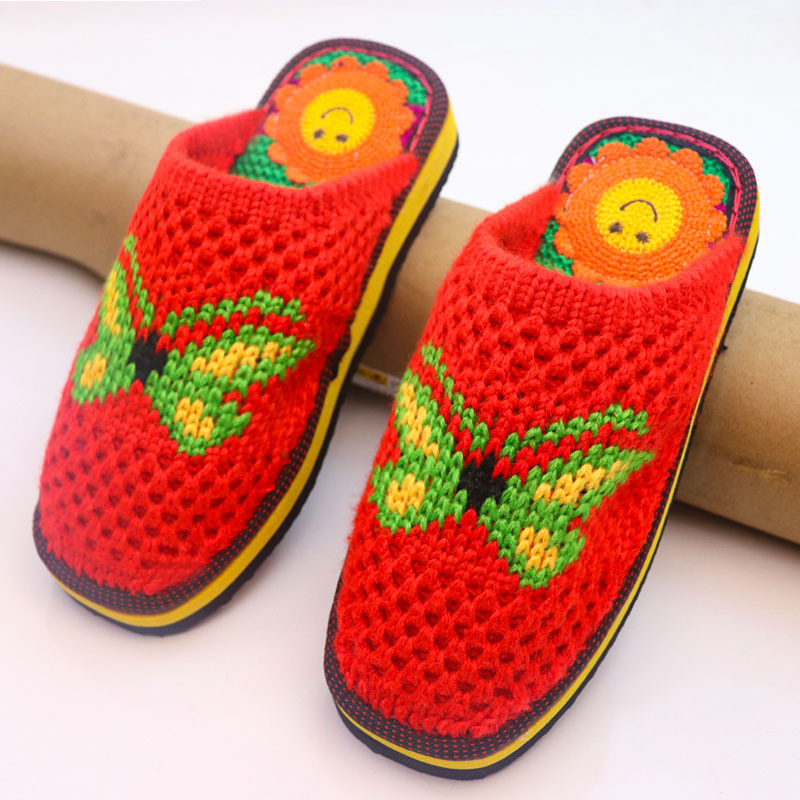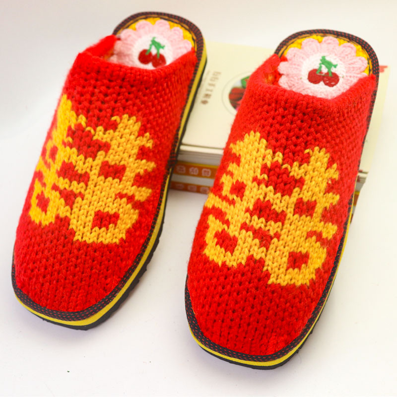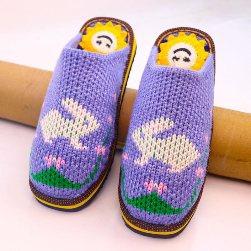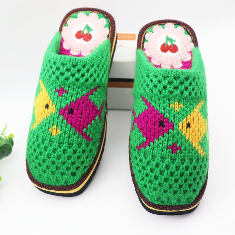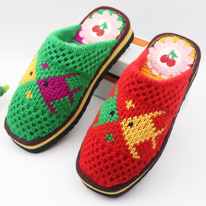Шерстяная ручная крючок готовая обувь тонкая нить толстая нить тапочки чистая ручная вязаная вязаная шерстяная тапочки домашняя свадебная обувь 1