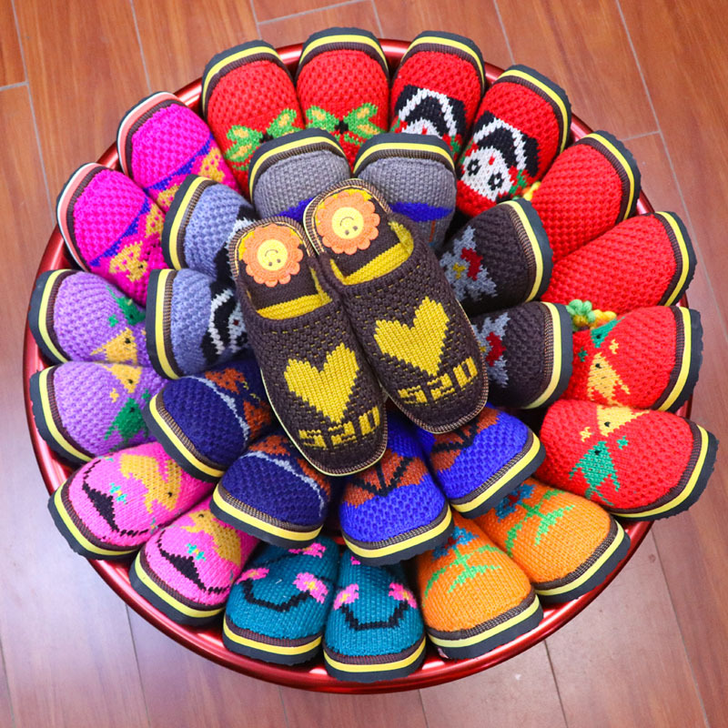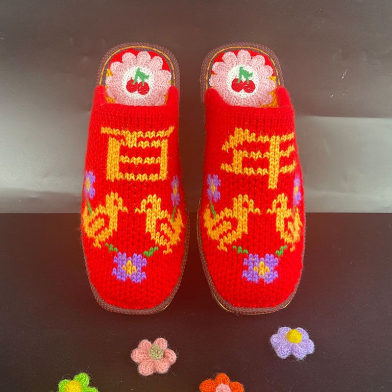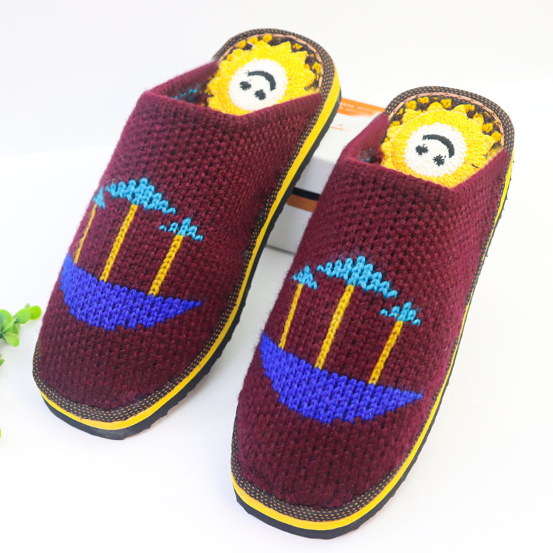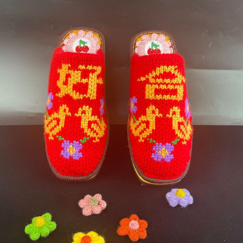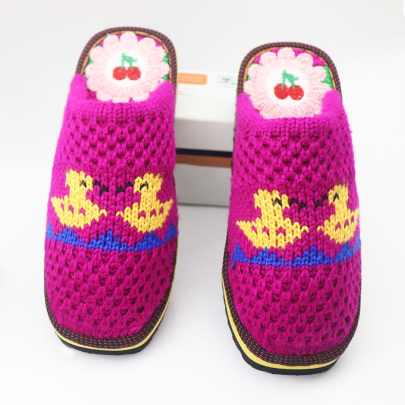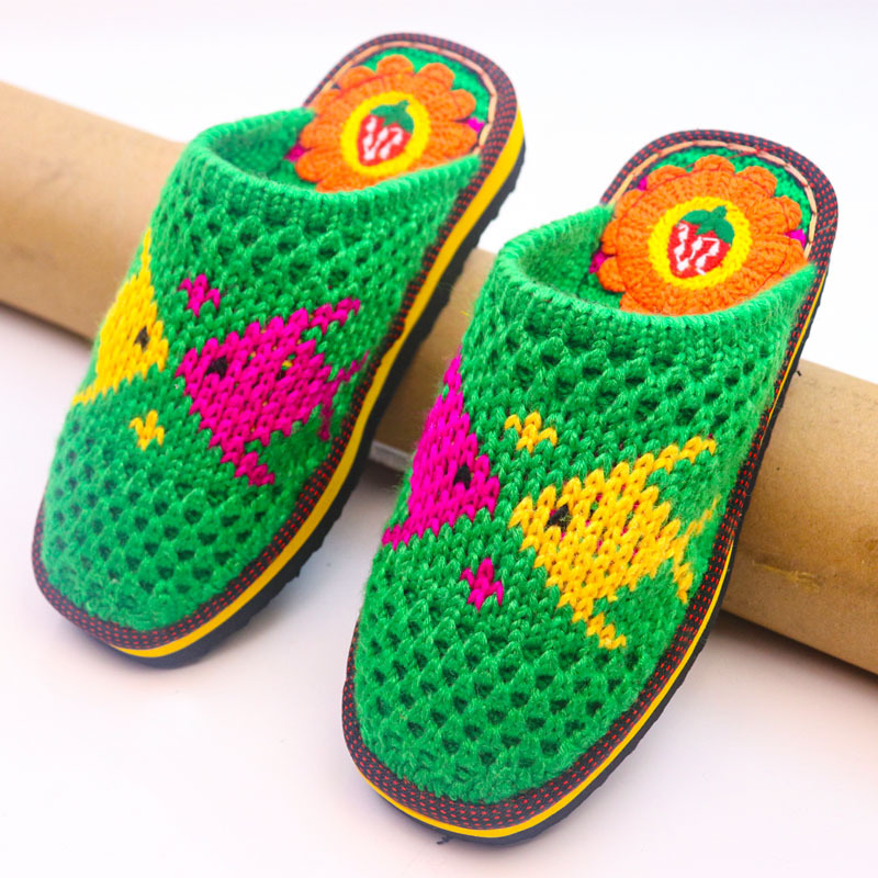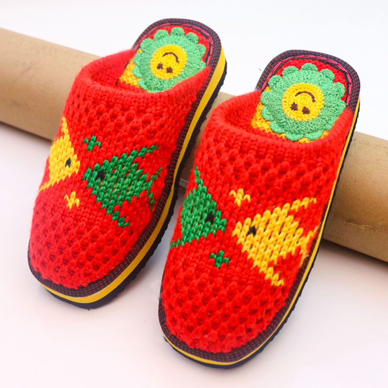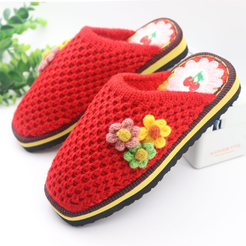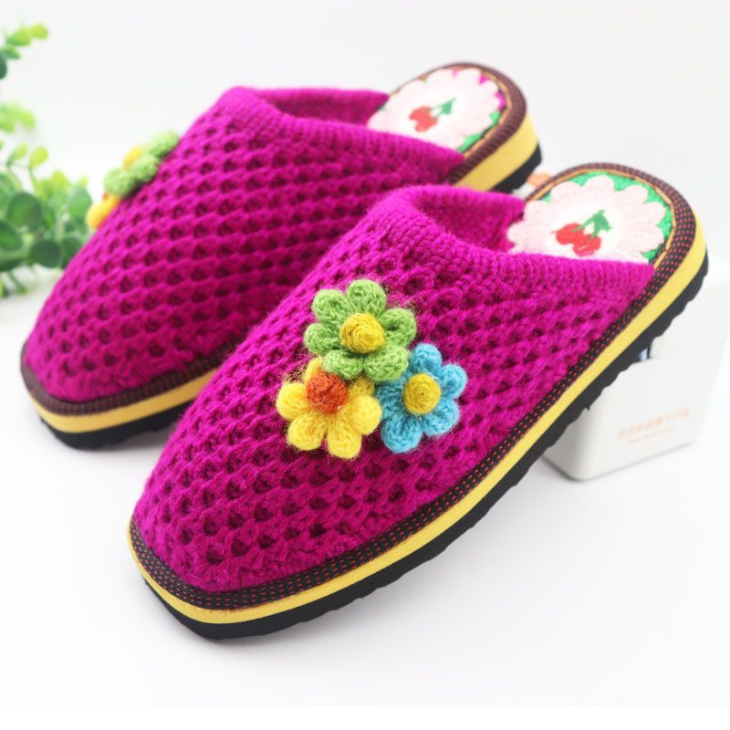 Шерстяная ручная крючок готовая обувь тонкая нить толстая нить тапочки чистая ручная вязаная вязаная шерстяная тапочки домашняя свадебная обувь 1
