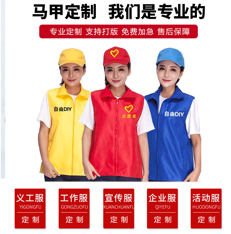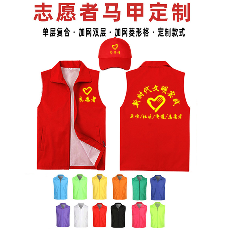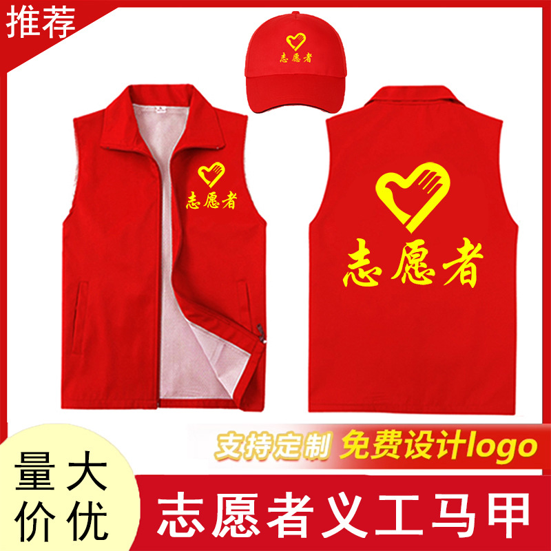 Вечеринка, красный волонтерский жилет с принтом логотипа, шляпа, рабочая одежда, рекламная рубашка, детский жилет-волонтер для публики, оптовая продажа