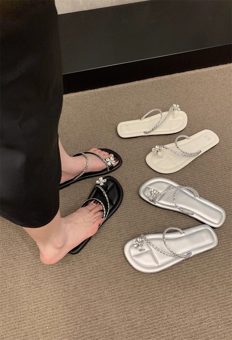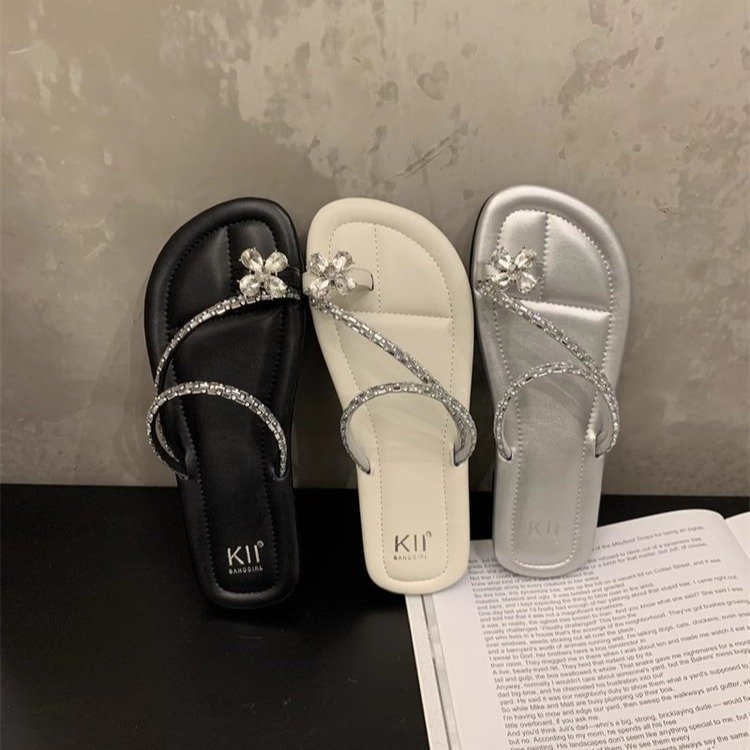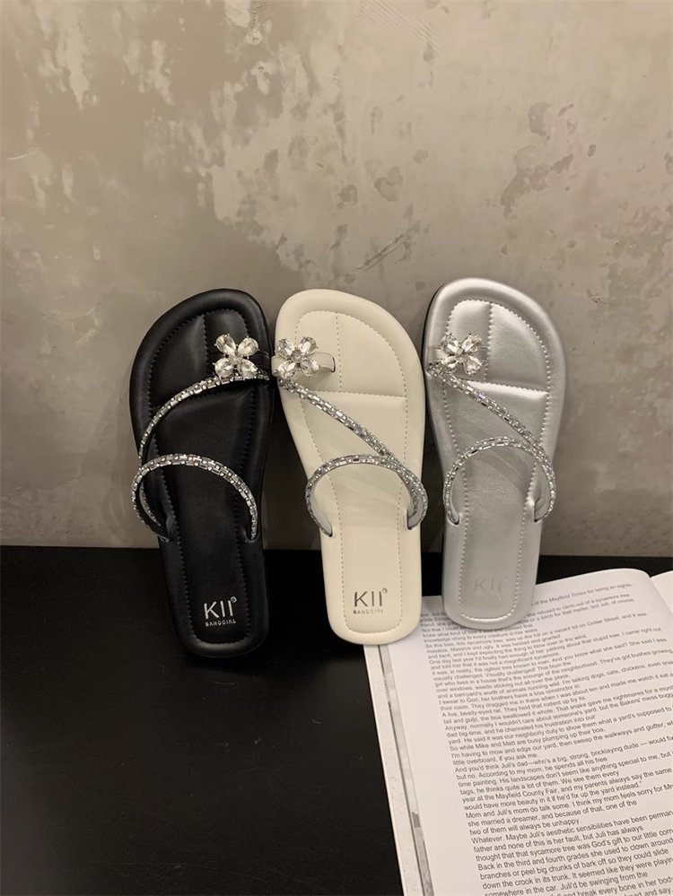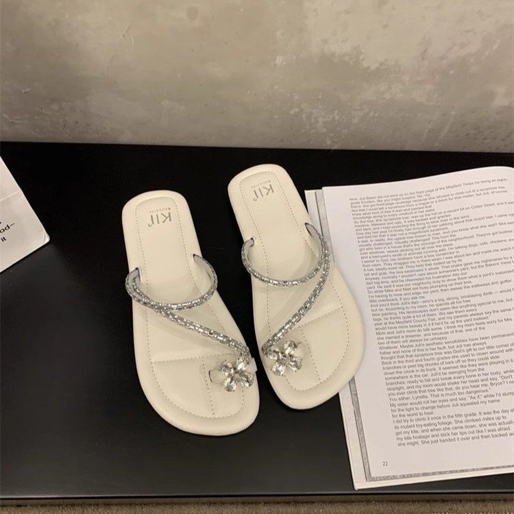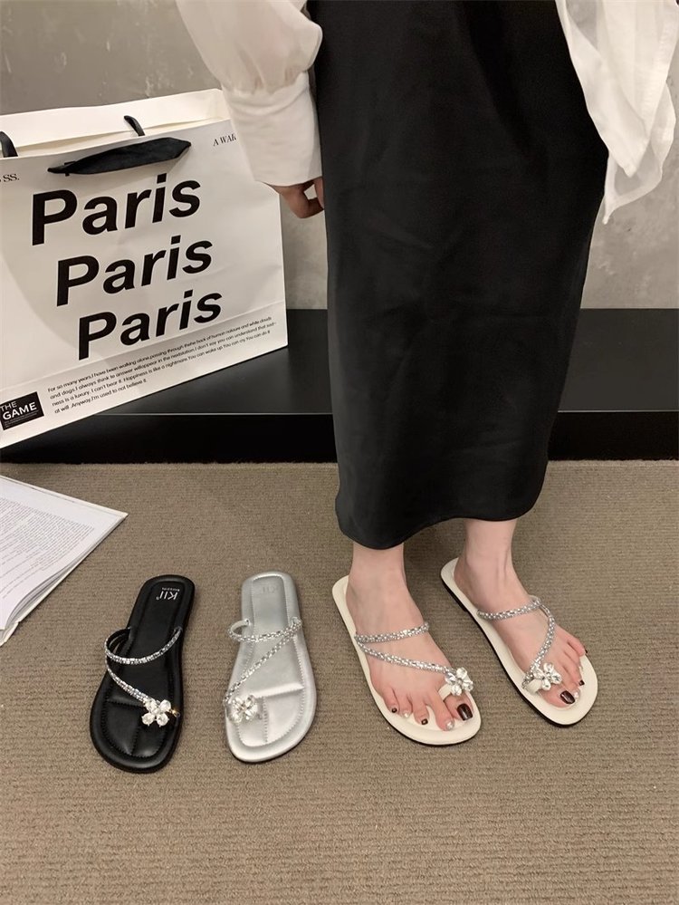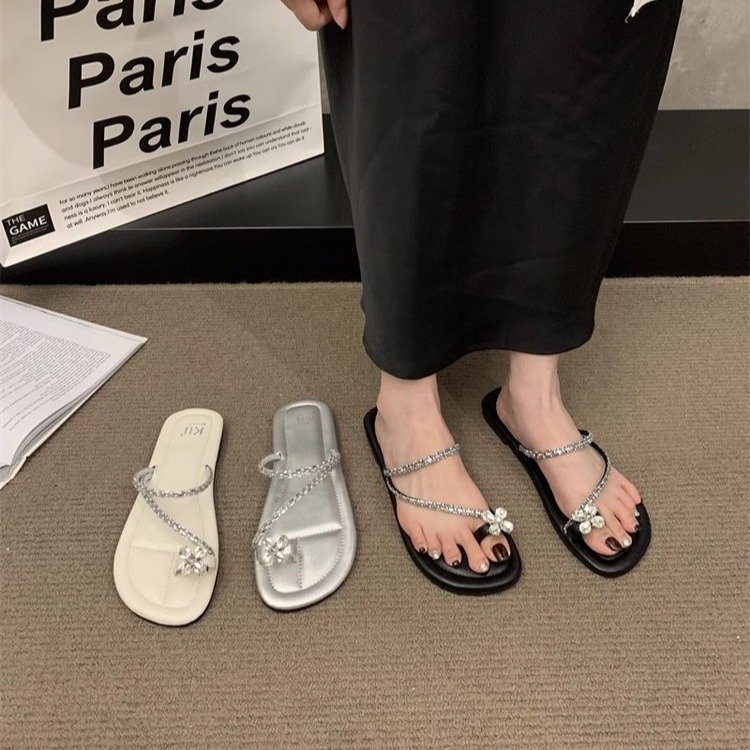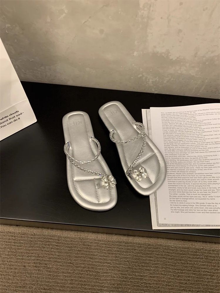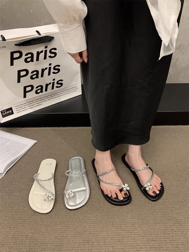 Плоский французский стиль носок тапочки Фея обувь 2024 новый лето мягкое дно с юбкой горный хрусталь сандалии