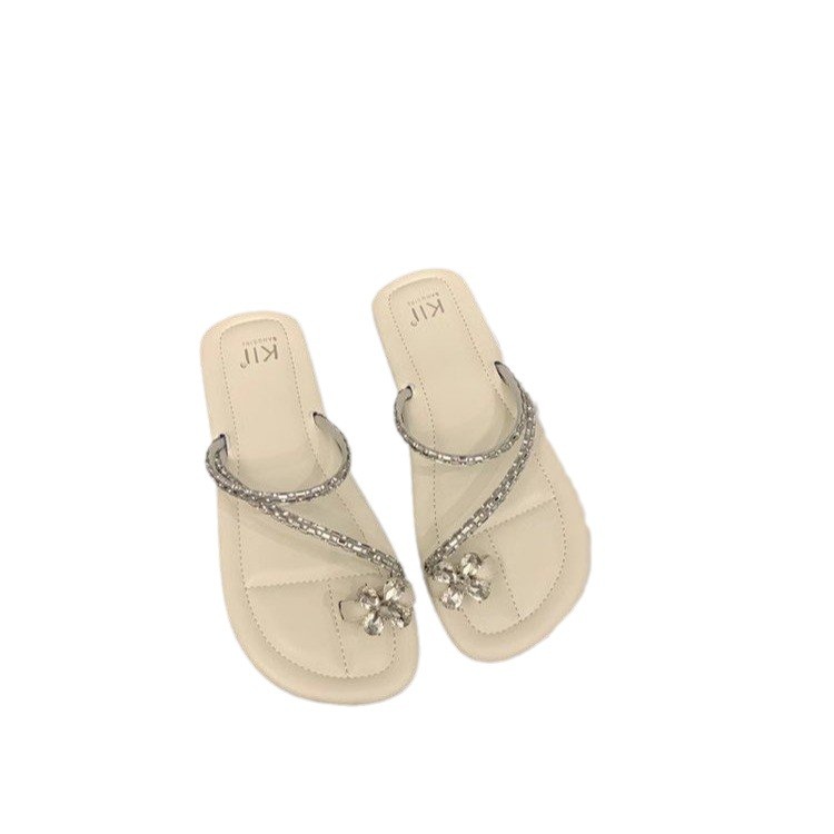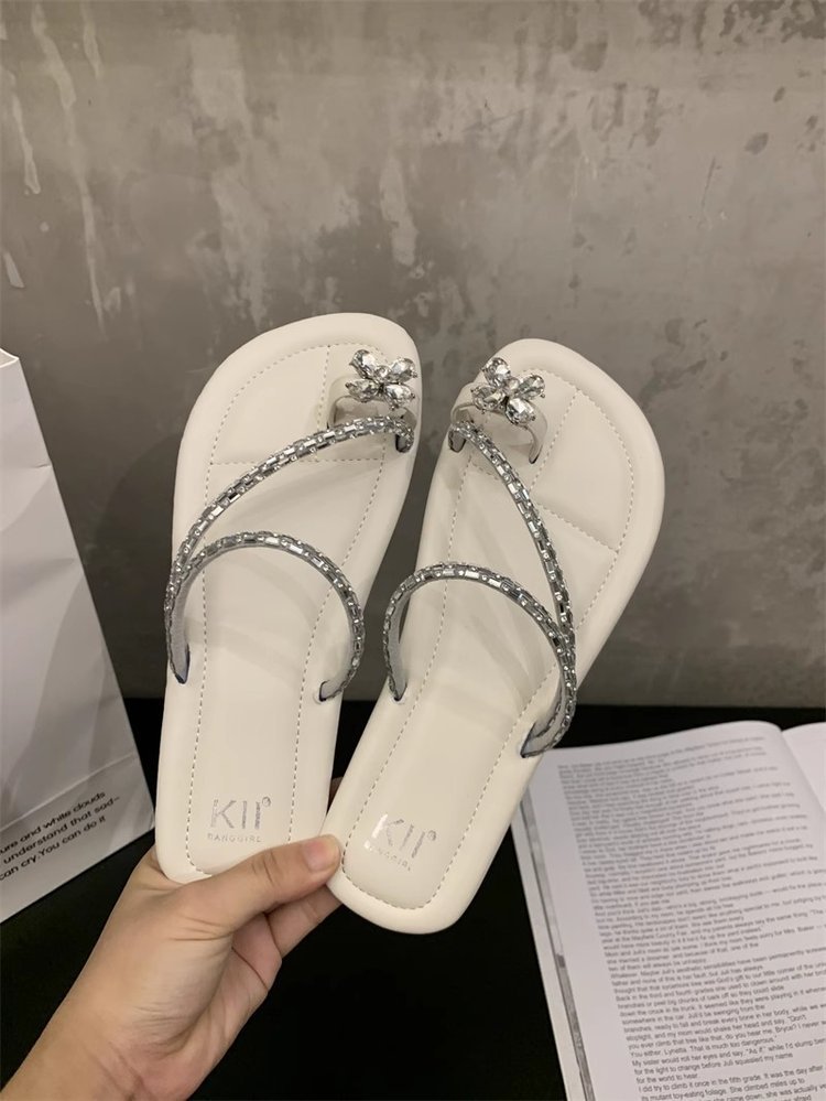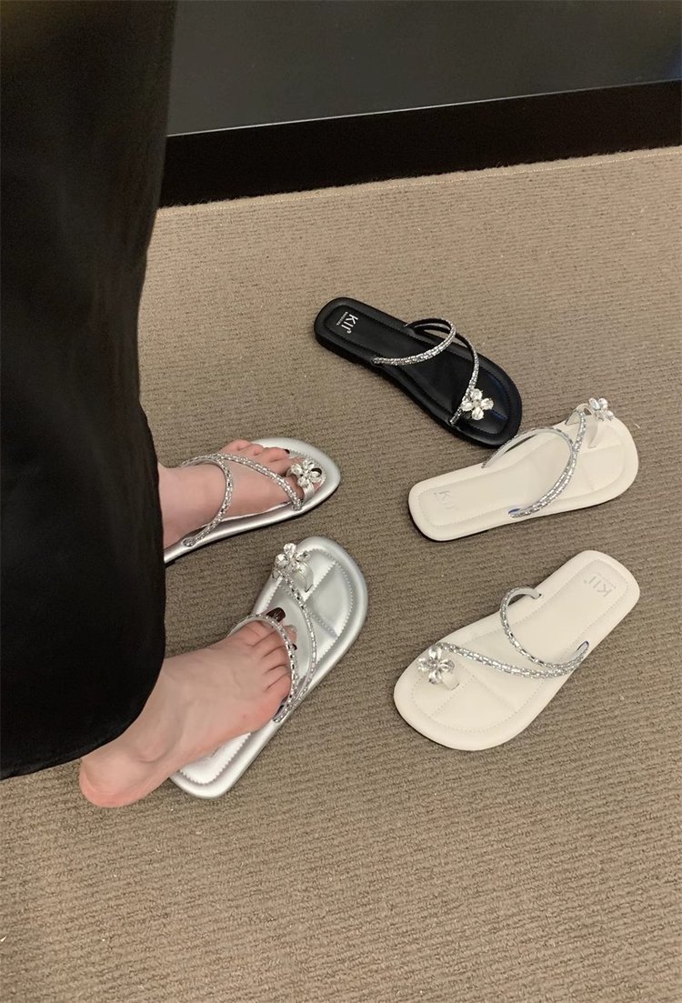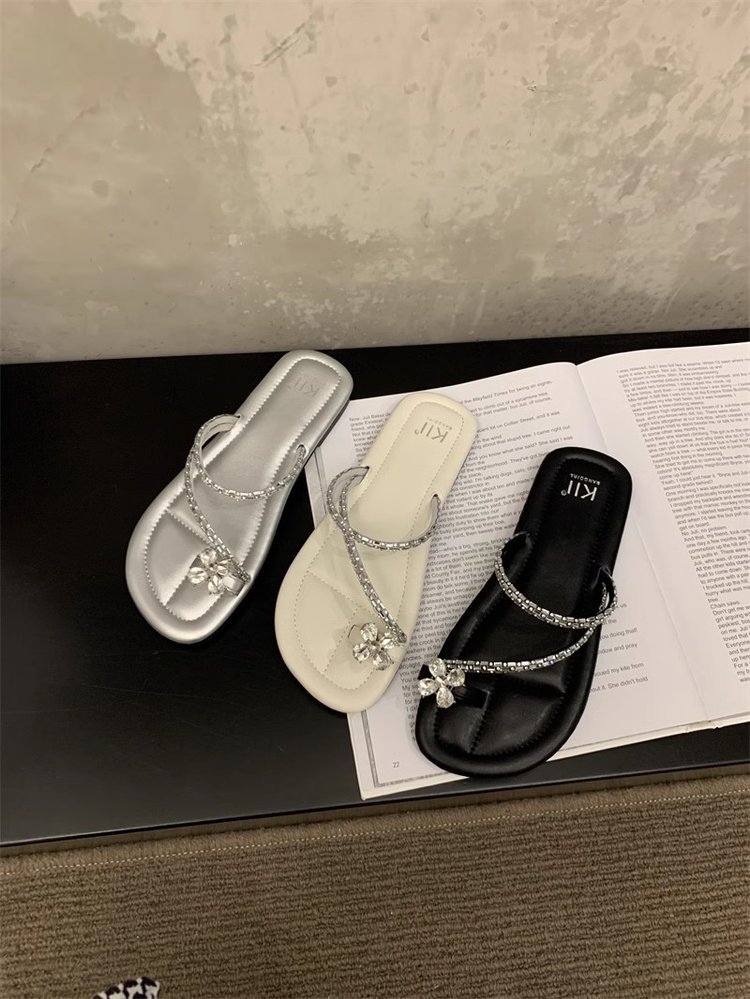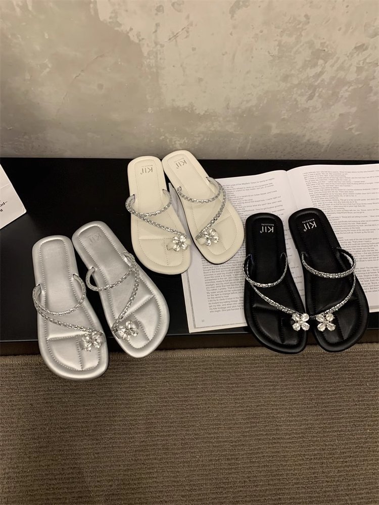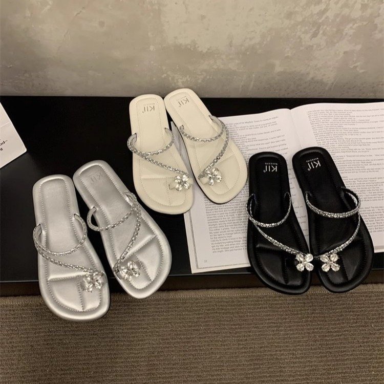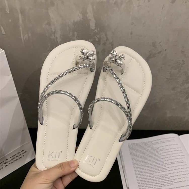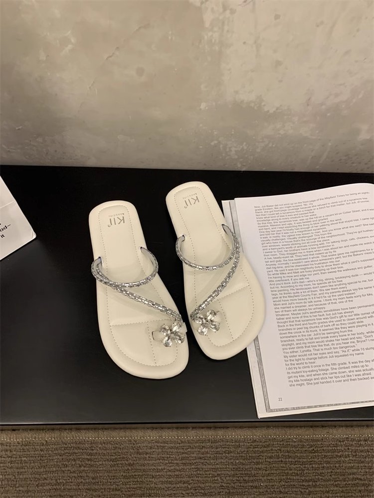 Плоский французский стиль носок тапочки Фея обувь 2024 новый лето мягкое дно с юбкой горный хрусталь сандалии