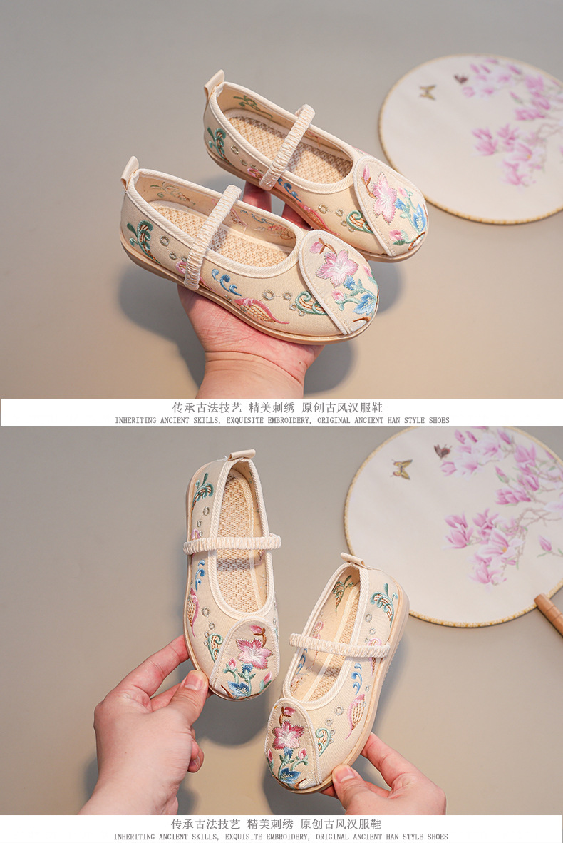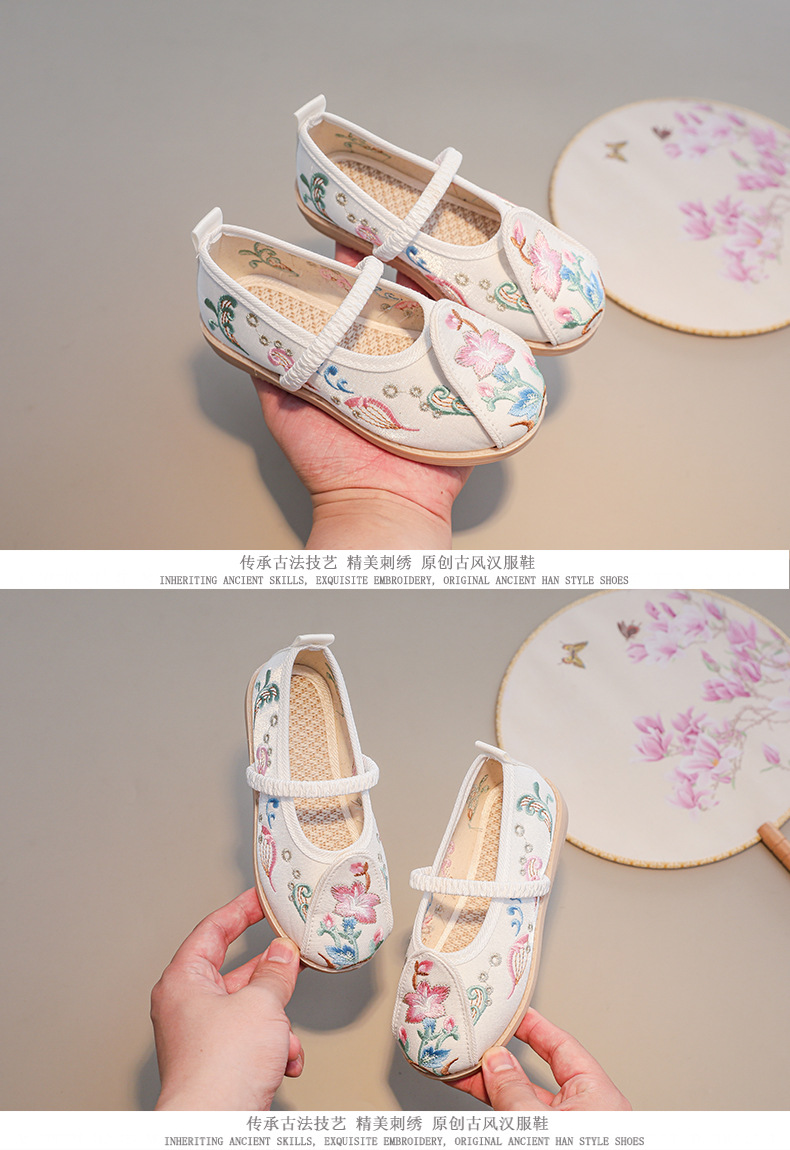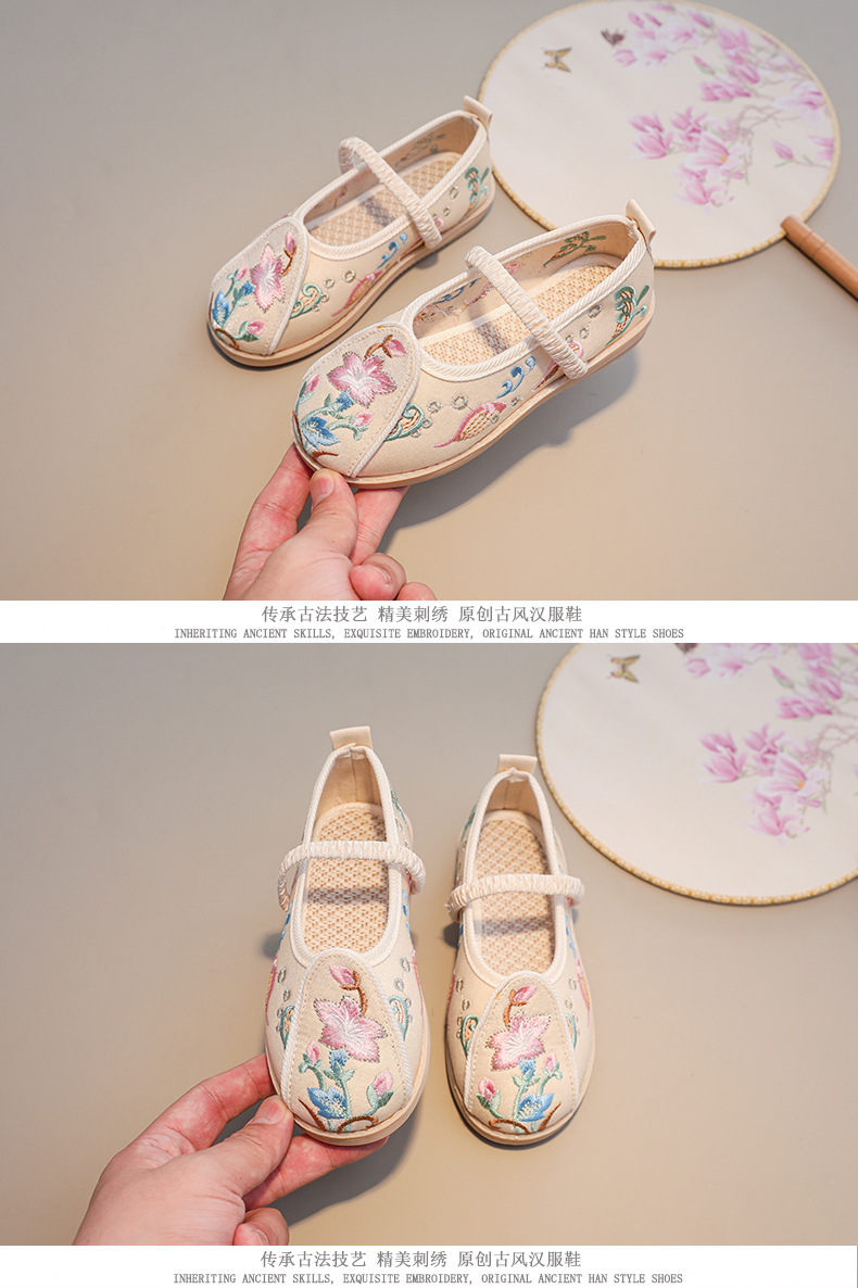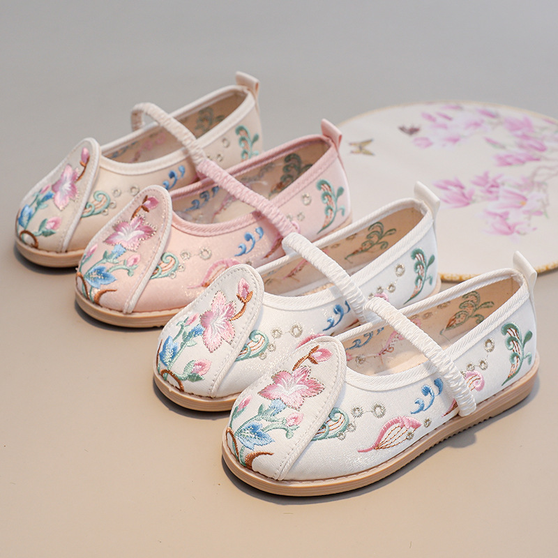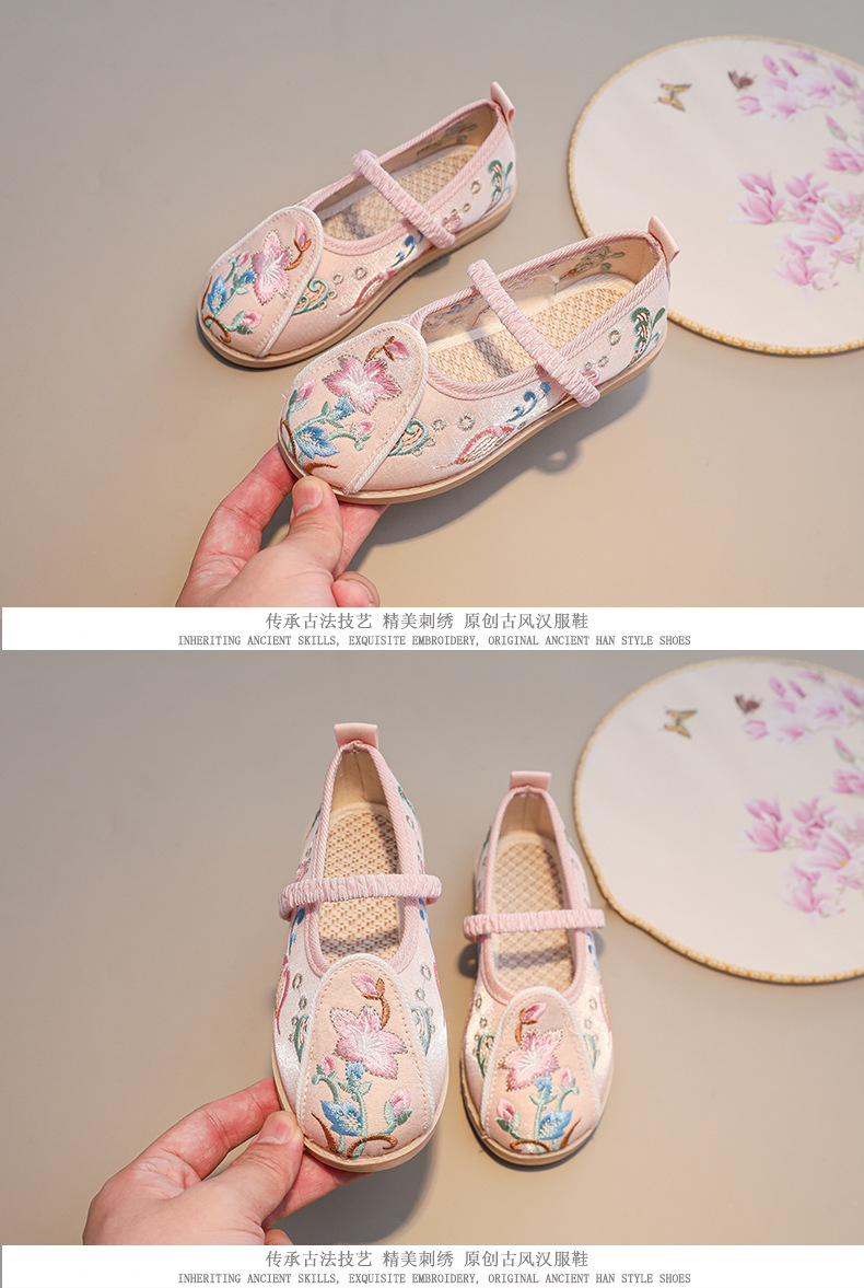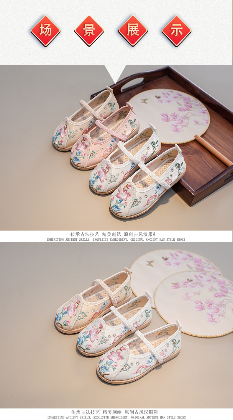 Обувь для девочек Hanfu, старинный костюм, детская обувь с вышивкой, этническая старая Пекинская ткань для маленькой принцессы, Тканевая обувь в национальном стиле, жилет, юбка, подходящая обувь