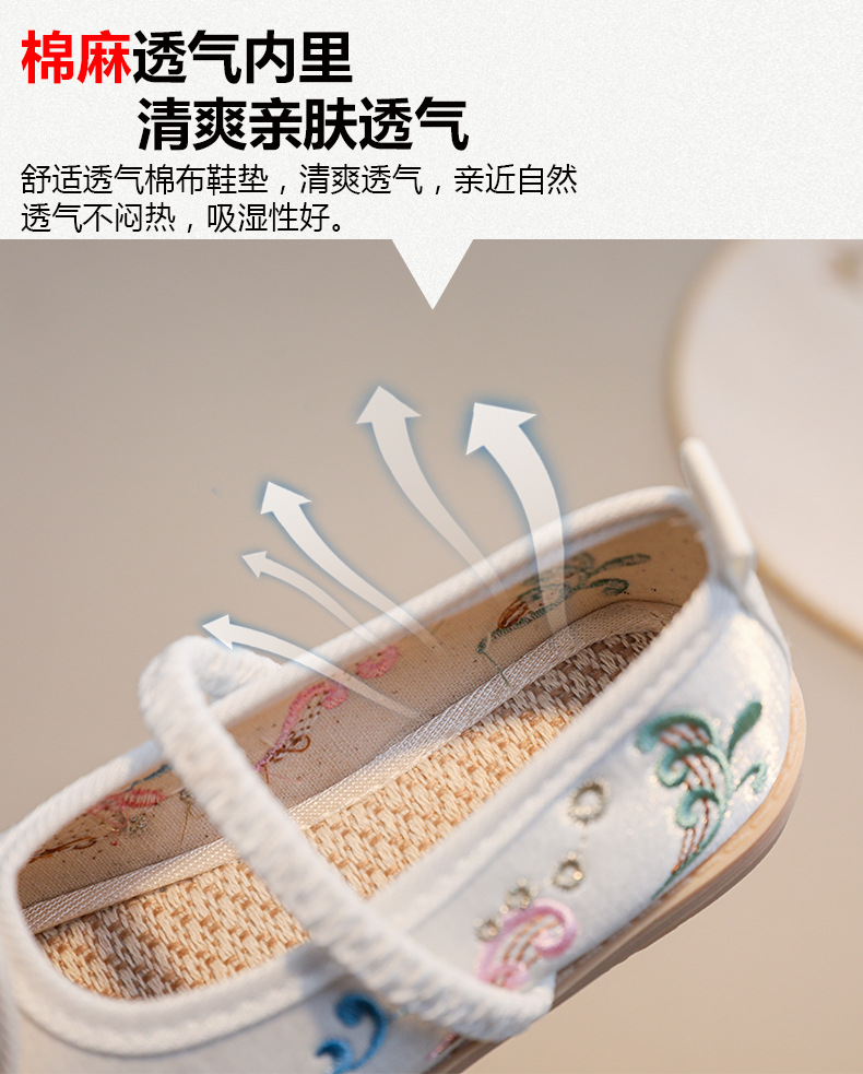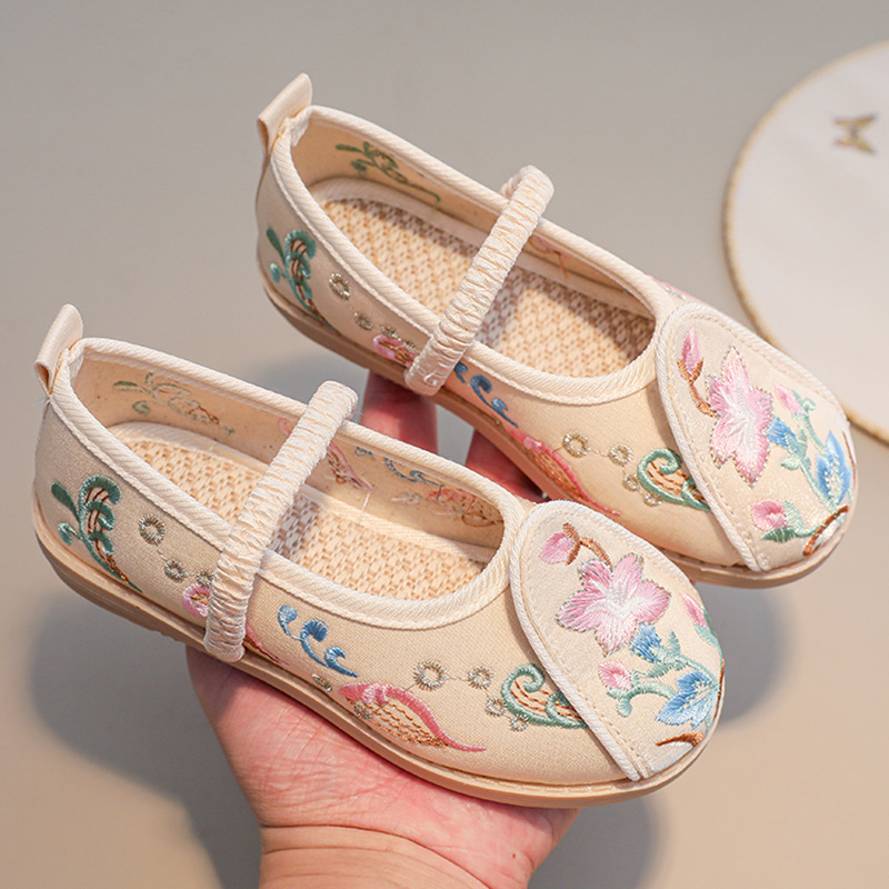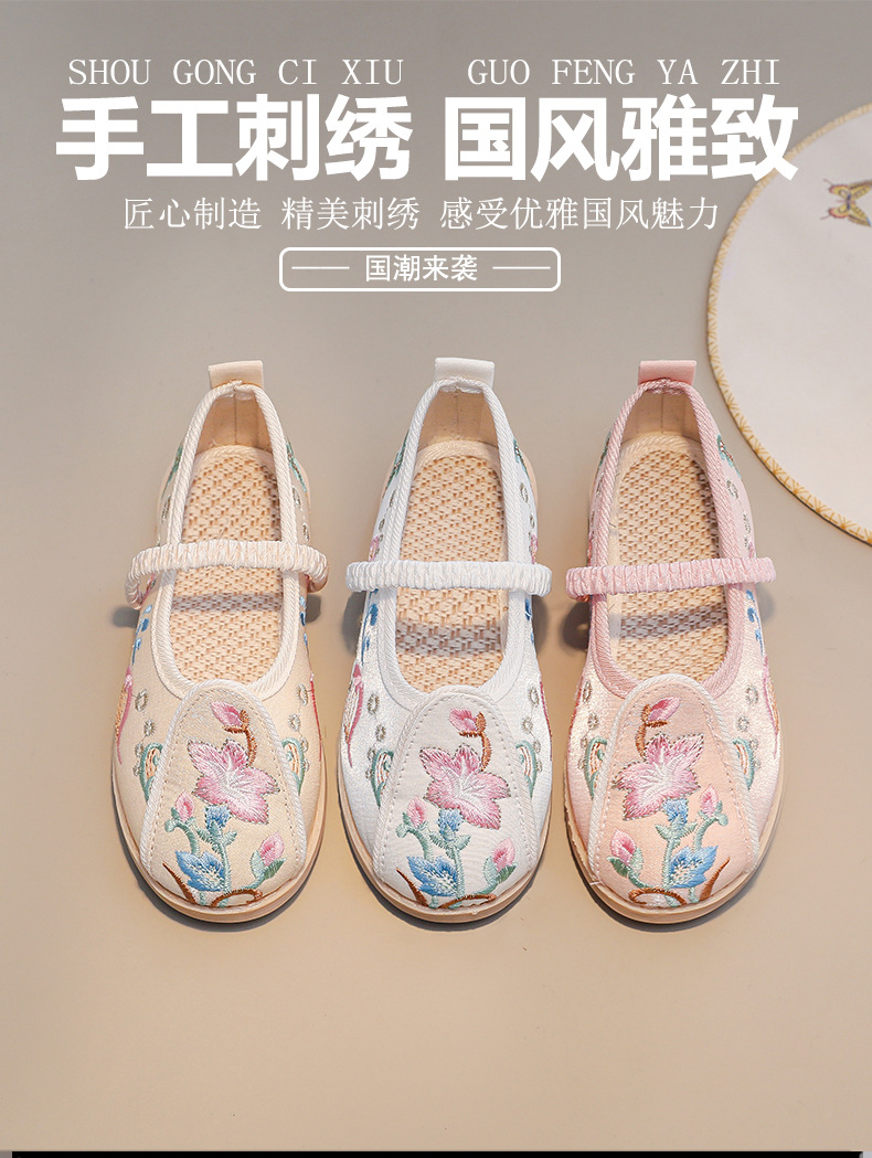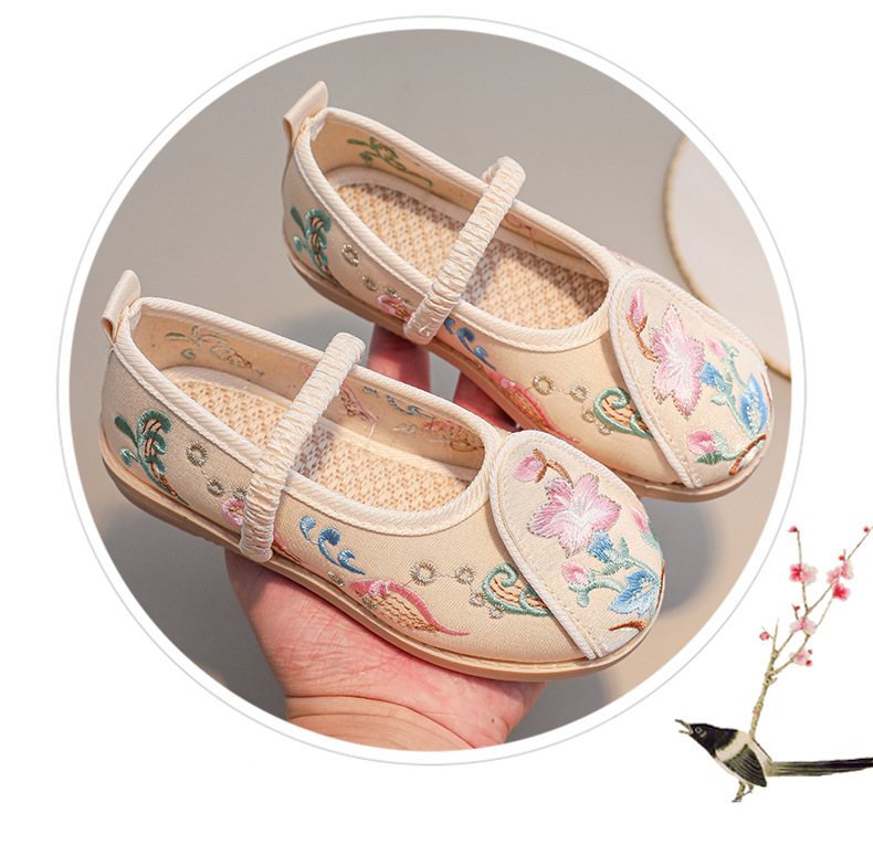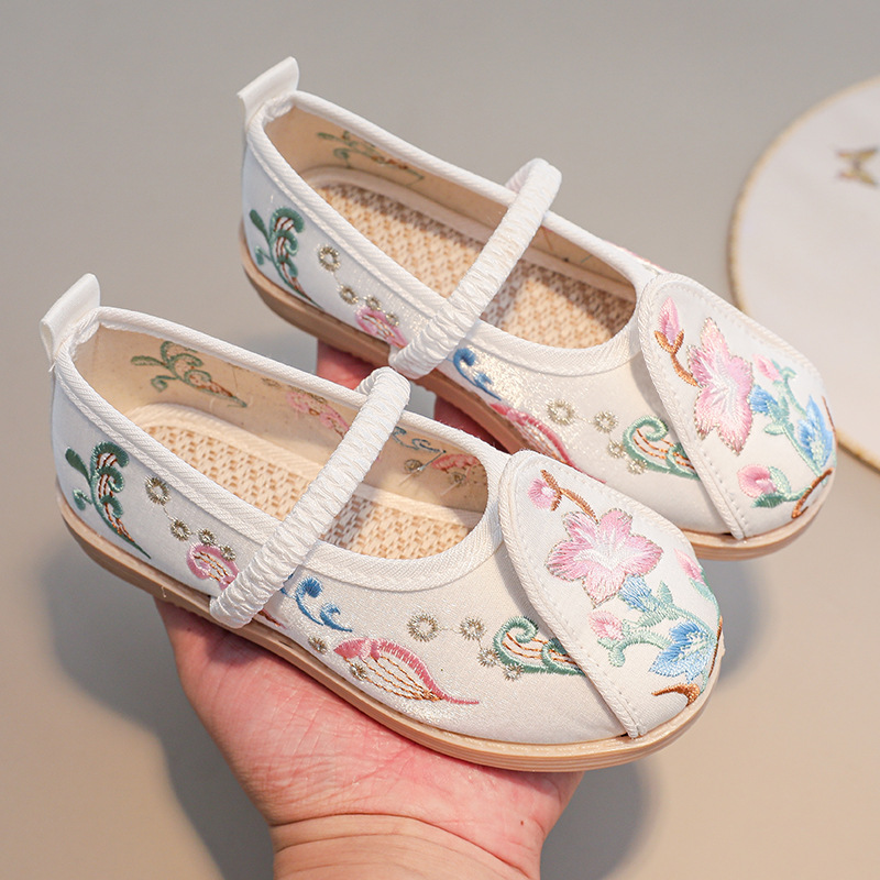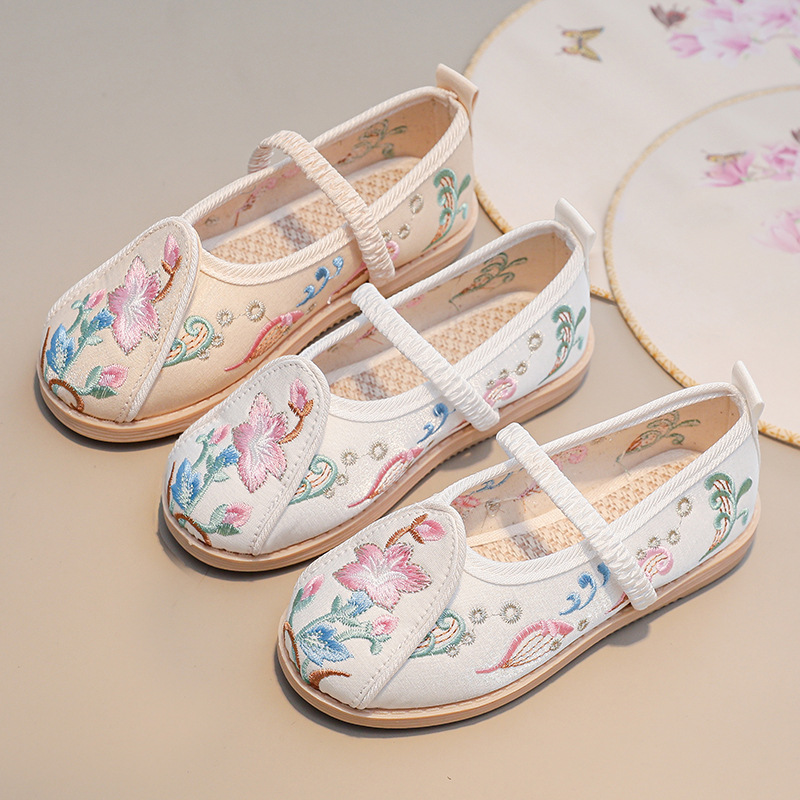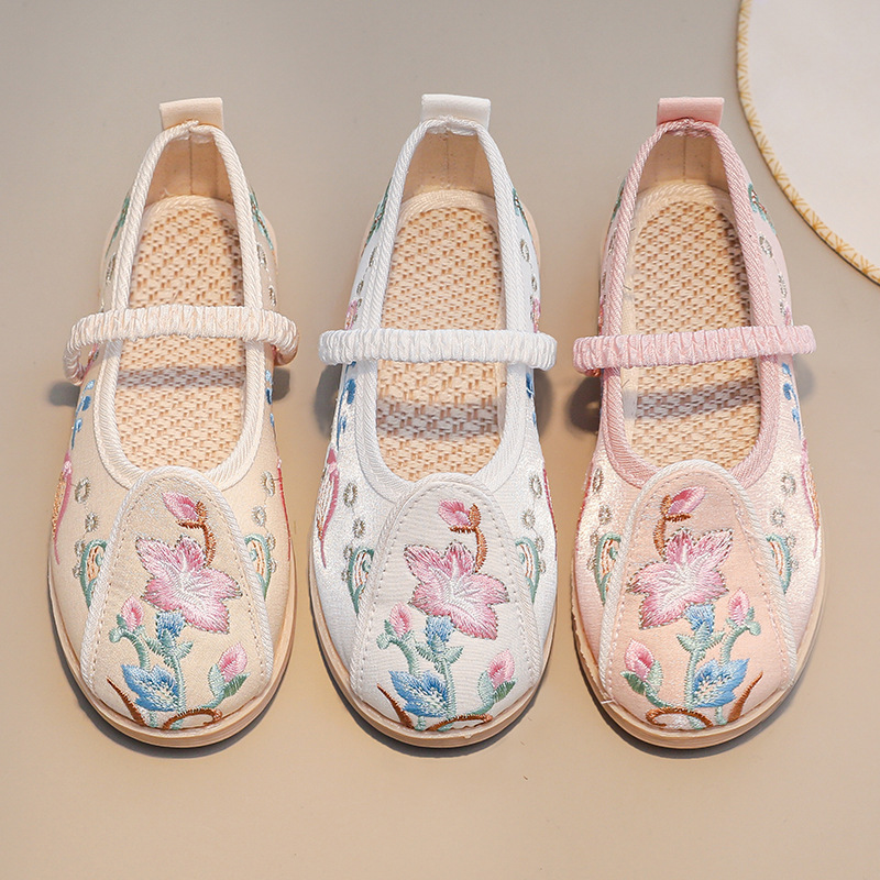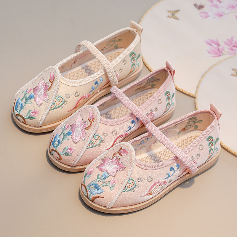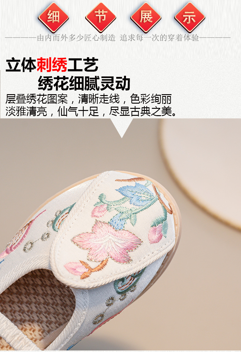 Обувь для девочек Hanfu, старинный костюм, детская обувь с вышивкой, этническая старая Пекинская ткань для маленькой принцессы, Тканевая обувь в национальном стиле, жилет, юбка, подходящая обувь