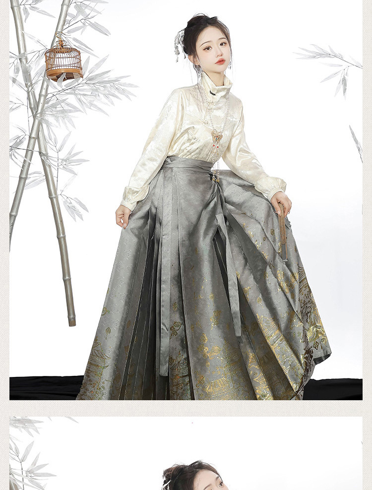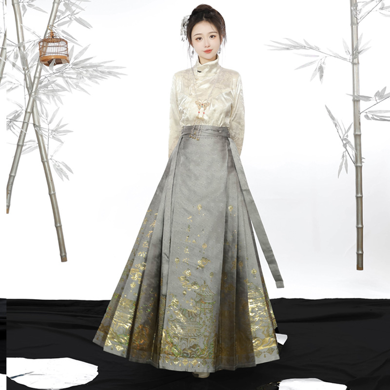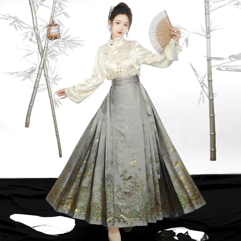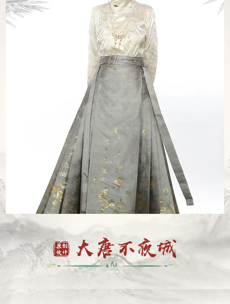 Новая женская юбка в национальном стиле «Луозжу Минг» с вышивкой «Лошадиная голова» [Ночной базар династии Тан], улучшенная версия для повседневной носки весной и летом