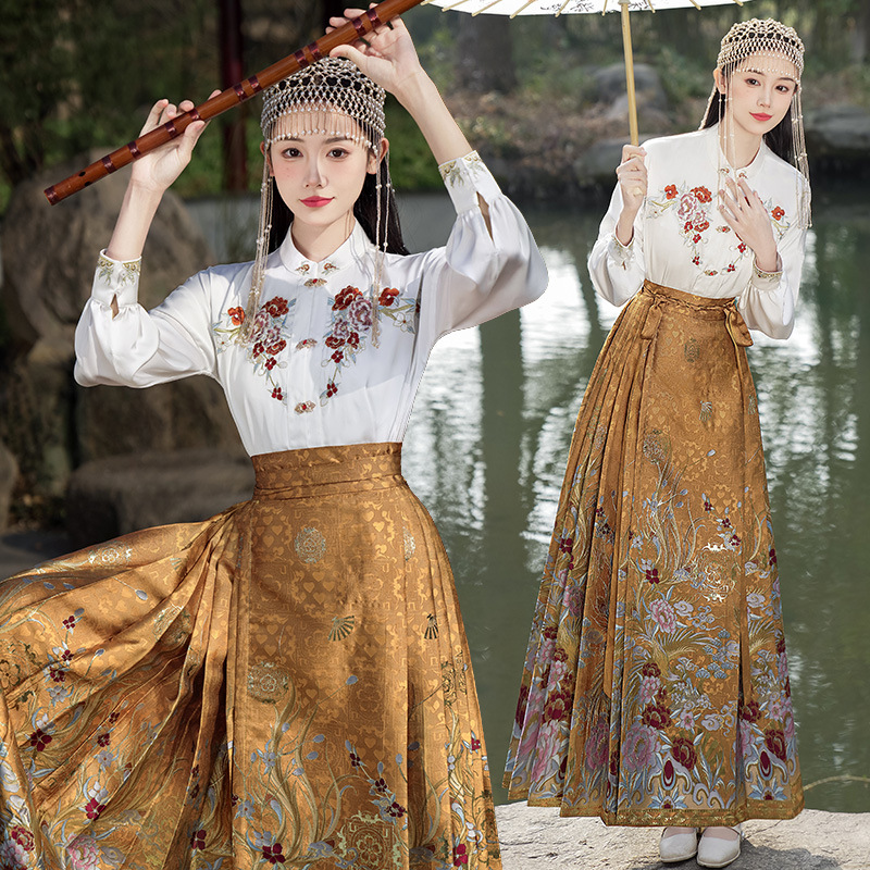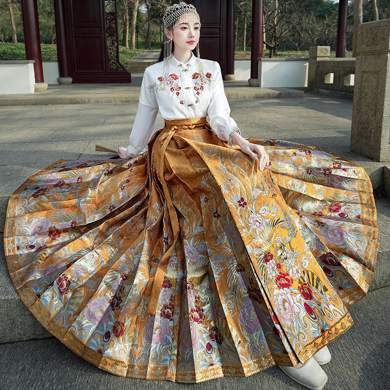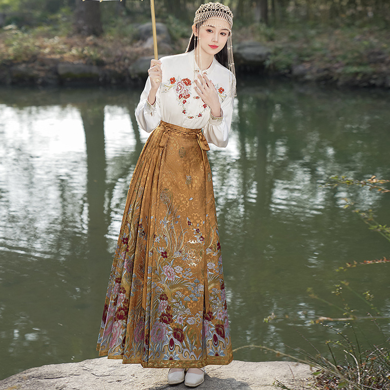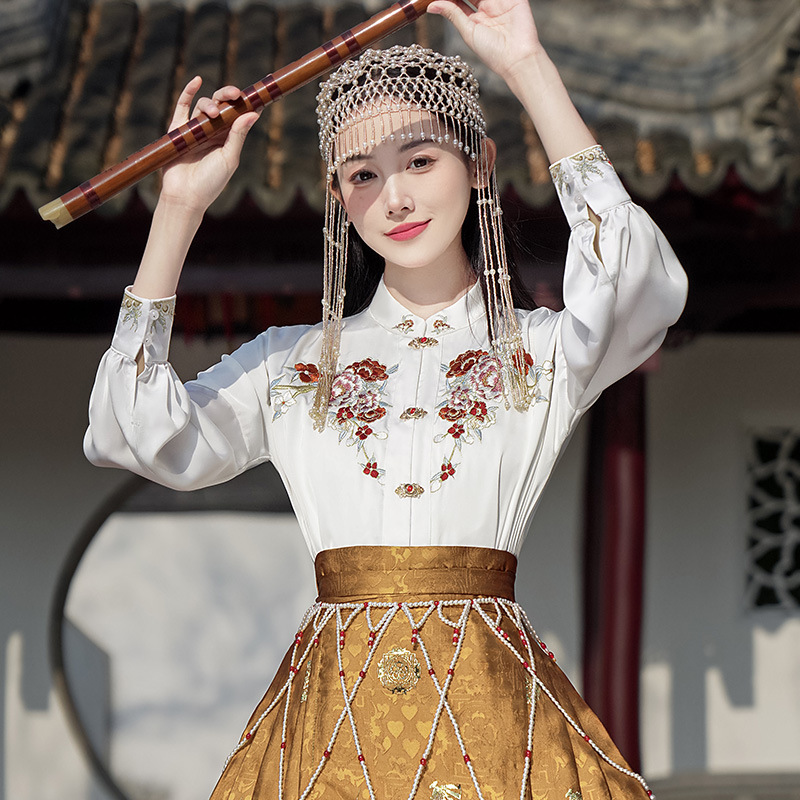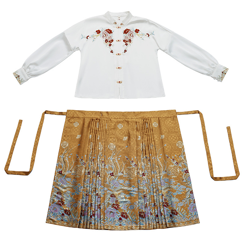 Настоящий выстрел, Новый китайский стиль, воротник-стойка, сверхпрочный топ с пряжкой для вышивки, цельный негабаритный тканый жилет с вышивкой золотом, юбка, костюм
