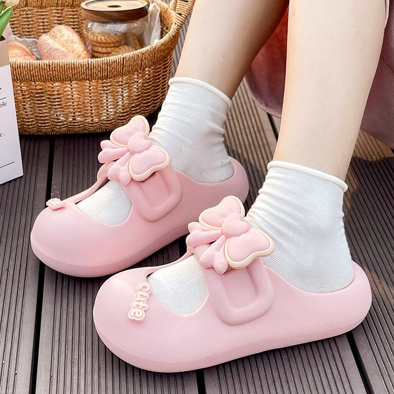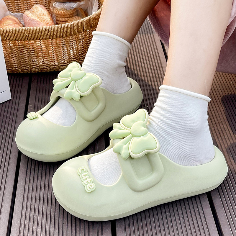 Женские летние милые тапочки с закрытым носком Nanbowan, верхняя одежда с бантом, Нескользящие сандалии с мягкой подошвой от Интернет-знаменитостей оптом