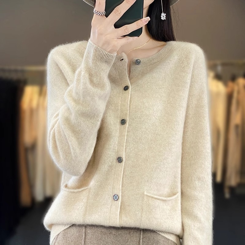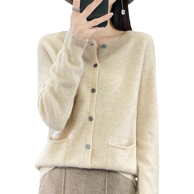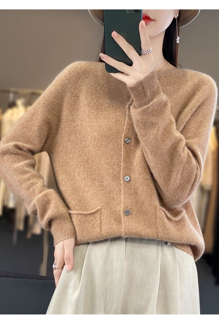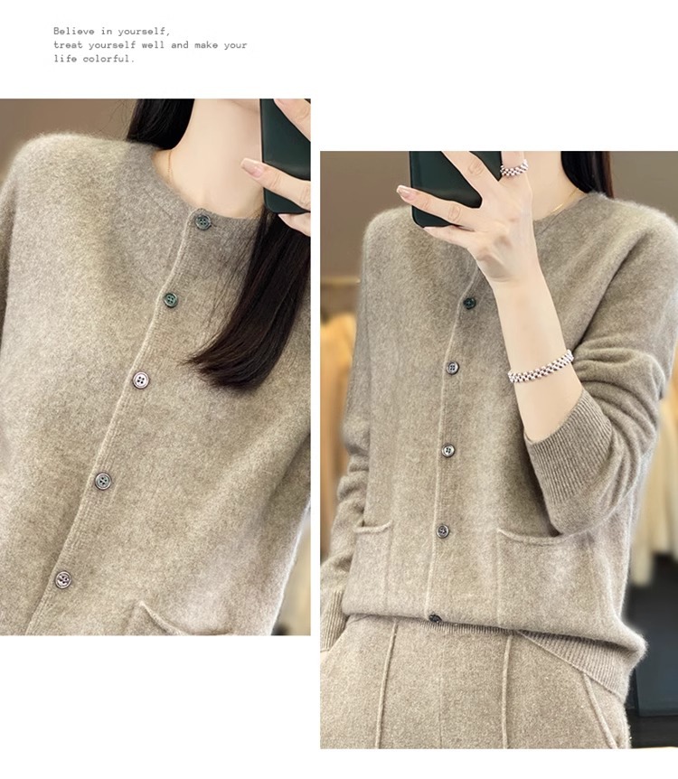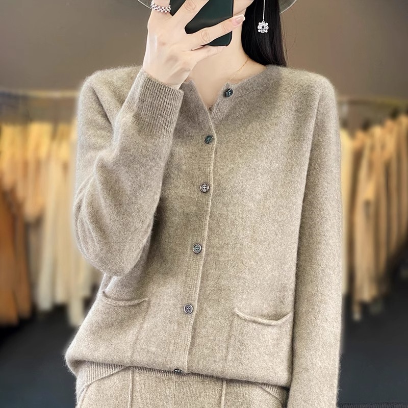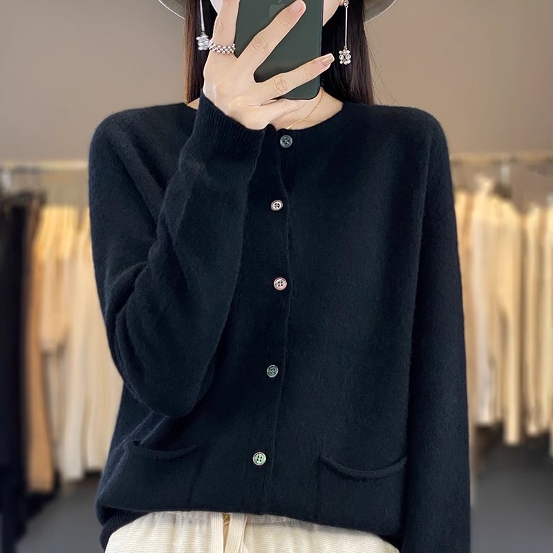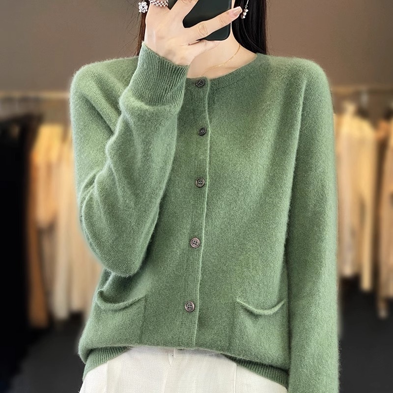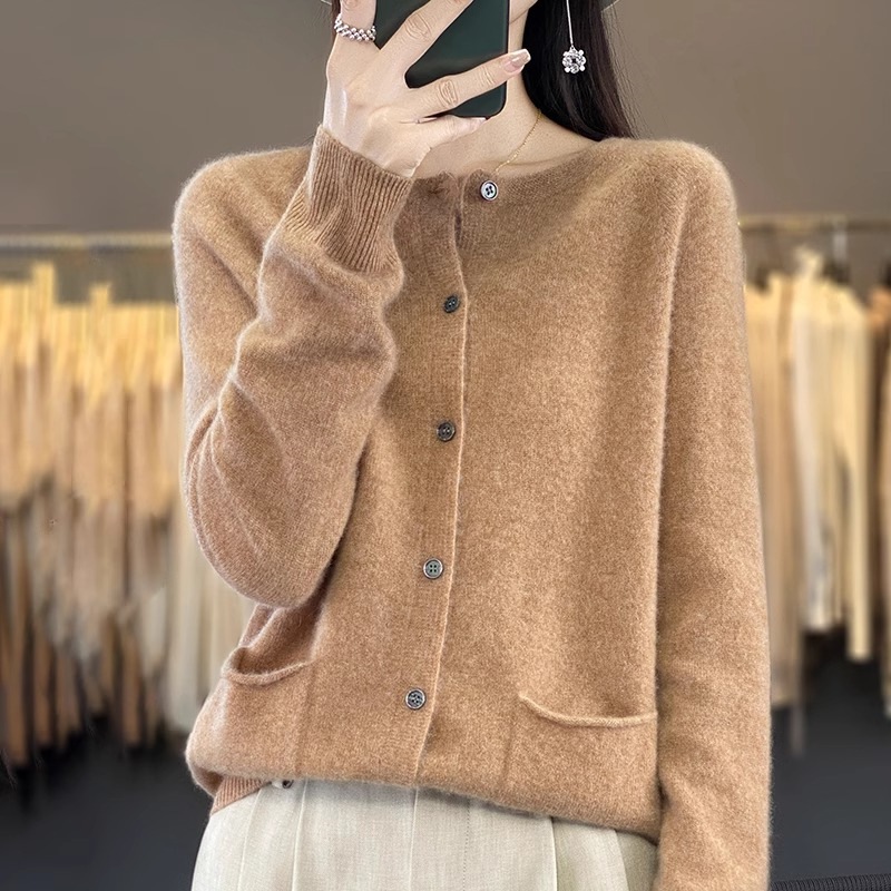 2024 весна и осень новый вязаный кардиган с круглым вырезом Женское пальто однотонное с длинным рукавом Универсальный темпераментный свитер верхняя база