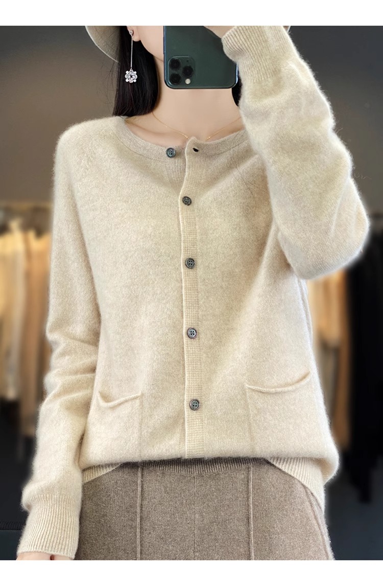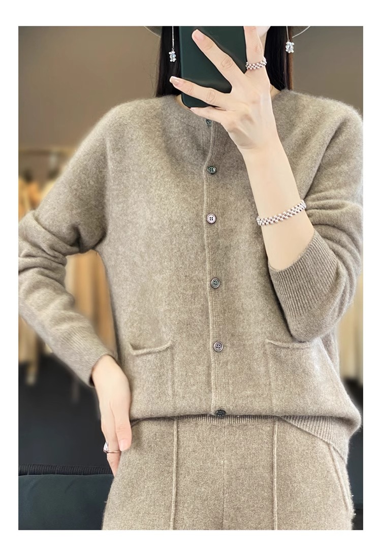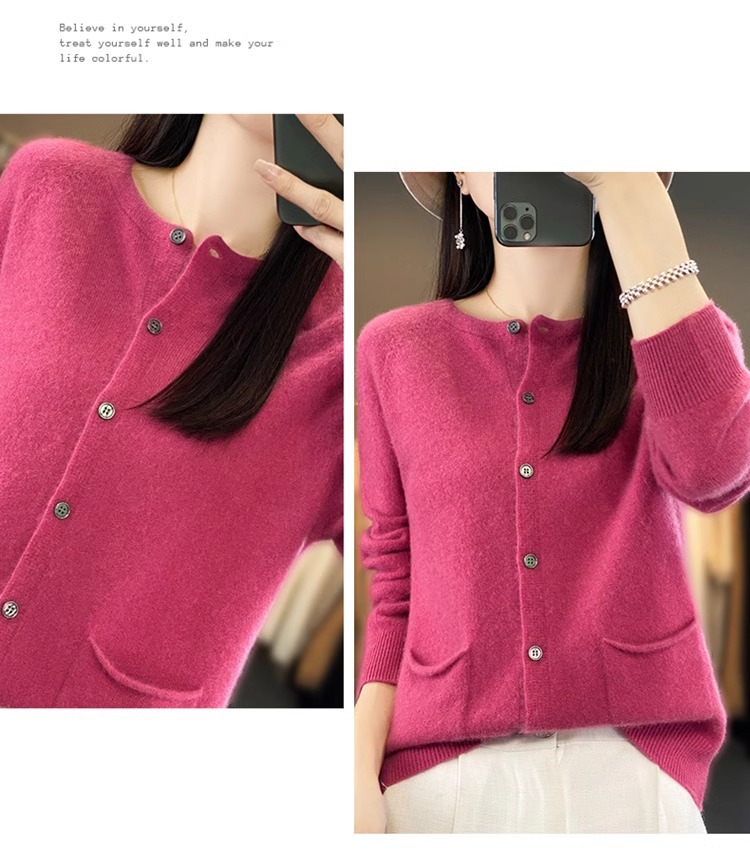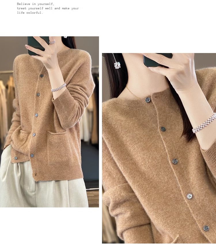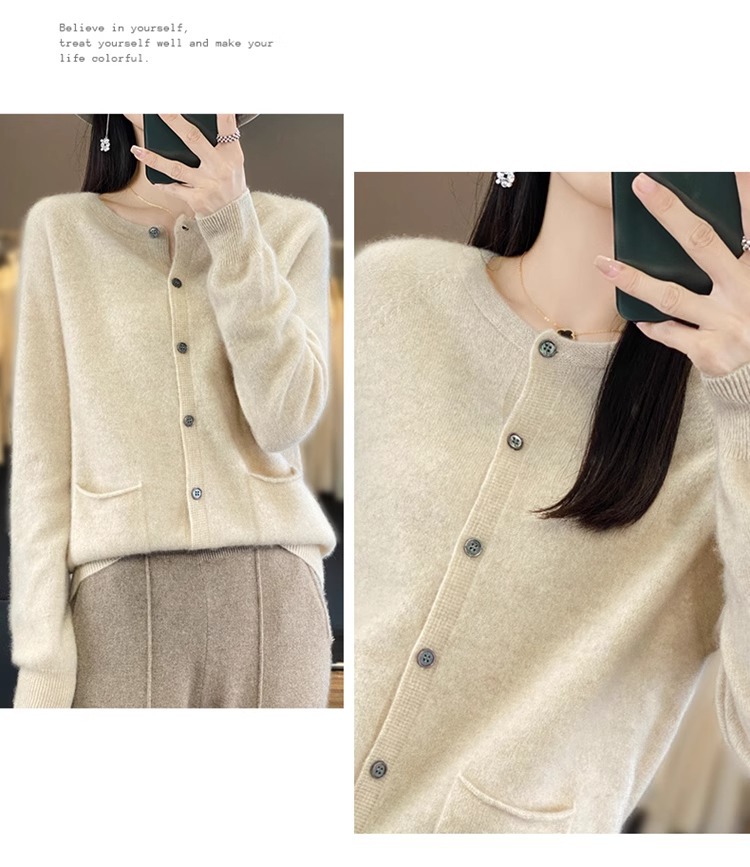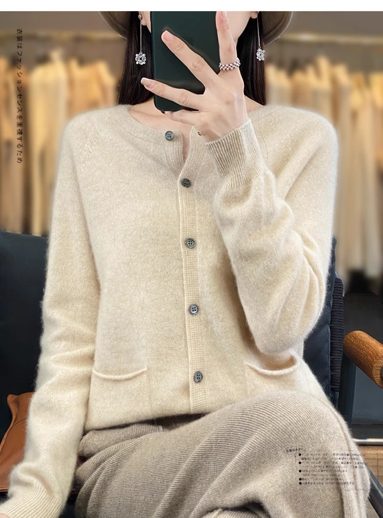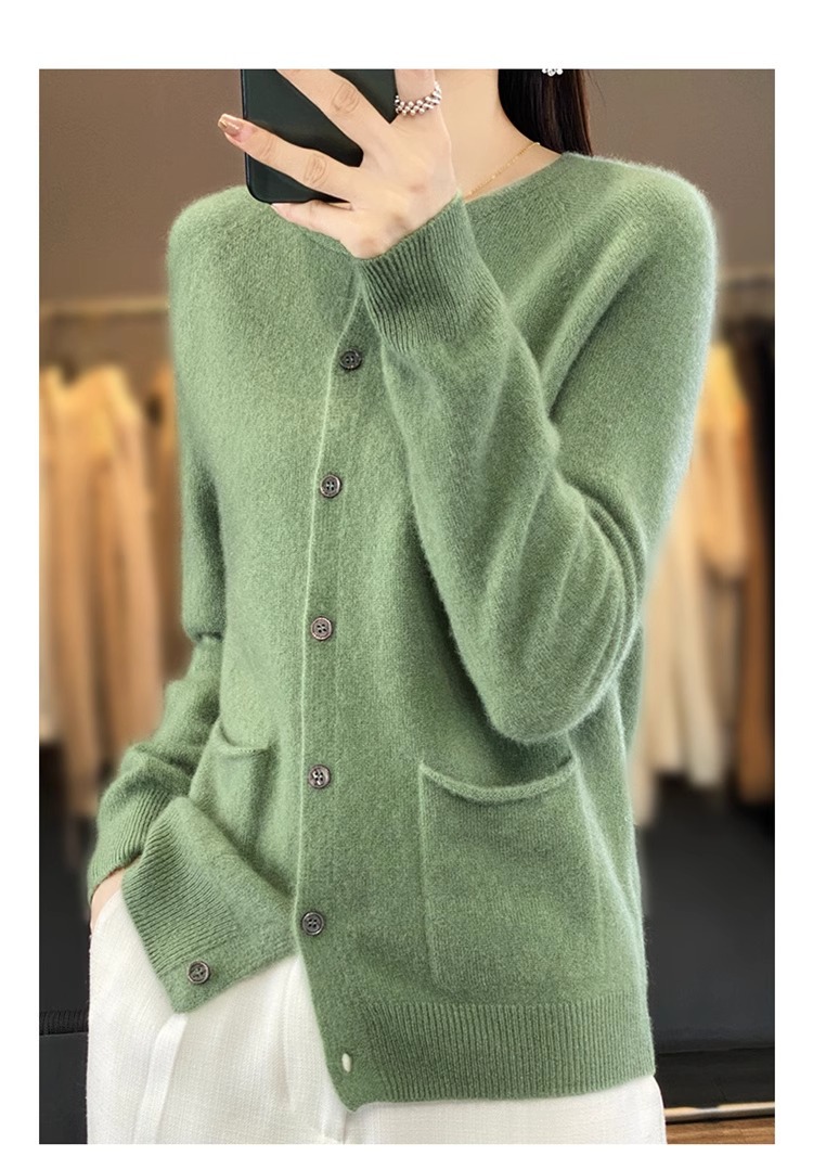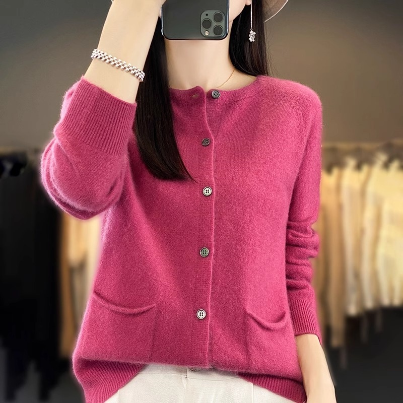 2024 весна и осень новый вязаный кардиган с круглым вырезом Женское пальто однотонное с длинным рукавом Универсальный темпераментный свитер верхняя база