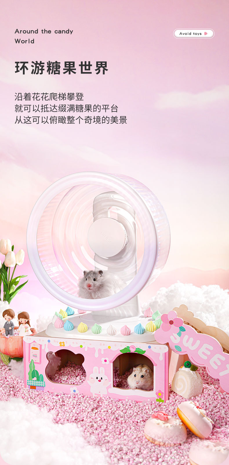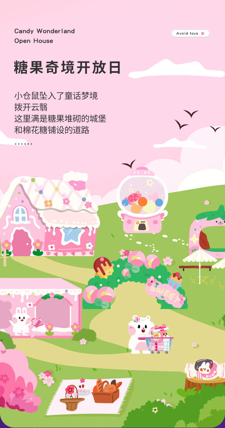 Коллекция Little Sweet Six; Укромное место для зефира; Маленькая клубничная тележка; Конусный мост для обхода препятствий; Платформа Candy House; Цветочная лестница для лазания; Машина гашапон Радуга (без чайника); вакуумный чайник; Маленький подсвечник-шарик для воды белый; Детский стульчик для мороженого; Торговец мороженым, одна спальня; пончиковая лестница; Детский стульчик + грузовик с мороженым + пончики