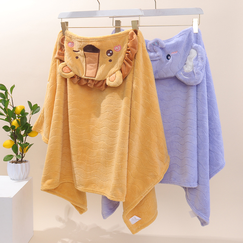 Детское махровое полотенце-халат из кораллового велюра, полотенце для купания новорожденных, милый мультяшный халат-полотенце