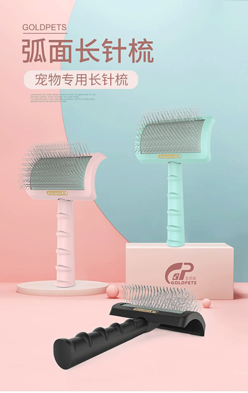 Три цвета C-образной формы толстые волосы на спине самоочищающе расческа Бельгийская игольчатая расческа красоты выгнутая длинная игольчатая расческа для домашних животных