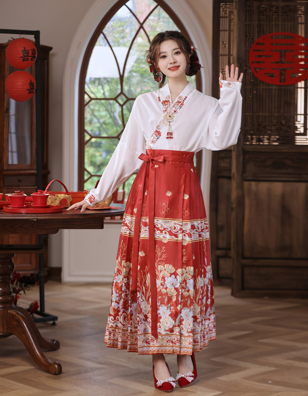 101 вышивка (цевый топ); 103 красный феникс (цельный юбка); 110 драконов и фениксов (одиночная юбка); 112 Нефритовый кролик зеленый (одиночная юбка); 116 Сянманьлоу (одно платье); 118 красный кои (одна юбка); 101 топ 103 юбка красного феникса; 101 топ 110 дракон и феникс юбка; 101 топ 112 Нефритовый кролик зеленая юбка; 101 вышитый топ 116 ароматная юбка; 118 вышитый красный цветок топ 118 красная кои юбка; 139 Синий цветок стрекозы (одиночное платье); 142 красный Ssangyong (одно платье); 142 синий двойной дракон (одно платье); 145 милый медведь (одиночное платье); 146 Птицы и цветы (одно платье); 147 Show (одиночная юбка); 101 топ 139 синяя юбка стрекозы; 101 топ 142 красная юбка двойного дракона; 101 топ 142 синяя юбка двойного дракона; 101 топ 143 абрикосовое платье кои; 101 топ 145 милый медведь юбка; 101 топ 146 птица цветочная юбка; 101 топ 147 юбка