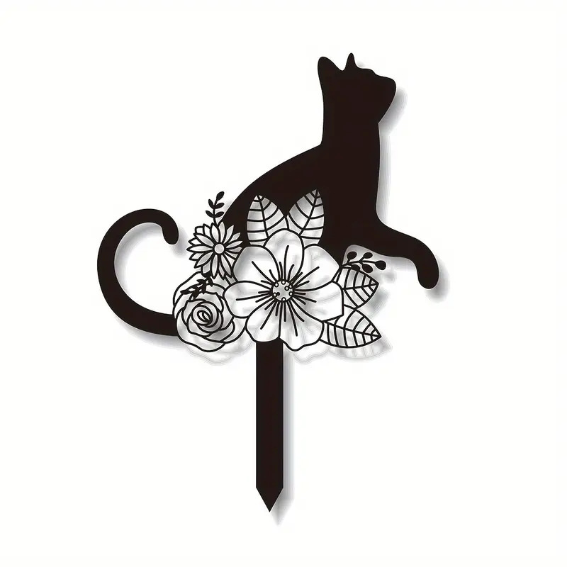 Гробница для домашних животных помечена кошачьей памятной кошкой эмблемой памятный садовый орнамент цветочная кошка двор арт-деко