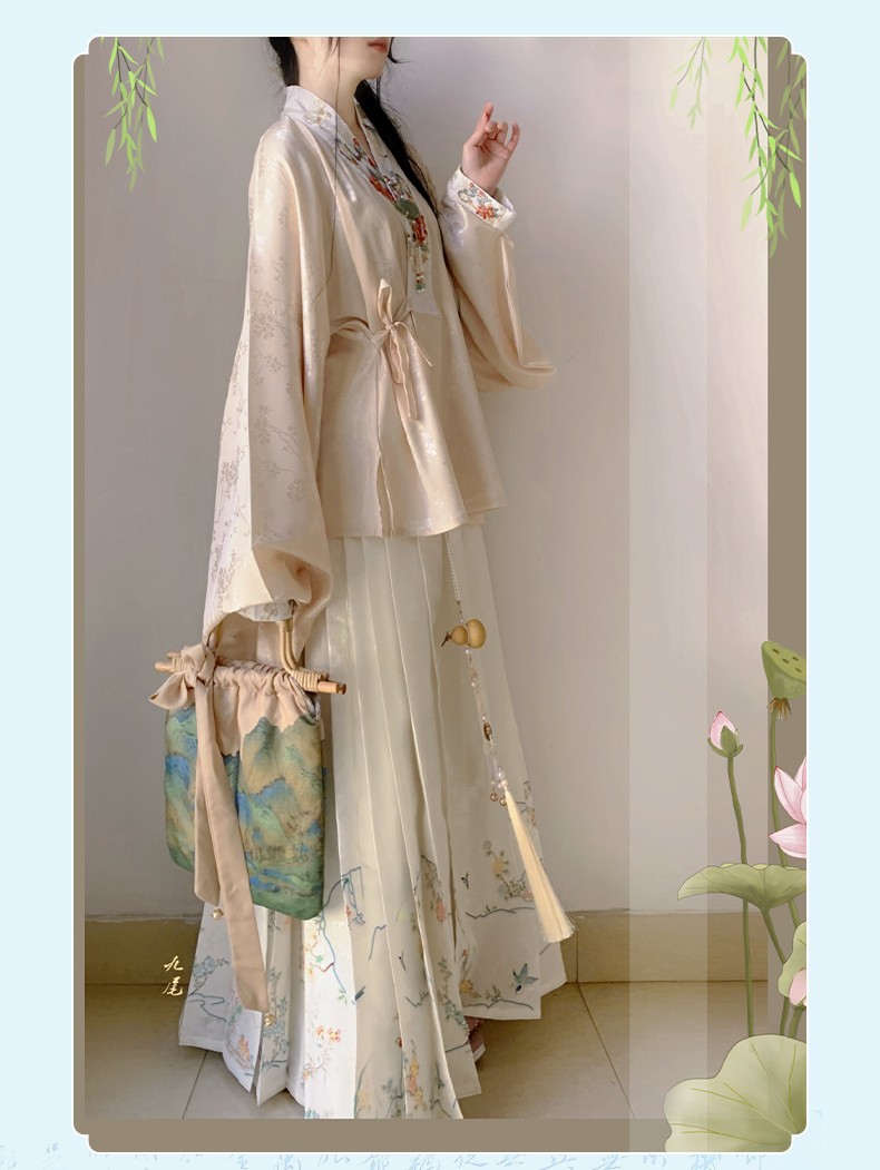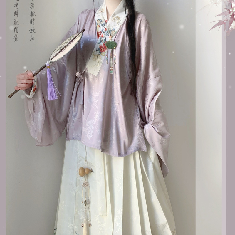 Оригинальная женская короткая рубашка с перекрещенным воротником в китайском стиле Hanfu Ming и юбкой Mamian, весенняя тонкая версия.