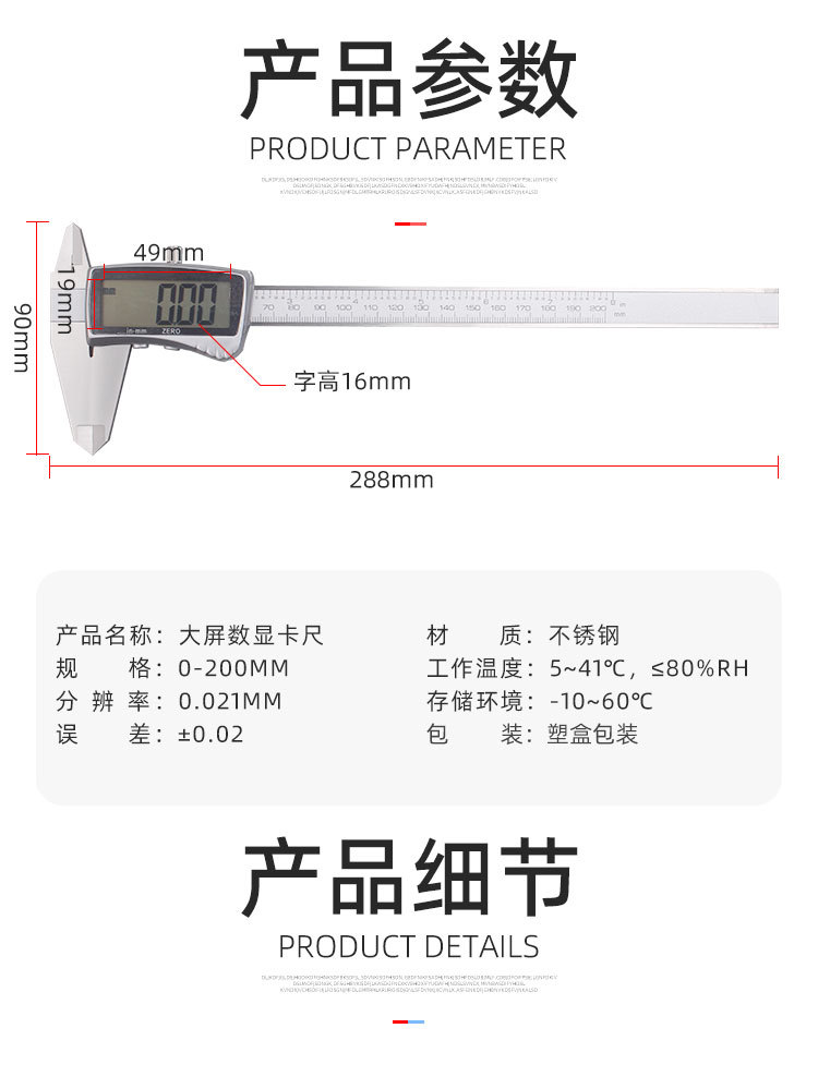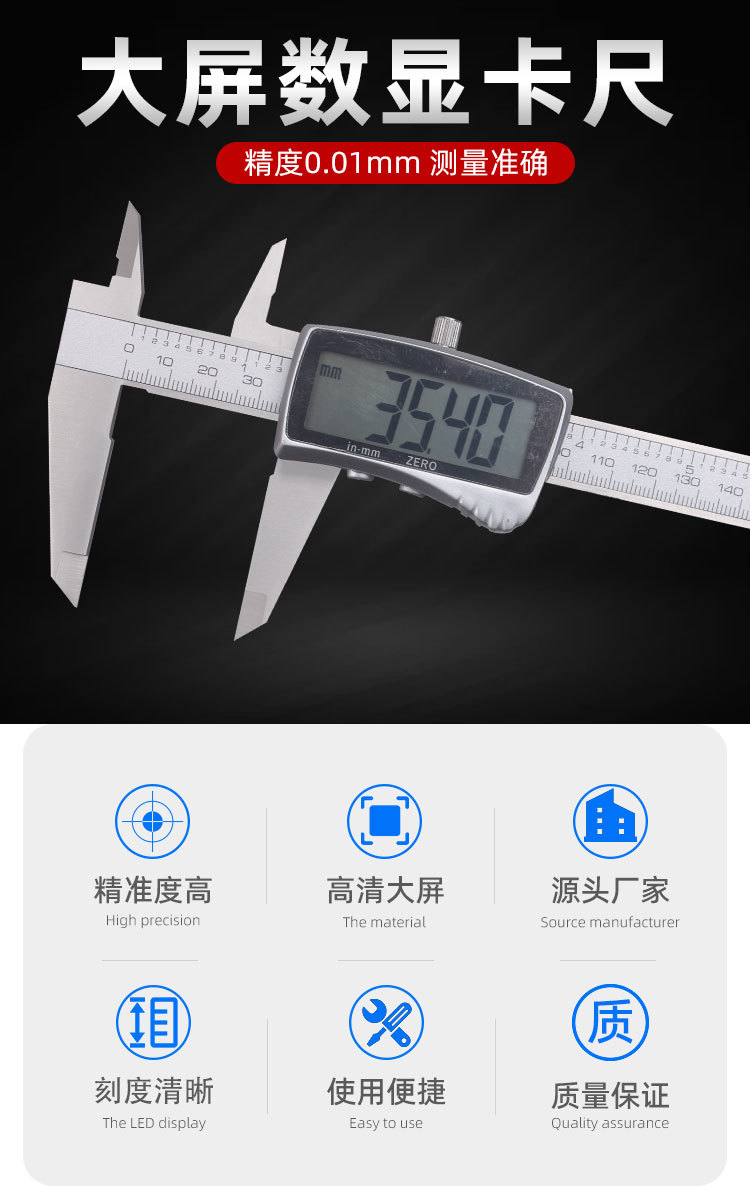 Высокая точность 0-200mm большой экран цифровой штангенциркуль