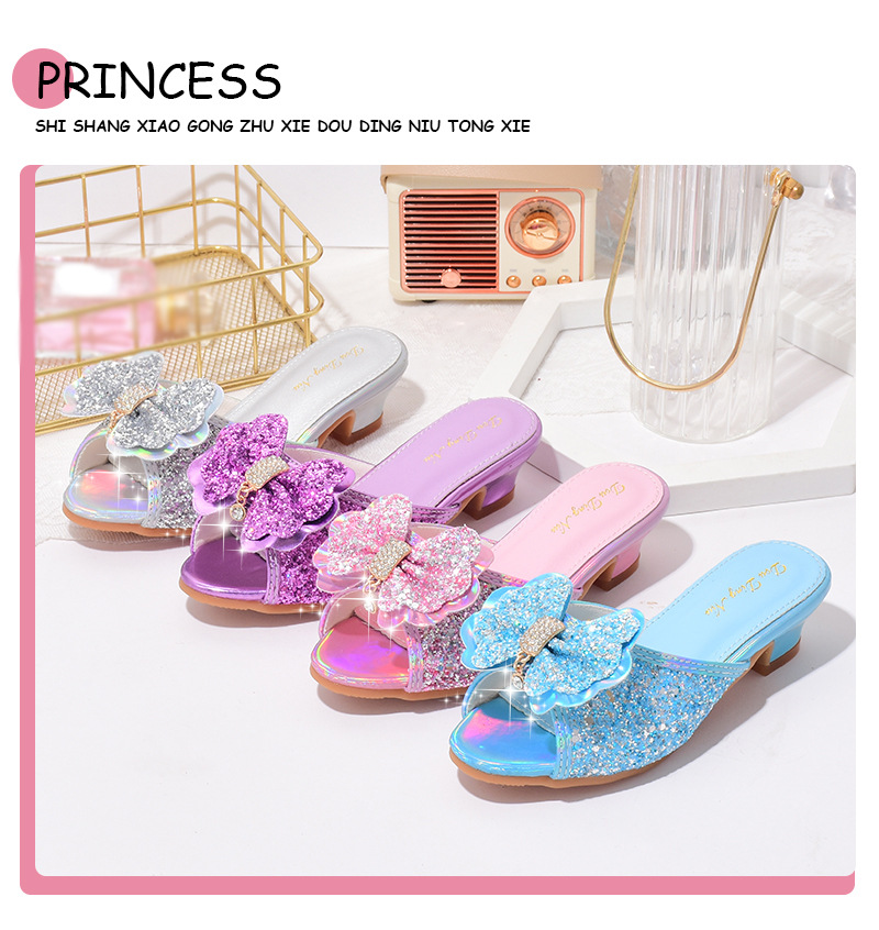 Детская обувь производитель оптовой детской хрустальной обуви летний новый стиль девушки тапочки носить туфли на высоком каблуке маленькая принцесса сандалия тапочки
