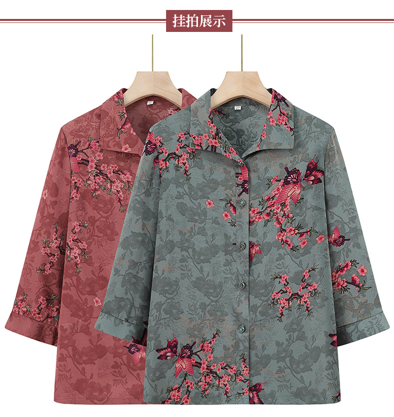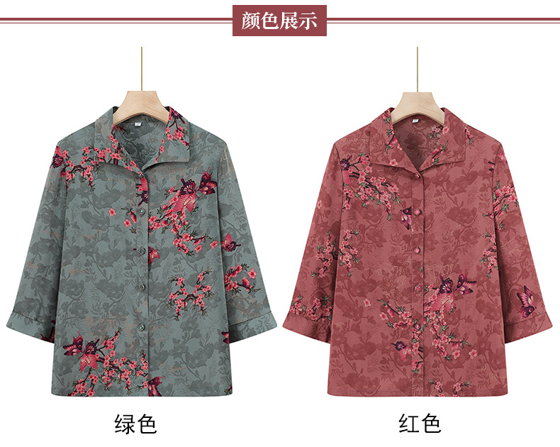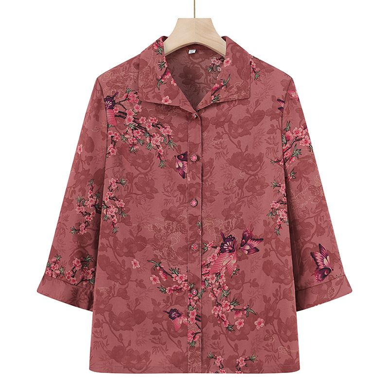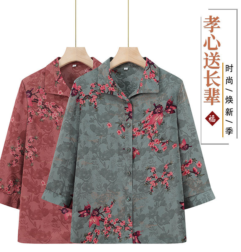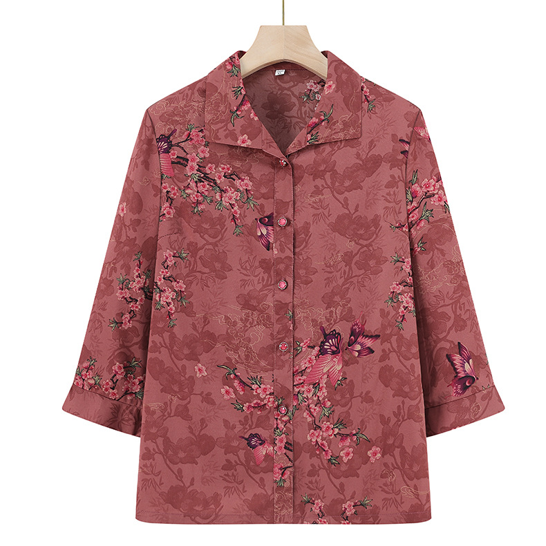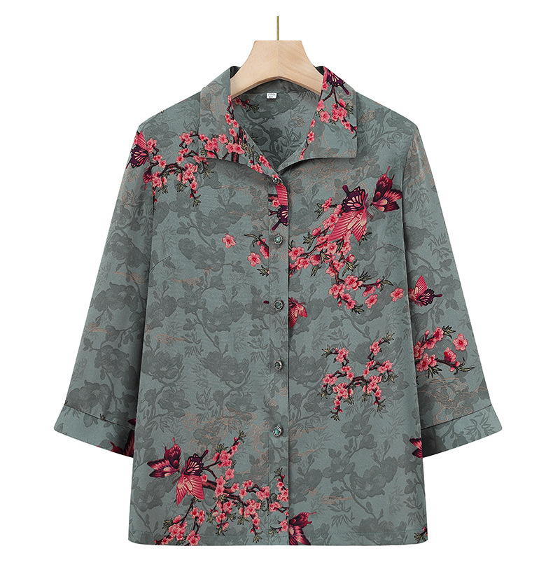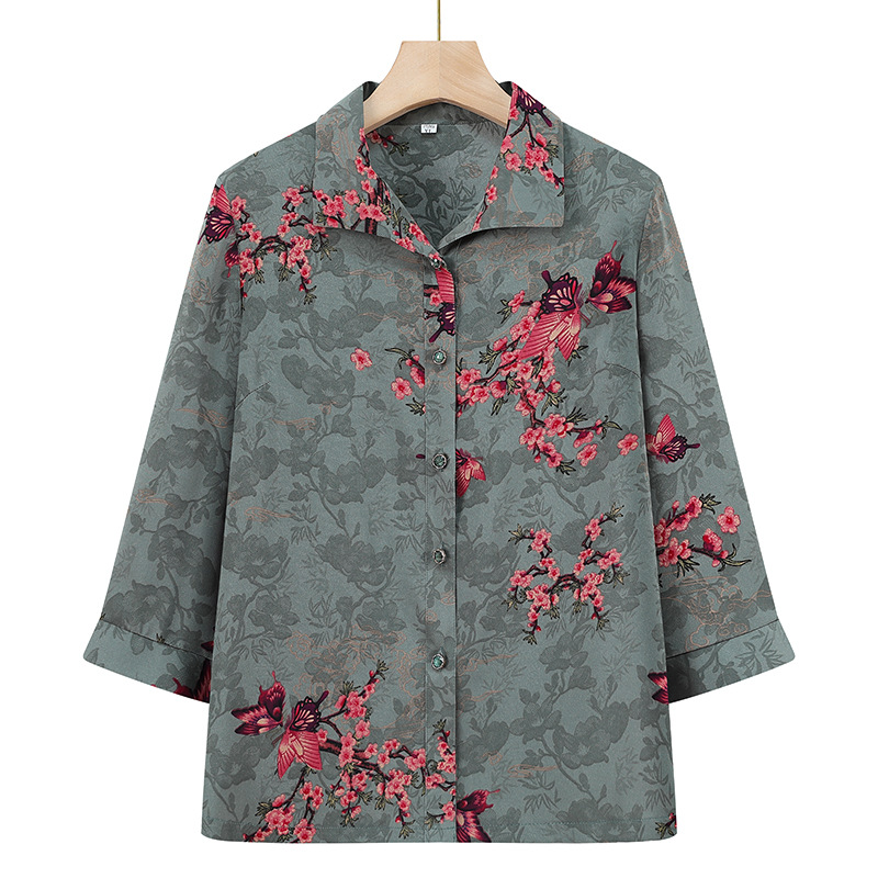Пожилая женская футболка с отворотом и принтом рубашки 60-летняя бабушка мама кардиган тонкая рубашка прохладная и не легко морщинистая