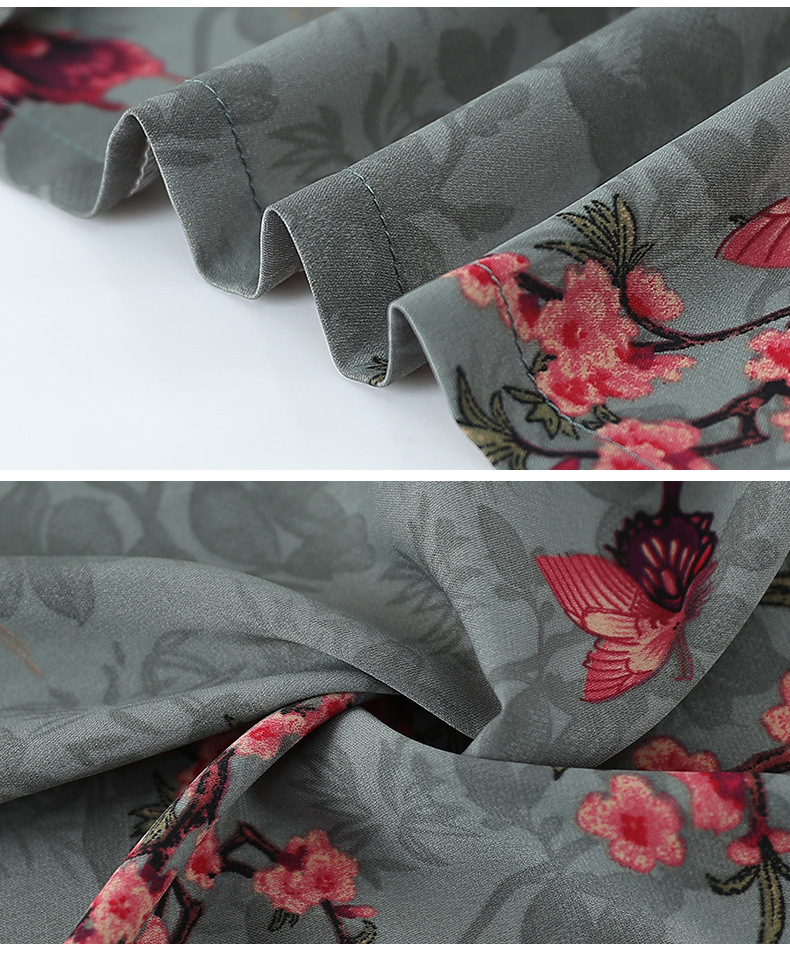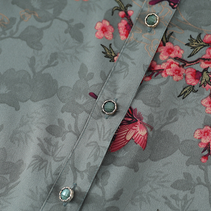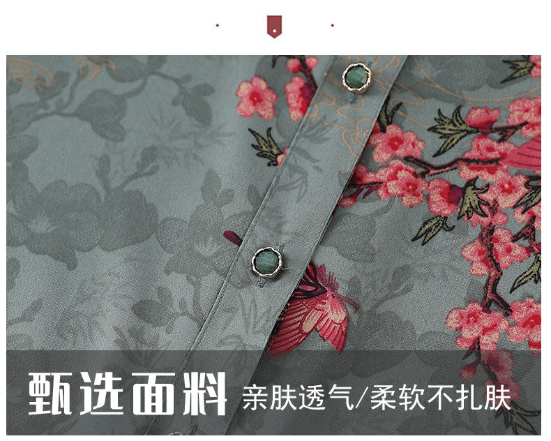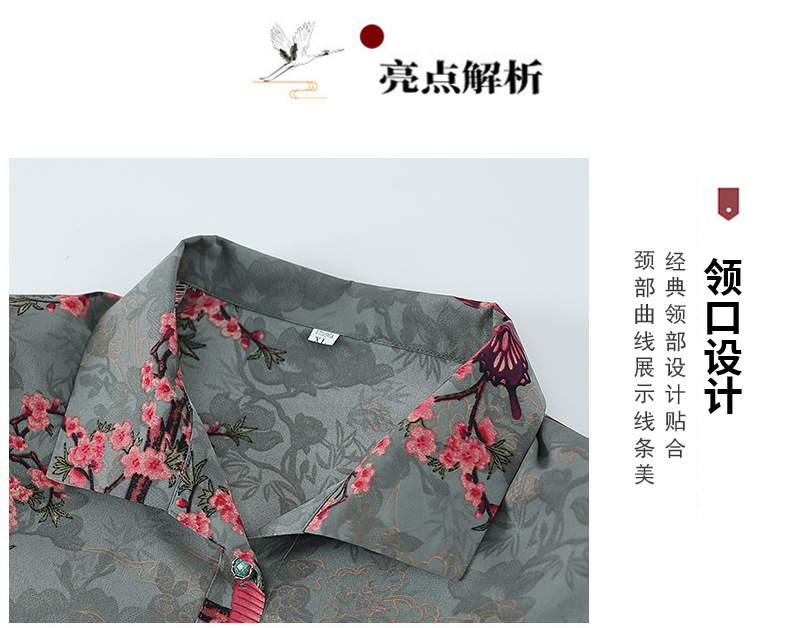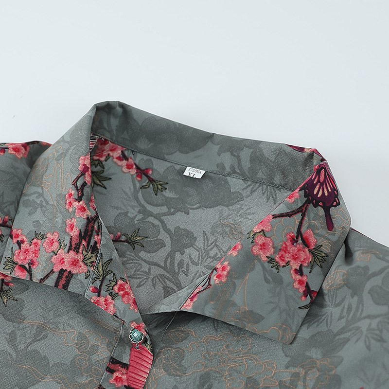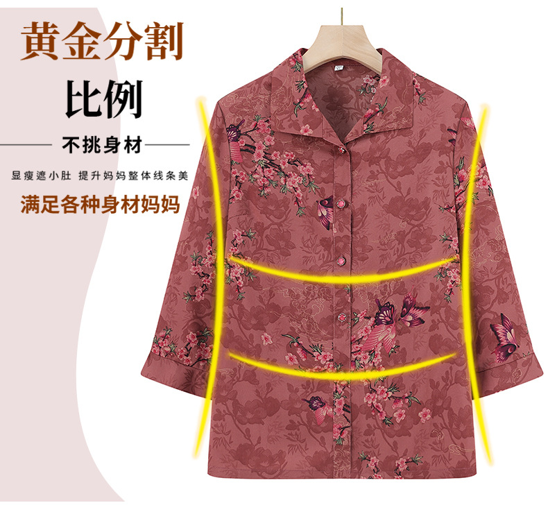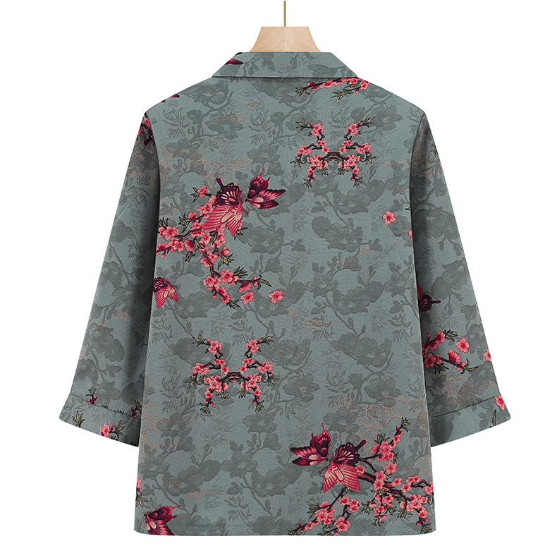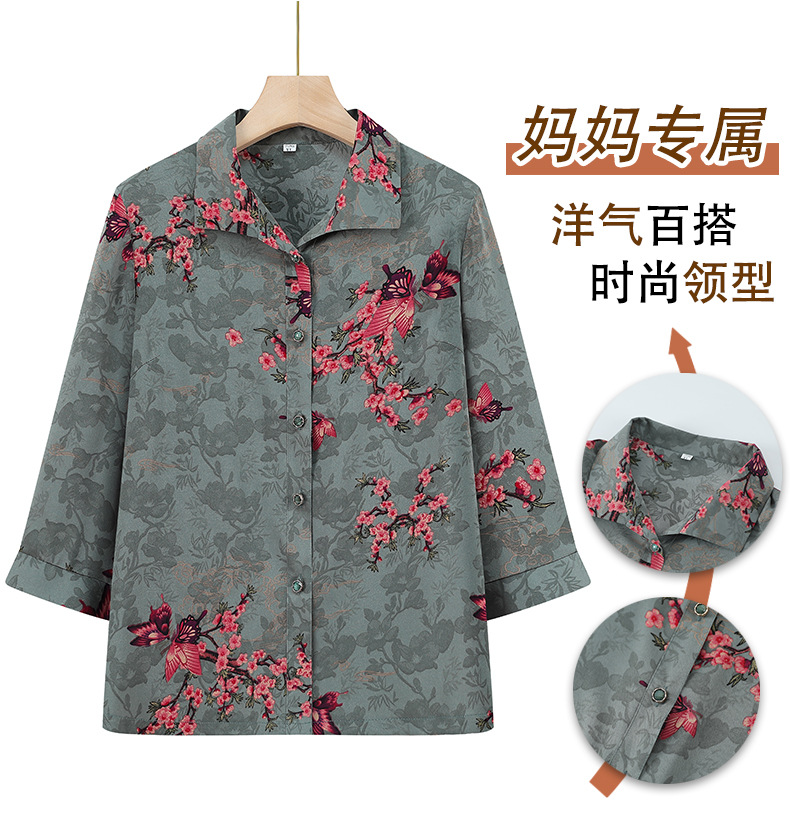 Пожилая женская футболка с отворотом и принтом рубашки 60-летняя бабушка мама кардиган тонкая рубашка прохладная и не легко морщинистая