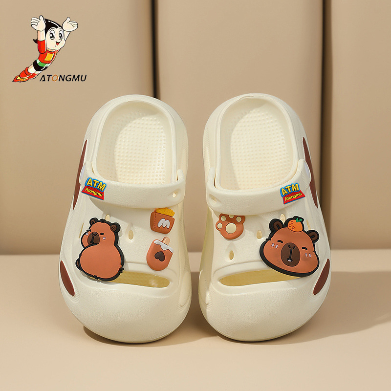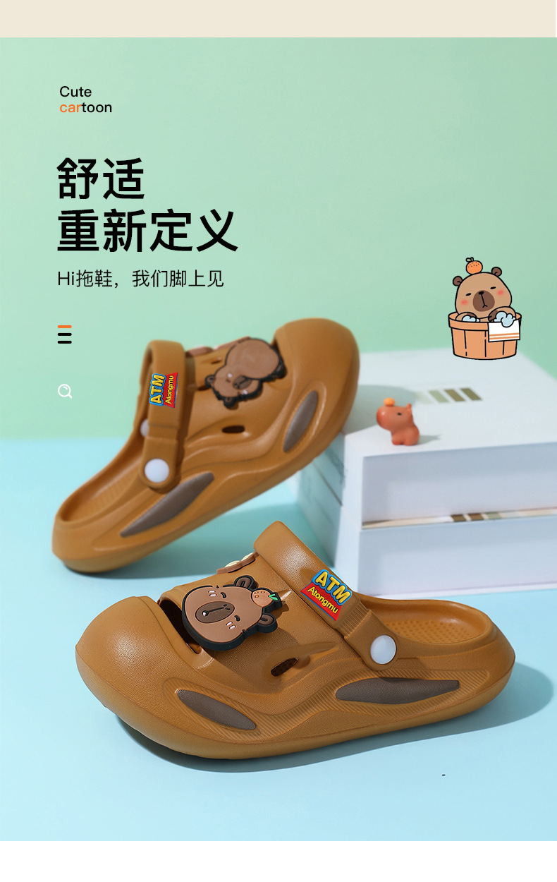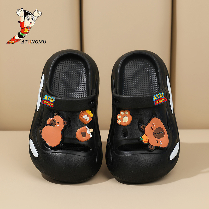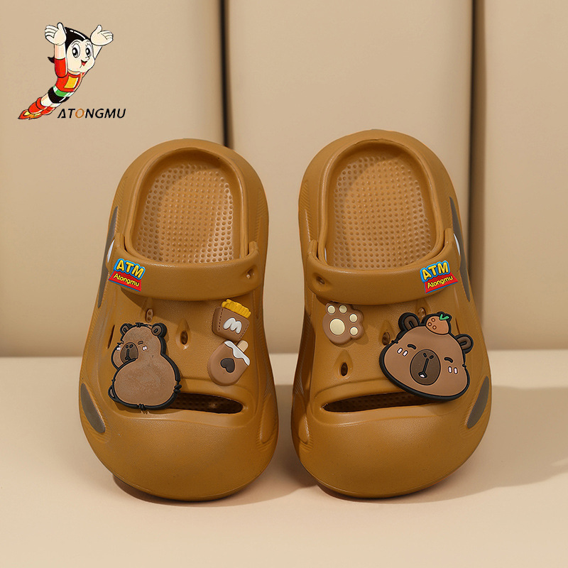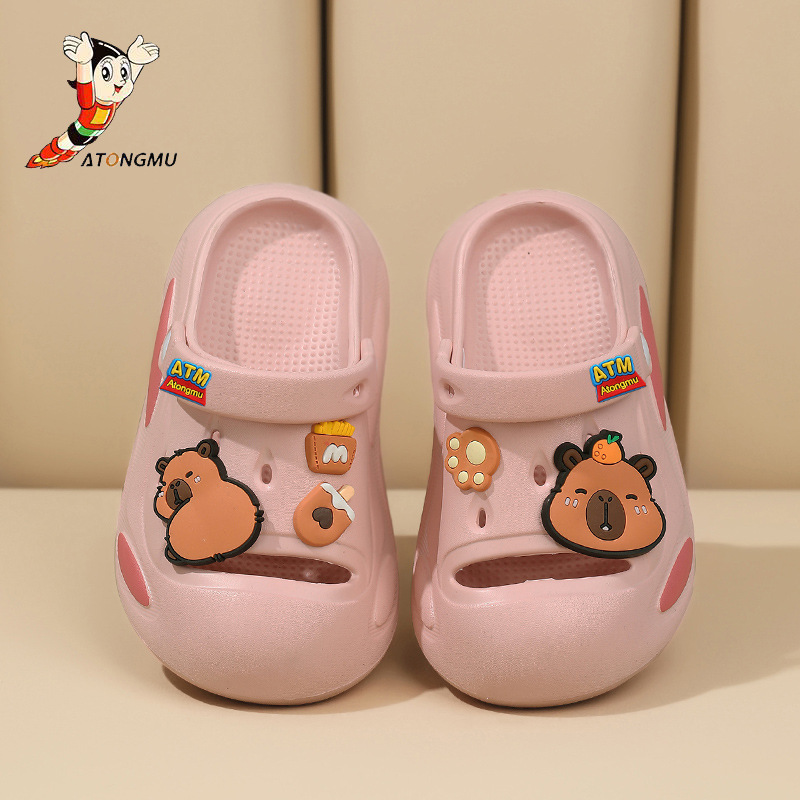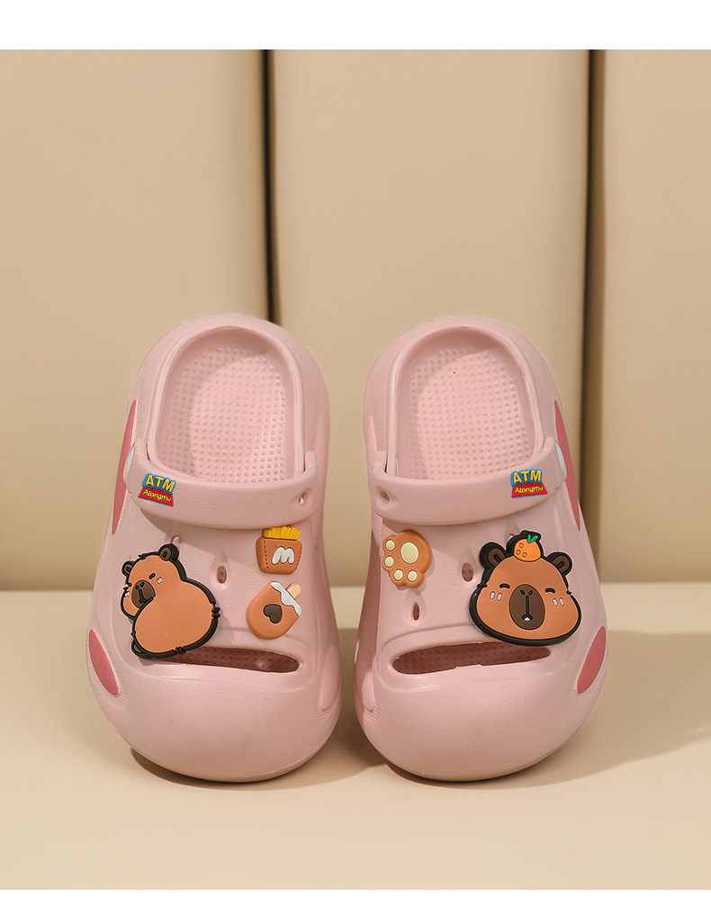 Детские кроксы 2025 года, модные и универсальные, милые повседневные уличные кроксы для детей, мультяшные кроксы с капибарой для самостоятельного творчества