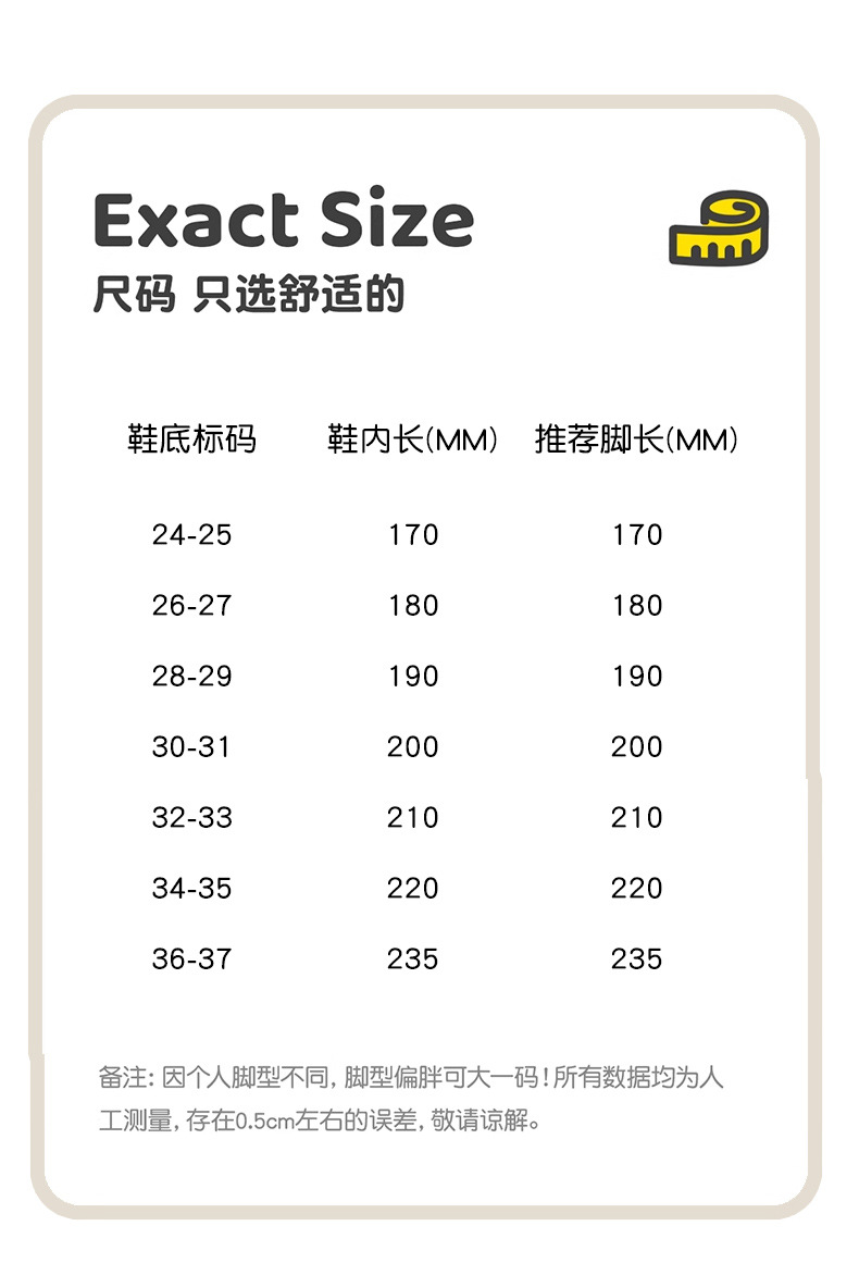 24/25 внутренняя длина 170 мм; 26/27 внутренняя длина 180 мм; 28/29 внутренняя длина 190 мм; 30/31 внутренняя длина 200 мм; 32/33 внутренняя длина 210 мм; 34/35 внутренняя длина 220 мм; 36/37 внутренняя длина 235 мм