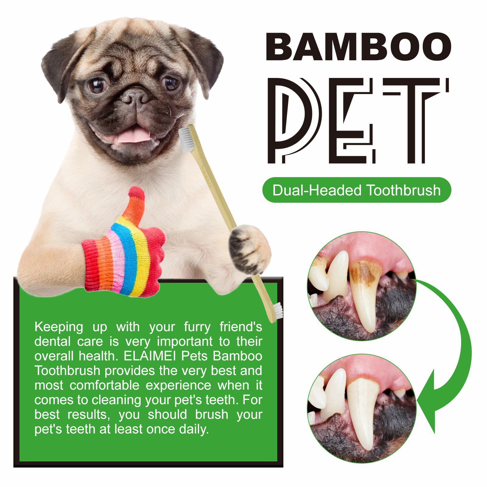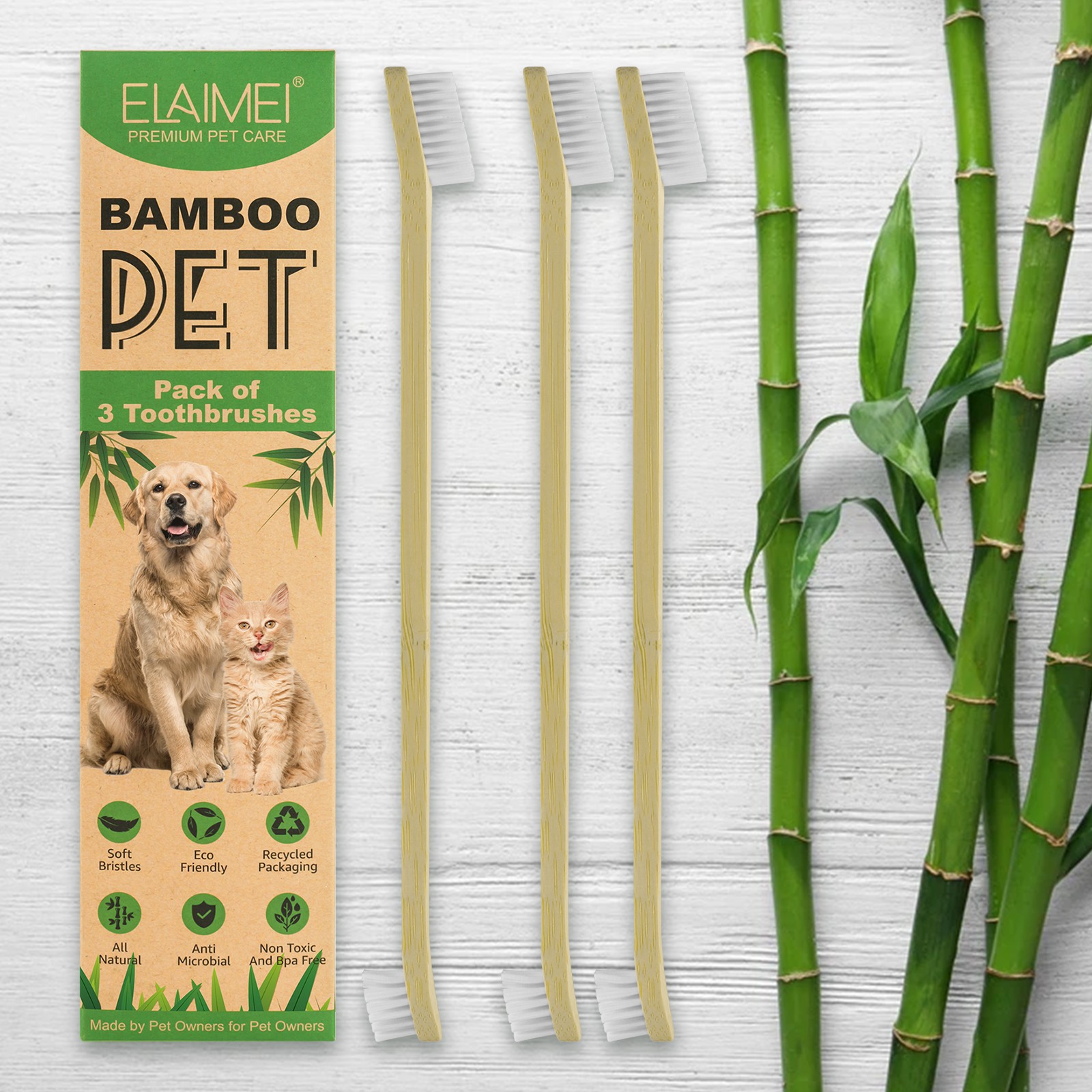 ELAIMEI Зубная щетка для домашних животных с длинной ручкой Двусторонняя зубная щетка для собак Очистка полости рта Уход за мягкой щетиной 3 шт/коробка