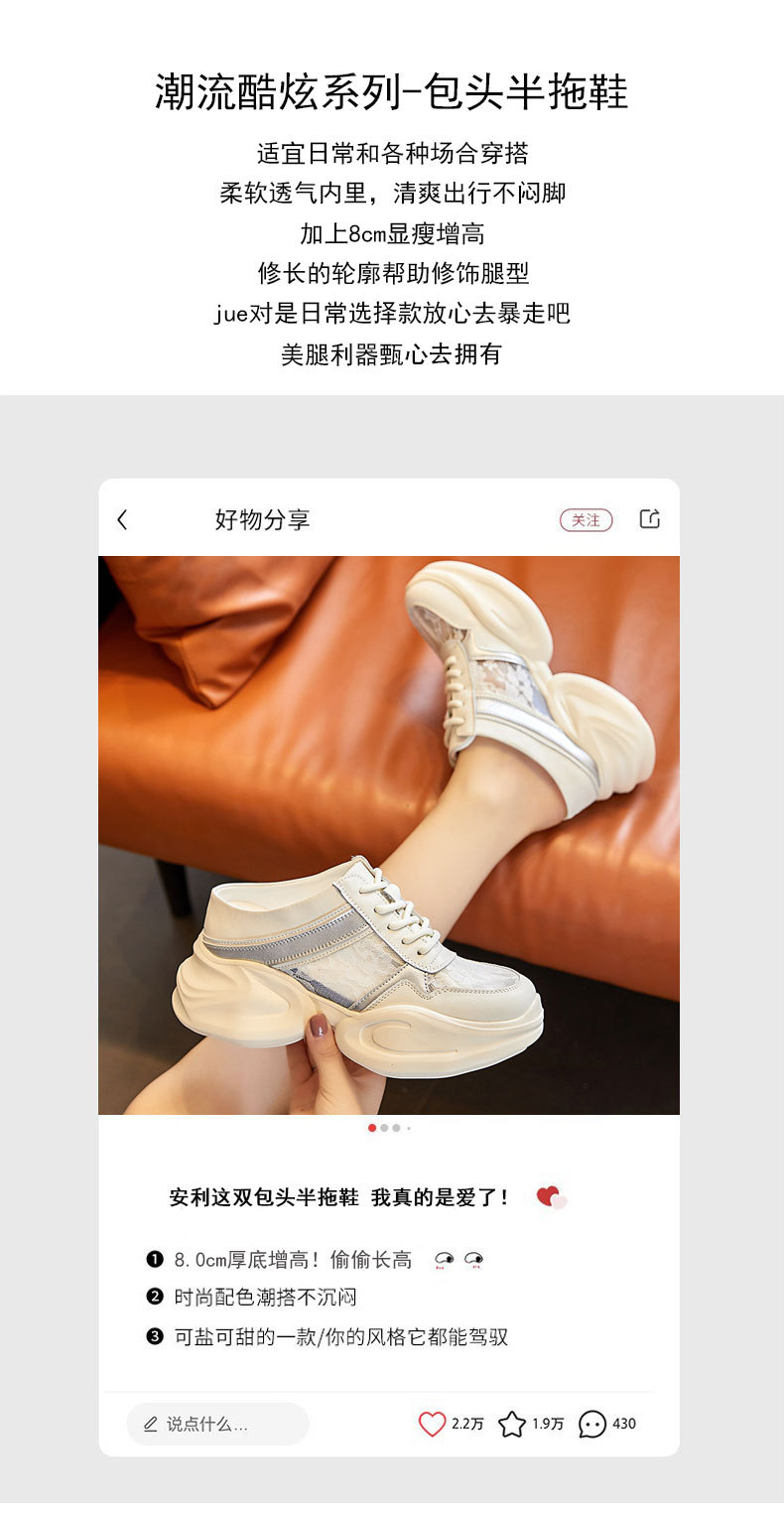 Новая кожаная толстая подошва, тапочка, женская тенденция увеличивается, толстая подошва, полутолщенные тапочки, толстая подошва, увеличенные женские сандалии